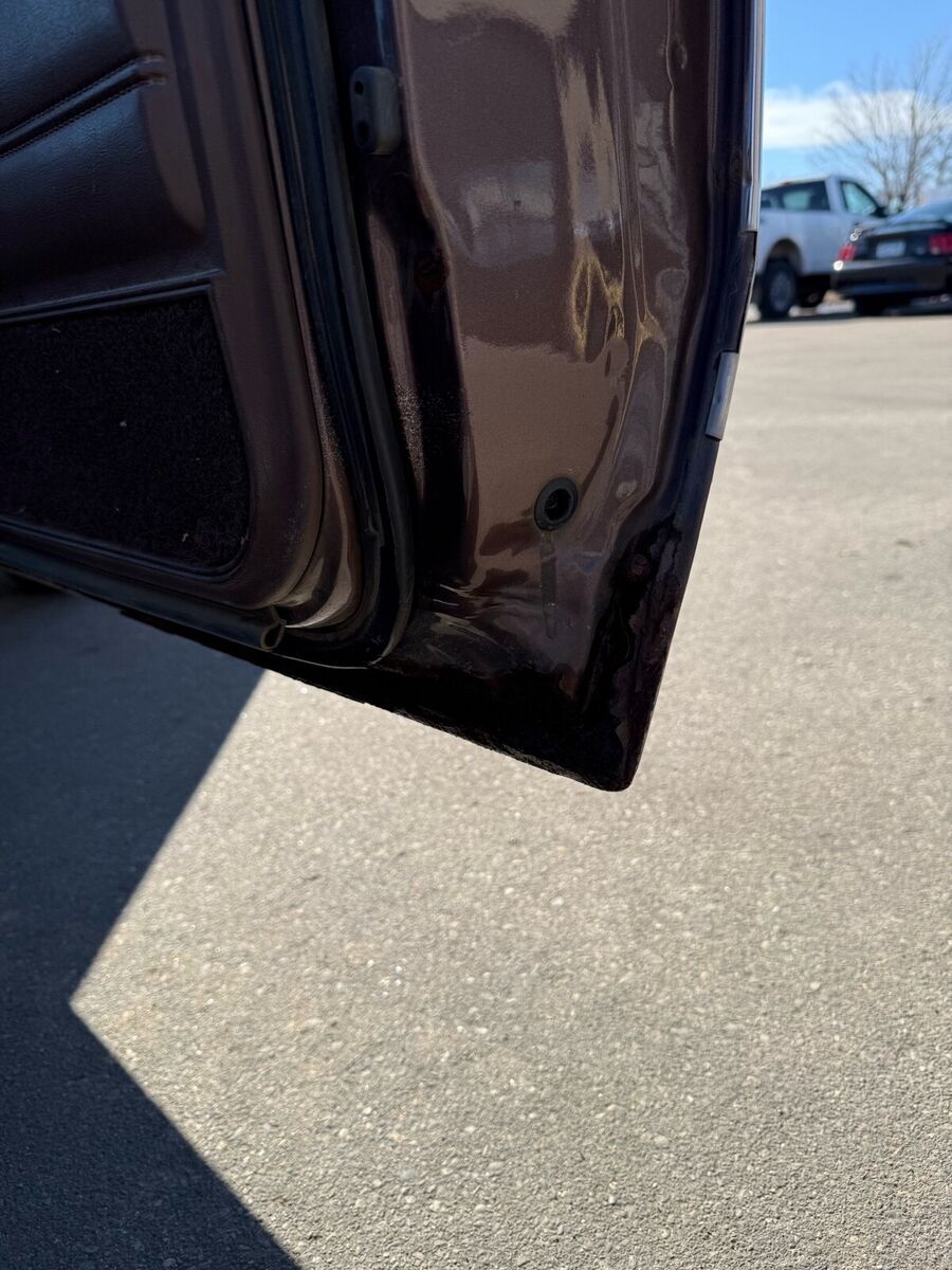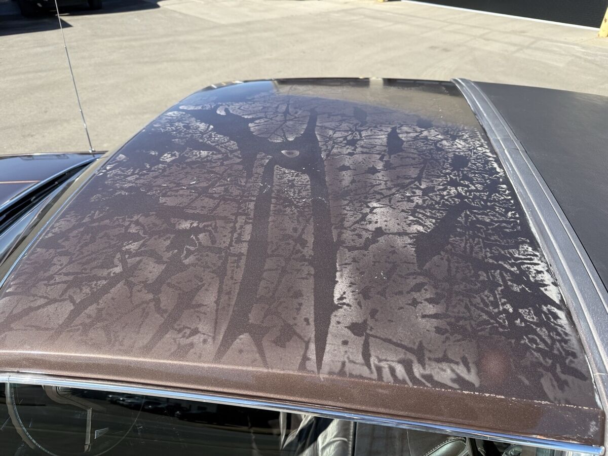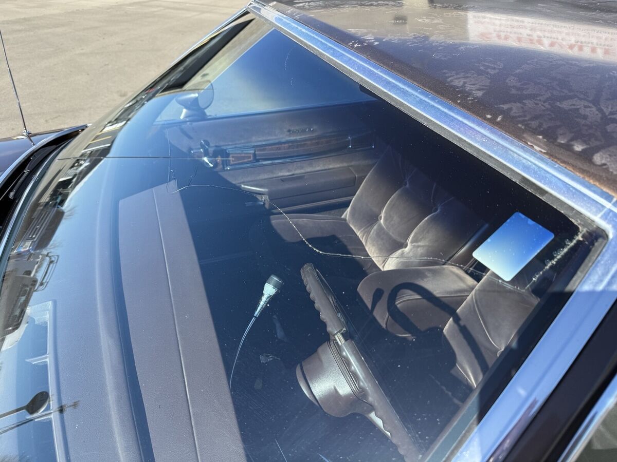 The windshield has a crack in it and the paint on the roof and trunk lid have some white splotches from a car cover. Also has some rust on the bottom of the doors.