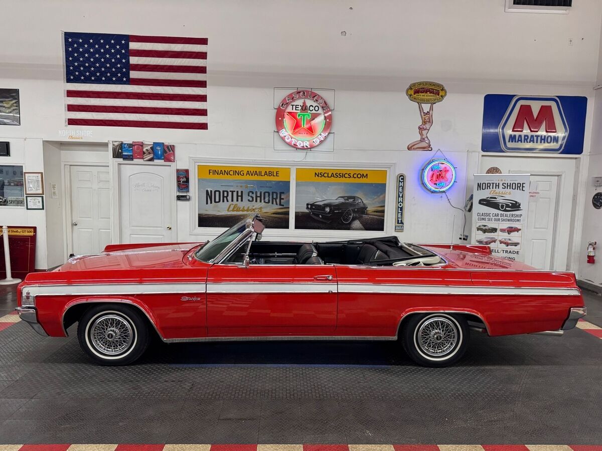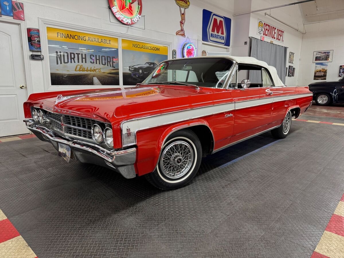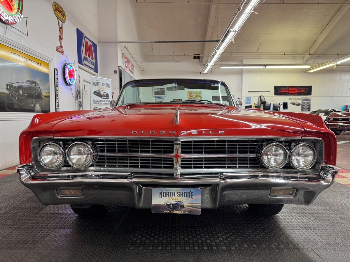 *1963 OLDSMOBILE STARFIRE CONVERTIBLE*RED EXTERIOR (driver quality flaws exist)*BLACK INTERIOR*WHITE CONVERTIBLE TOP*394 C.I. ENGINE*AUTOMATIC TRANSMISSION*POWER STEERING*POWER BRAKES*POWER TOP*POWER WINDOWS*WIRE WHEEL COVERS*FACTORY BUCKET SEATS W/CENTER CONSOLE*FACTORY FLOOR SHIFTER*CONSOLE MOUNTED TACHOMETER IN WORKING ORDER**CALL US TODAY844-652-8767**ASK ABOUT OUR EASY FINANCE OPTIONS** WE SHIP WORLD WIDE