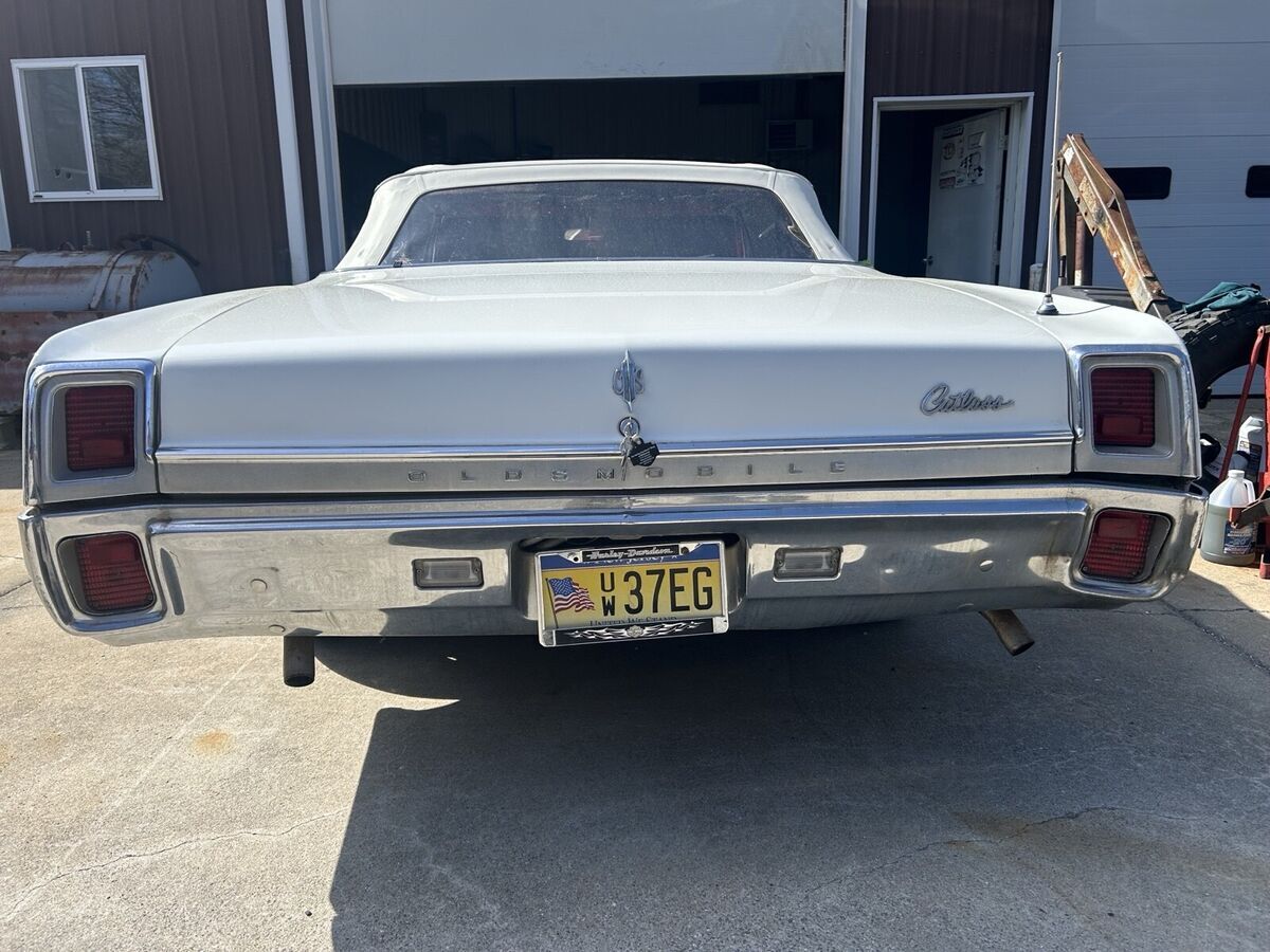 Just out of a long time storage,this cutlass is a very nice and solid project car that will need engine work as it is now seized up from sitting.looks like it has all original interior,front new set of seat covers included.The top was replace before storage.I Will post more information this week.ask questions and I Will return.call during the Day only (609)sixzerotwo5304 UPDATE 4/11/25 I took the time to remove the back seat and jack the car up to inspect and take more pictures of the floor condition and all is rust free,there is a really thick layer of factory undercoating that protected the metal,you can see in two pictures where I removed by scraping some undercoating on the frame and floor and it’s extremely well preserved.The trunk pan only have some minor surface rust and a couple pin holes and the two front fender were repaired poorly at the very bottom and that will needs some attention but that’s all it needs as body repair as the rest of the sheet metal is excellent.this a great car to fix and cruise around,turn it into a 442 etc. ask questions and I will get back to you.