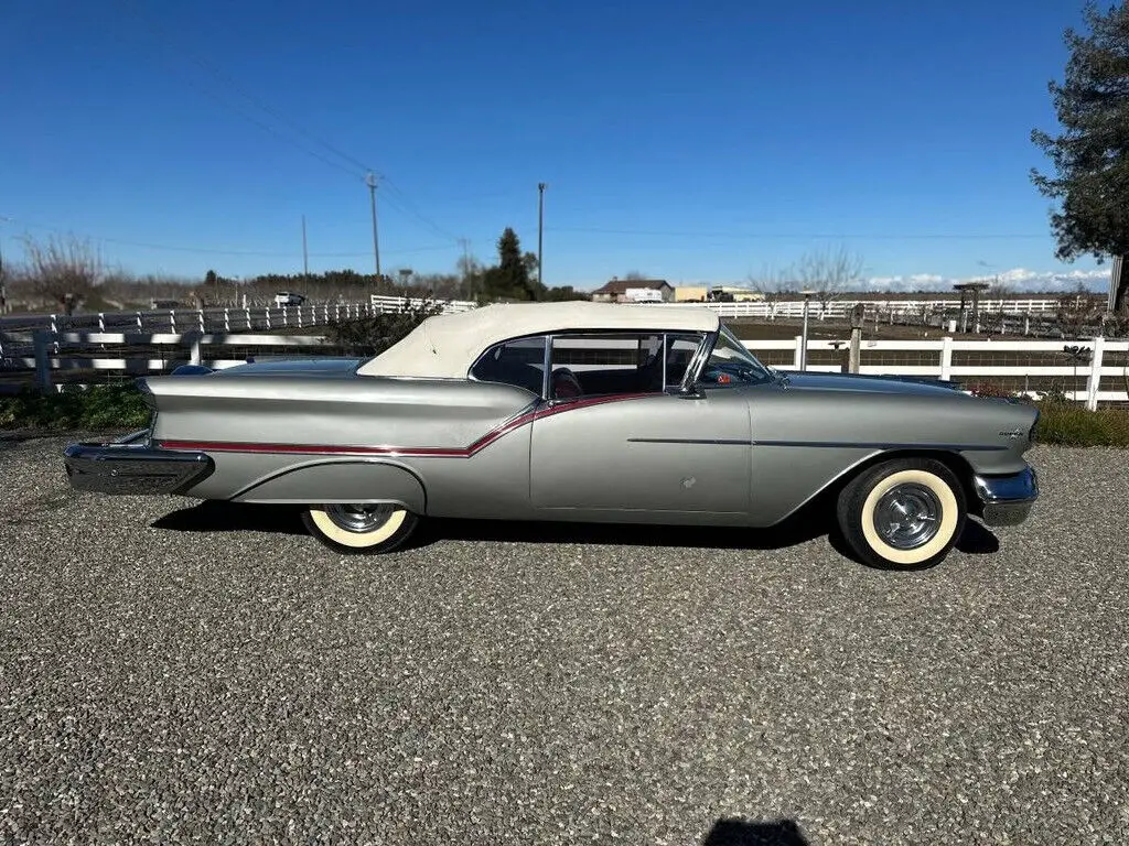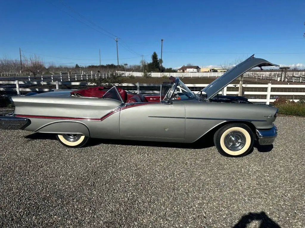 1957 Oldsmobile Super 88 2dr Convertible for Sale in Woodland, CA 95695 This Classis is powered by a 371 Engine with J-2 Tri-Power paired up with an Automatic Transmission. Shown with a Sliver and White Exterior and Red and White Interior. Smoke Free and Garage Kept. Features/Owners Description Auto Transmission Power Steering Power Windows Continental Kit Recent work includes: Carb Rebuilt Fuel Tank Changed Fuel Pump Rebuilt Replaced Master Cylin
