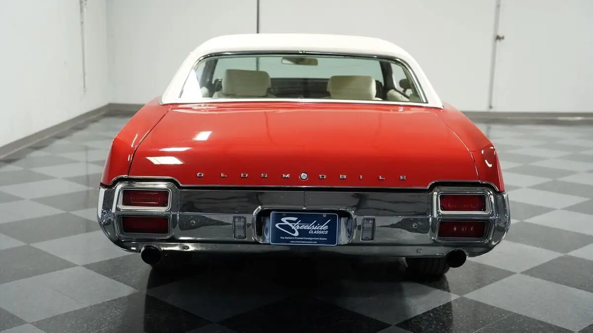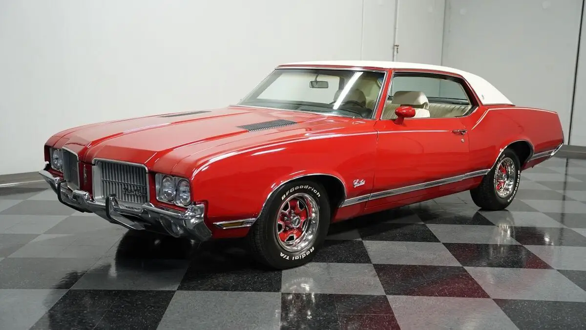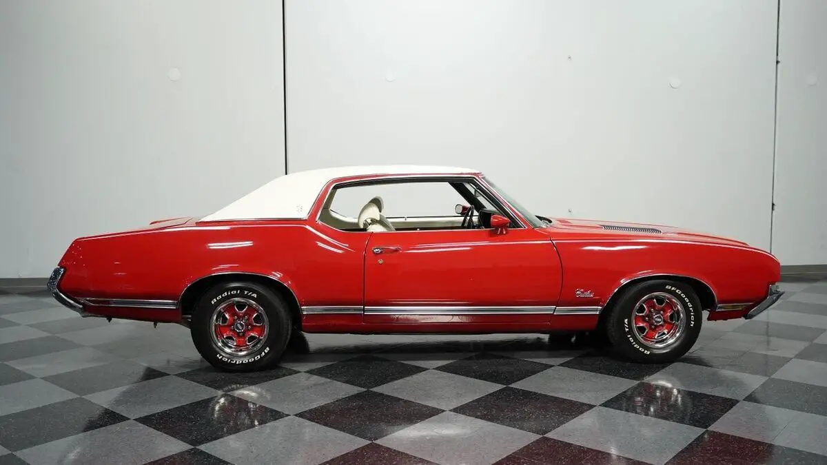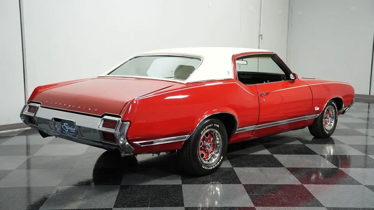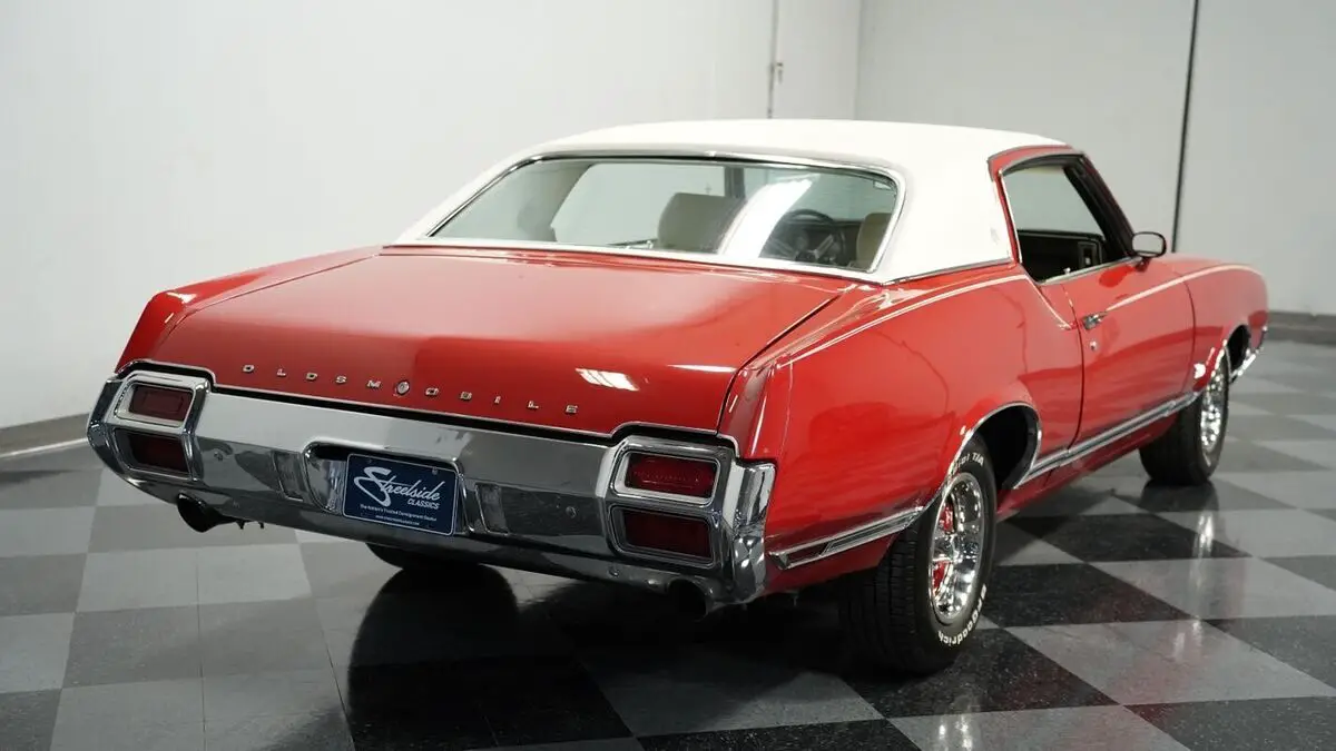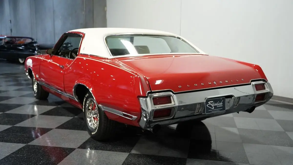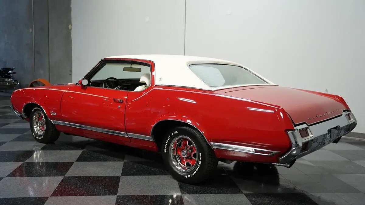 Vehicle Original VIN : 342571R110353• 350 V8 Engine • Electronic Fuel Injection (Sniper 2 EFI) • Edelbrock Performer Intake Manifold • 4 Speed Automatic Transmission (TH200-4R) • Long Tube Headers • FlowMaster Dual Exhaust • Power Disc Brakes • 10 Bolt Rear with Posi-Traction • Coil Spring Suspension with Sway Bars • 442-Style Boxed Trailing Arms • Matador Red Paint • White Vinyl Top • White Stripes • 14" Wheels with 225/70R14 Tires • Parchment Interior with Bucket Seats • Center Console with Shifter • Power Steering • Air Conditioning • AM/FM/AUX Stereo with Bluetooth • Three Keys • New Battery