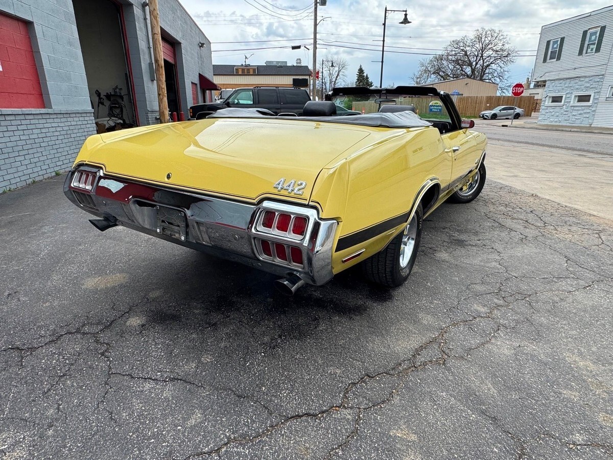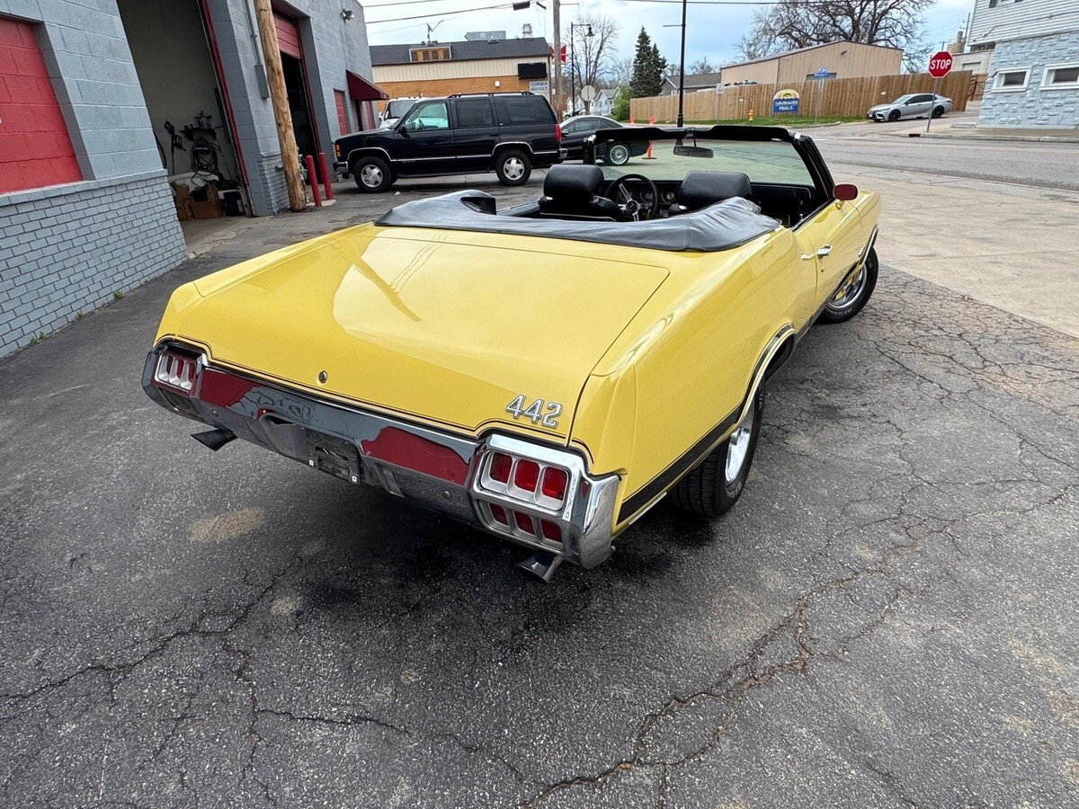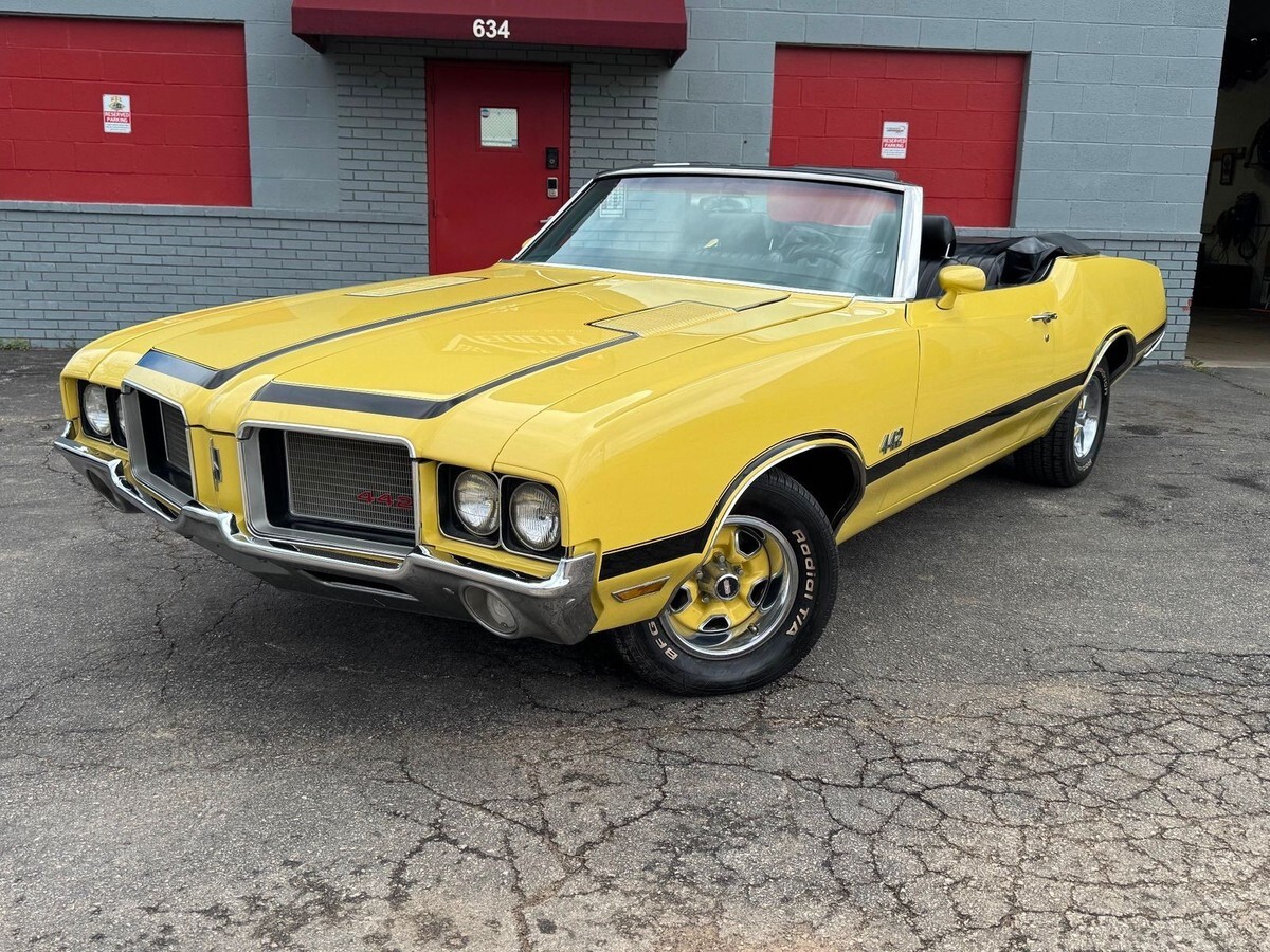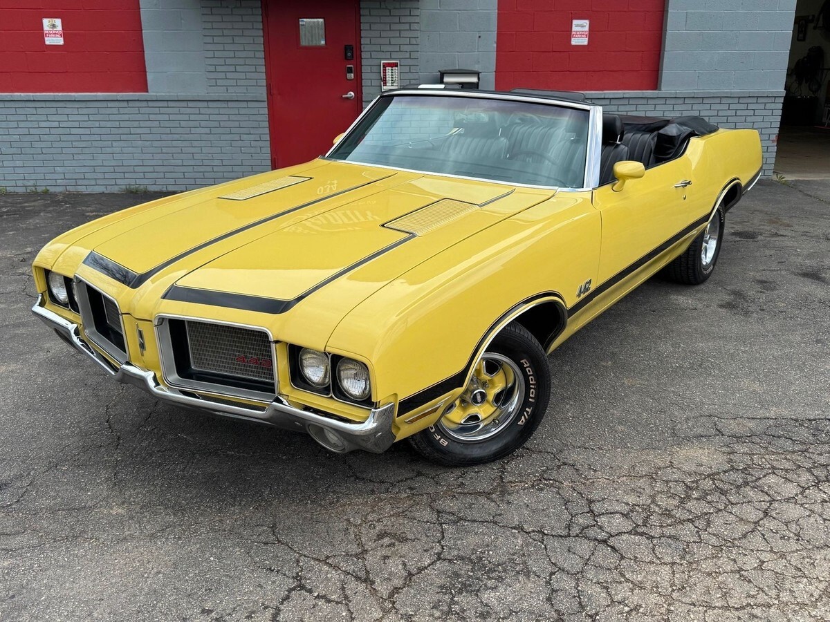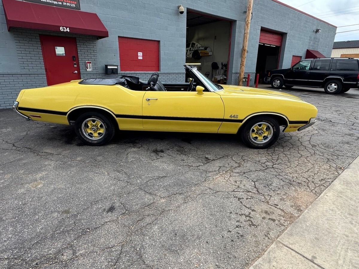 TODAY WE PRESENT THIS BEAUTIFUL 1972 OLDSMOBILE CUTLASS 442 CONVERTIBLE. THE BEAUTY IS FINISHED IN A FLAWLESS YELLWO EXTERIOR WITH 442 BADGING AND STRIPES. THE SIDES ARE LASER STRAIGHT AND THE BODY IS FREE OF ANY KNOWN ISSUES. WE ARE ALSO INSTALLING A BRAND NEW CONVERTIBLE TOP WITH GLASS REAR WINDOW THIS WEEK. ITS POWERED BY A 350 ROCKET ENGINE AND AUTOMATIC TRANSMISSION. ALL THE GAUGES, LIGHTS, SIGNALS, FACTORY AIR CONDITIONING, HORN, WIPERS AND POWER CONVERTIBLE TOP ARE IN WORKING ORDER!!! THE TRUCK IS COMPLETE WITH THE SPARE, JACK AND TIRE IRON AND IN EXCELLENT CONDITION. THE UNDERSIDE IS LIKE THE REST OF THE CAR FREE OF ANY ISSUES AND NEW EXHAUST. WE WILL POST NEW PHOTOS OF THE UNDERSIDE FRIDAY 04/11/25. PLEASE FEEL FREE TO CALL ASK QUESTIONS OR MAKE AN OFFER ANYTIME @ 314-941-5226