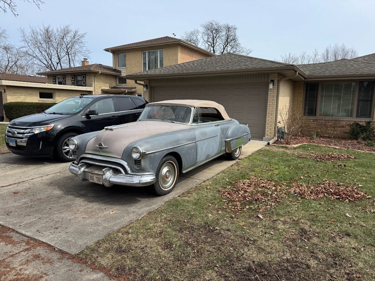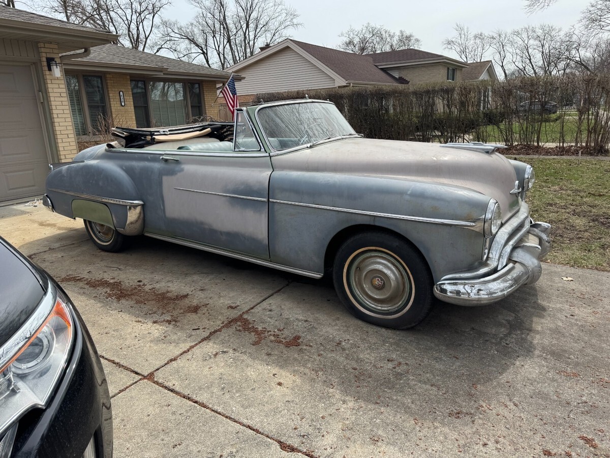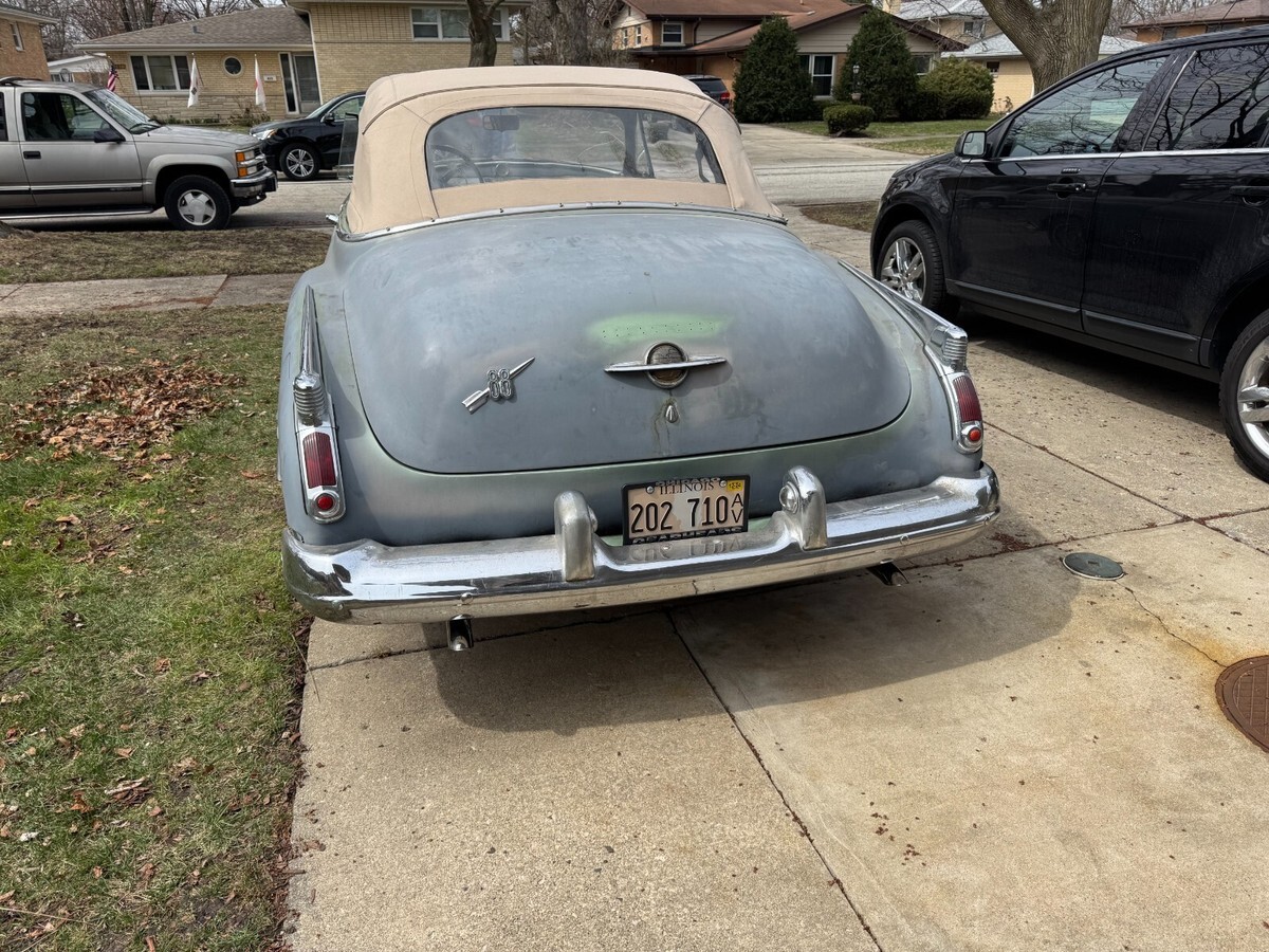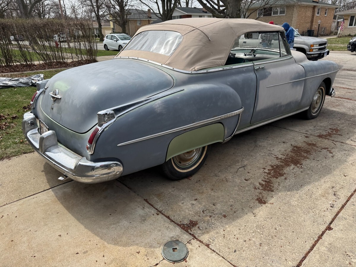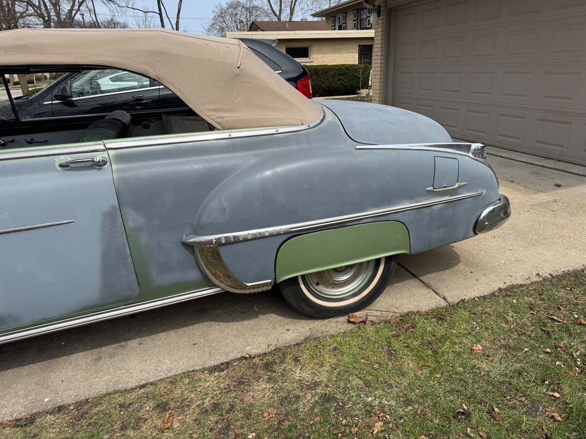This is a very rare 1950 Oldsmobile 88 Futuramic convertible originally from California.It runs great and has a recent battery.The original color was jade green and the tan top is in good shape and goes up and down.The engine is the original 303 V8 with a 4 speed hydramatic auto transmission.Very solid car that will need paint and interior work.There are many extra parts and convertible parts car also VIN 508C2550