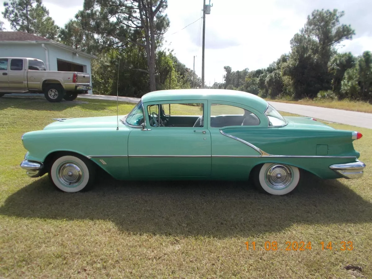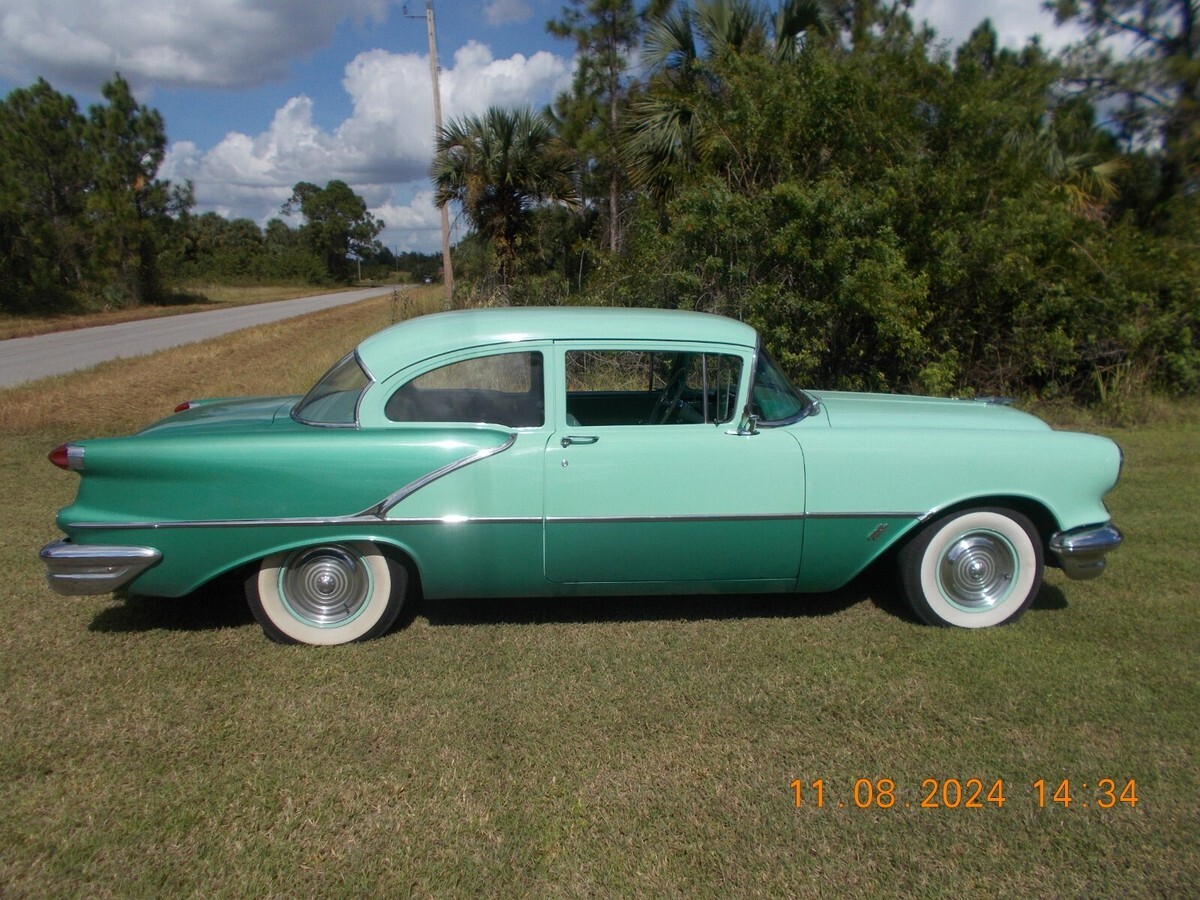 '56 Olds base 88 2 door sedan. Looks & runs well, very clean. All parts are included to add PS, PB, 4-barrel carb, & numerous other parts, with sale of car. Believed to be all original. Shipping to be arranged by buyer.