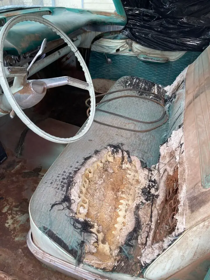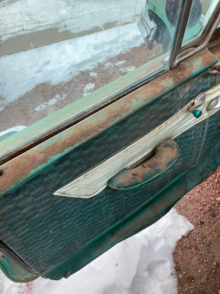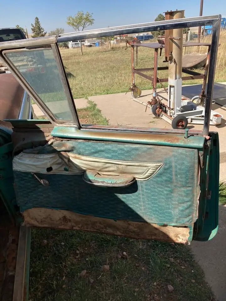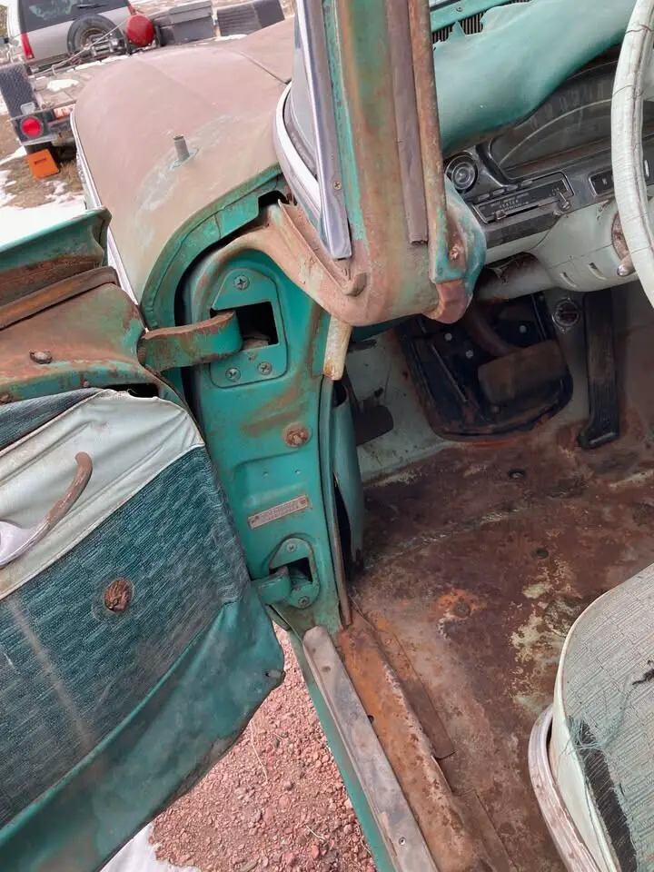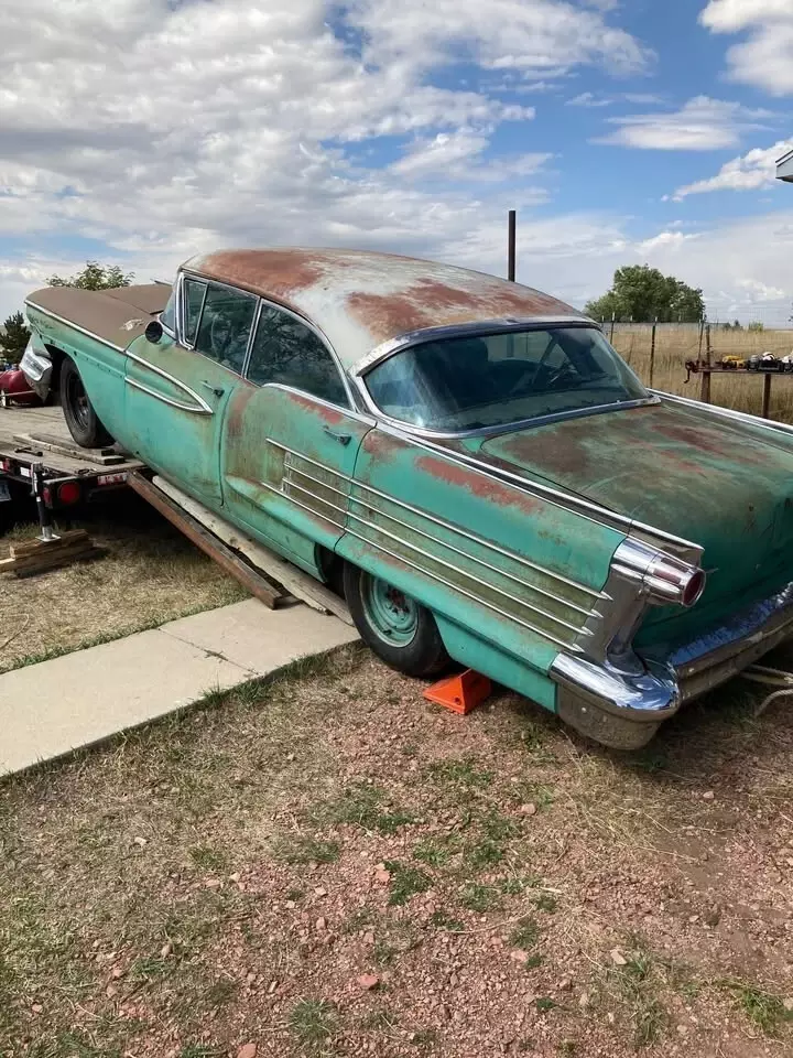 For Sale is one used 1958 Oldsmobile Dynamic 88 Four Door hardtop. This car was purchased new in 1958 by my Grandmother. It is an Arizona car. I have a clear Wyoming title for it. All original and mostly complete in non- running condition. Has the original 371 Rocket V-8 engine with the original four speed Hydra-Matic automatic transmission. The engine is not locked up and will turn over with the starter. The starter was recently rebuilt at a local Auto Electric shop. I believe the engine will run if a new set of spark plugs, spark plug wires, and points are installed. The water pump will need to be freed up or replaced. The engine and transmission were working when the car was parked many years ago. The body is mostly straight with some dents and scrapes. The chrome is good and mostly complete. The front left fender is damaged and it's lower chrome is missing. The front bumper is damaged. Solid floors, trunk, and frame. No rust through on the fenders or floors. Overall rust free, some rust around the left rear inside sill plate and surface rust. The passenger front window is broken out. The glass is mostly good, the windshield has some chips. The original radio antenna comes with the car. The interior is poor, both seats need reupholstered. Needs new door panels, carpet, head liner, and dash pad. The instrument panel and radio have not been altered and are complete except for a missing cigarette lighter. The tires are in fair condition. The car has five original rims(one is the spare) and the four original hubcaps. Also, the original jack and lug wrench come with the car. Two ignition and two trunk keys come with the car. Great builder to restore or install a special engine and drivetrain. Four door cars are underrated. Payment with cash, bank draft, cashier's check or personal check. The vehicle will not be released until payment with cash or check clears. Buyer responsible to bring a trailer to my location and remove the vehicle within 14 days. Text me or call for questions, etc. at 1-307-680-9020. Serious buyers only! Thanks for looking!