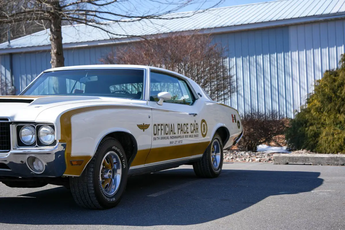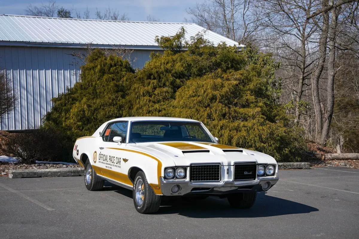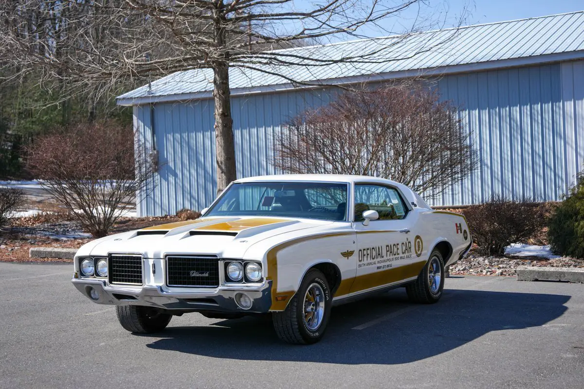 Route 61 Classics is proud to offer a true piece of American muscle car and motorsports history: this authentic 1972 Oldsmobile Hurst/Olds Pace Car. A genuine W45 example, this car retains its original, numbers-matching drivetrain and is backed by its original build sheet and owner's manuals-a rare and significant combination for collectors and enthusiasts alike. At its heart is the numbers-matching 455 CI V8 engine, paired to its original Turbo 400 automatic transmission. Fuel delivery is handled by the correct 7042251 Rochester Quadrajet carburetor, completing a factory-accurate powertrain that offers both performance and provenance. The car is finished in Cameo White with factory-correct gold reflective fade-out striping and official Indianapolis 500 decals, just like the ones used to pace the Indy 500. The fiberglass Ram Air hood is fully functional, complete with dual air intakes and hood pins-adding both performance and classic muscle flair. The black vinyl interior features bucket seats and the iconic His & Her Hurst dual-gate shifter. Additional features include power steering, power brakes, and the original 14" Super Stock III wheels that complete the signature Hurst look. This 1972 Hurst/Olds is the real deal-an unrepeatable blend of originality, documentation, and limited-production pedigree. If you're looking for a collector-grade car that represents the golden era of muscle cars and factory performance, this is it. At Route 61 Classics, we value honesty, documentation, and helping buyers make informed decisions. Our detailed listings and transparent pricing ensure you know exactly what you're buying before it reaches your driveway. Reach out today to make this documented, numbers-matching Hurst/Olds yours.