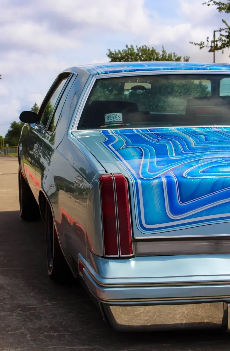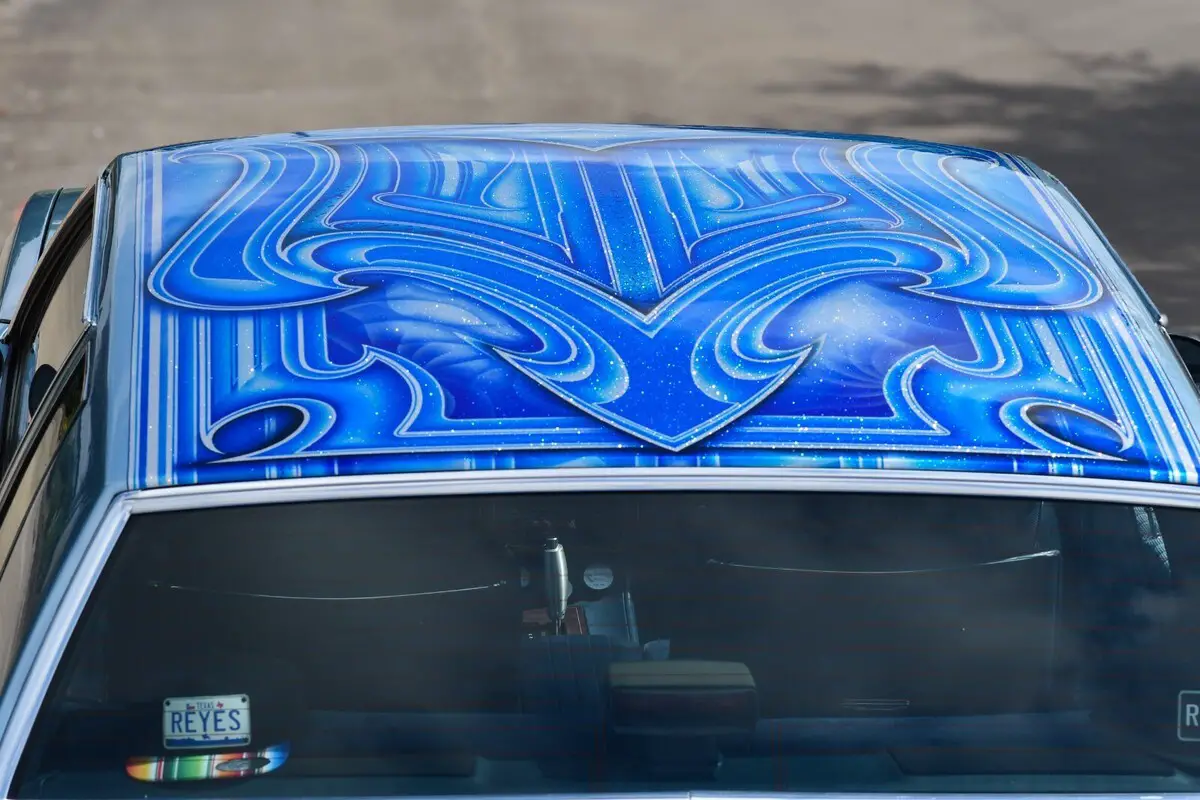 The absolutely incredible pattern on the roof and trunk were painted by the legendary Michael “Sic” Cato out of Houston Texas. The pattern and paint are beyond amazing and gathers crowds everywhere. Pictures don’t even do it justice. It’s a must-see-in person experience to truly be flabbergasted.