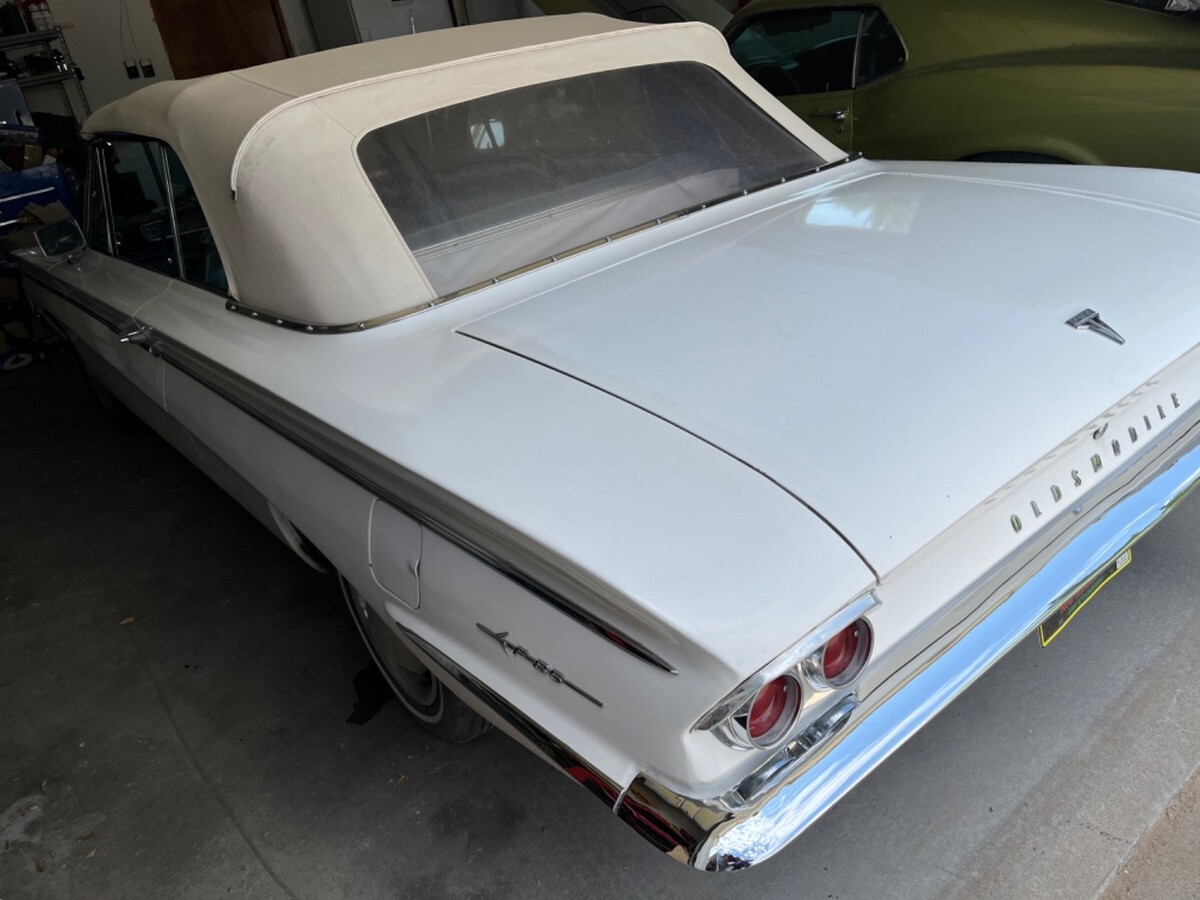 Up for grabs is one 1962 Oldsmobile F 85 convertible was just used in the TV series dark winds has a rebuilt engine and transmission fires right up top works goes up and down won’t last long being that most convertibles are really expensive and this one is priced very fair there’s another one on here that’s for sale for over 20,000 so I’d say this is a bargain drop the top through your surfboard and go to the beach. Super super solid car never any rot very cool convertible