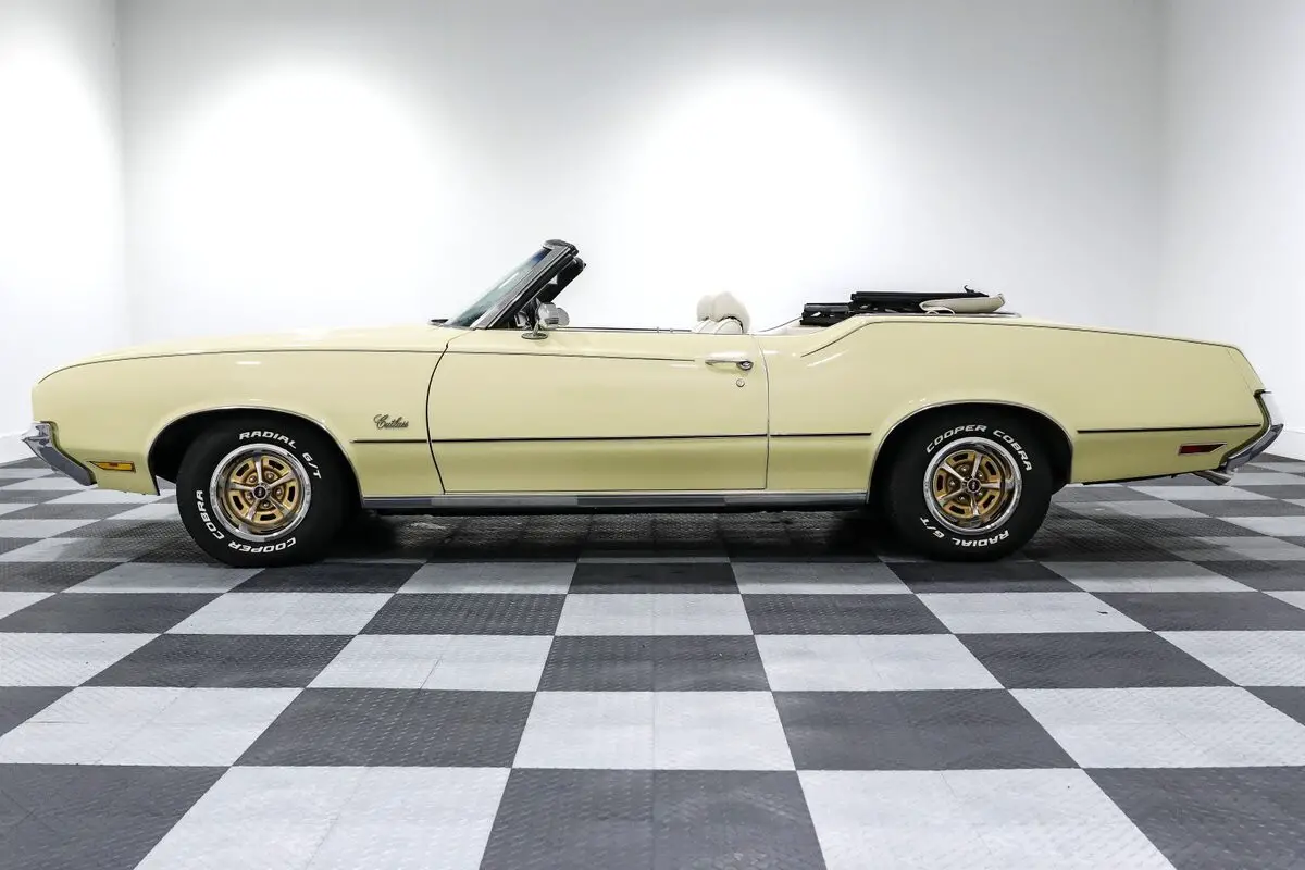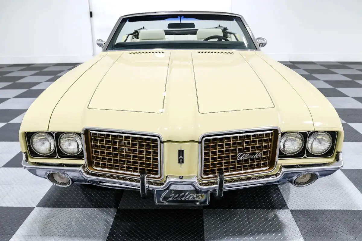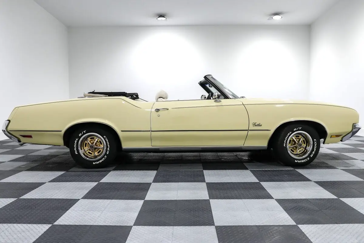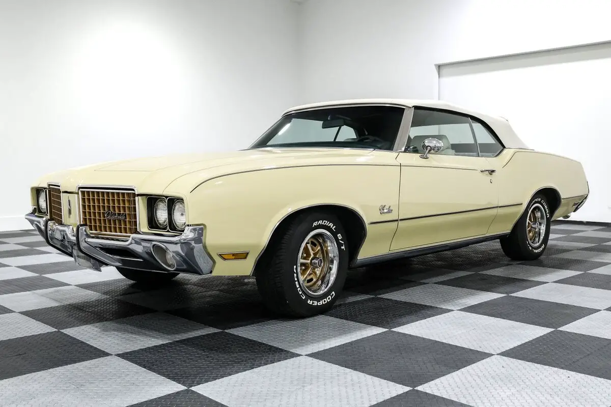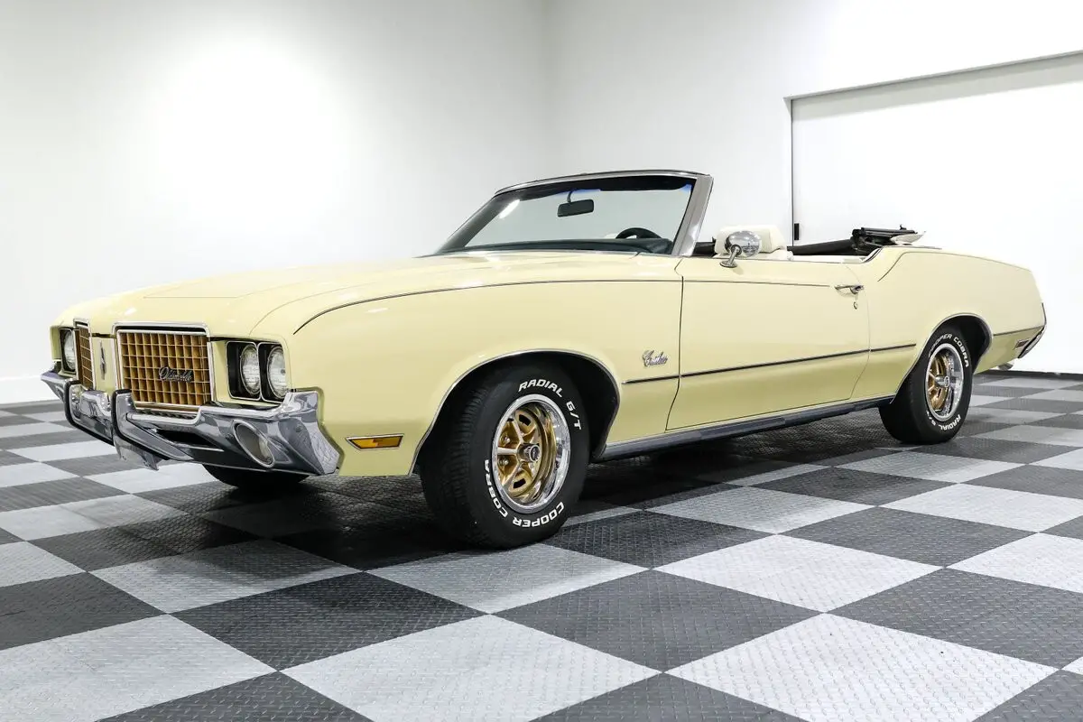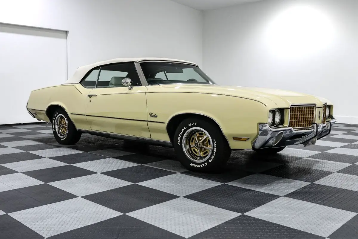 Give us a call at903-765-5076 with any questions! Financing and shipping available! This 1972 Oldsmobile Cutlass Convertible isn't just a cruiser-it's a bruiser wrapped in a sunshine suit. Finished in a bold yellow over a white bucket seat interior, this drop-top channels the spirit of Oldsmobile's golden era, when cubic inches and muscle-bound style ruled the streets. And with a 455ci Olds V8 under the hood, this one doesn't just look the part-it brings the heat. Backed by a stout Turbo 400 automatic transmission, the big-block Cutlass serves up effortless torque and a deep, authoritative rumble through dual exhaust. The front disc brakes and power steering keep things civilized, while the aluminum radiator with dual electric fans ensures it runs as cool as it looks. It's got all the right go-bits to cruise, roast tires, or do both before the sun goes down. Inside, this Cutlass means business. Bucket seats with a center console offer vintage muscle car swagger, while the tilt steering column, power windows, and Autometer gauges blend form and function. Add in a thumping aftermarket sound system and air conditioning, and you've got a cabin that's as comfortable as it is capable. Top up or top down, it turns heads. The power convertible top drops in seconds, and the 14-inch Oldsmobile Rally wheels add a classic touch that ties the whole look together. The stance is stock, the vibe is pure '70s muscle, and the sound is all Olds. Whether you're chasing sunsets or your youth, this Cutlass Convertible is the real deal-big power, big presence, and big fun with every throttle stab. Vehicle Options - Power Convertible Top - Autometer gauges - 14 inch Oldsmobile rally wheels - Power Steering - Power Brakes - Front Disc Brakes - Dual Exhaust - Air Conditioning - Tilt Steering Column - Power Windows - Bucket Seats w/ Console - Aluminum Radiator with Dual Electric Fans - Aftermarket Sound System