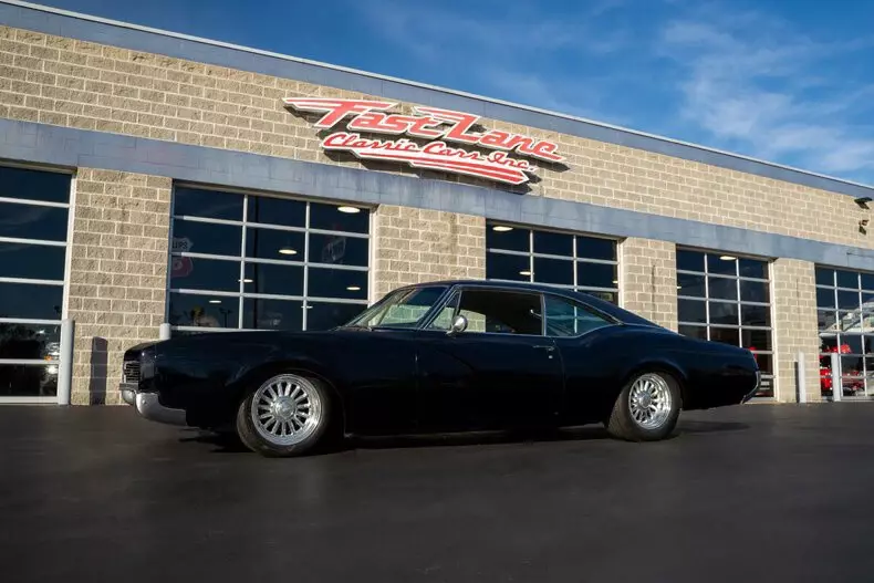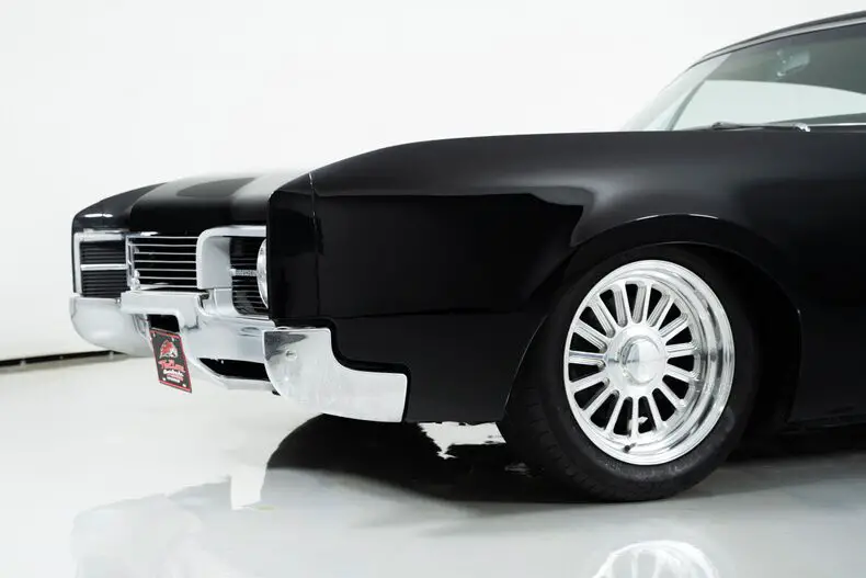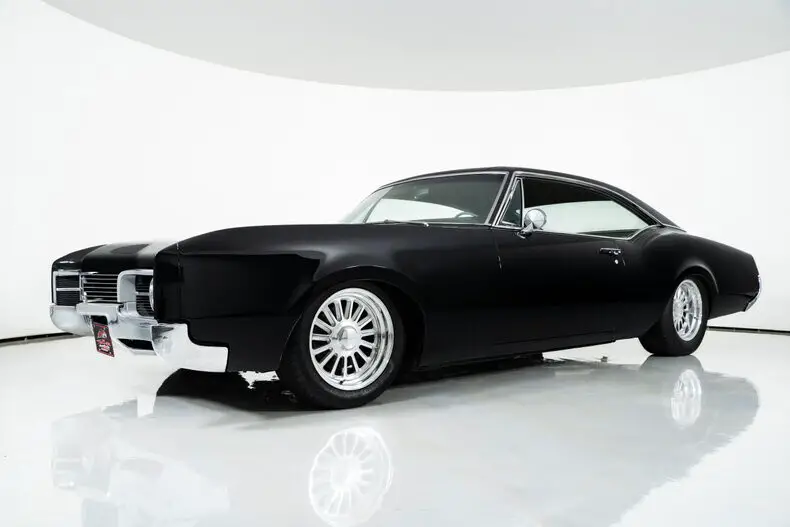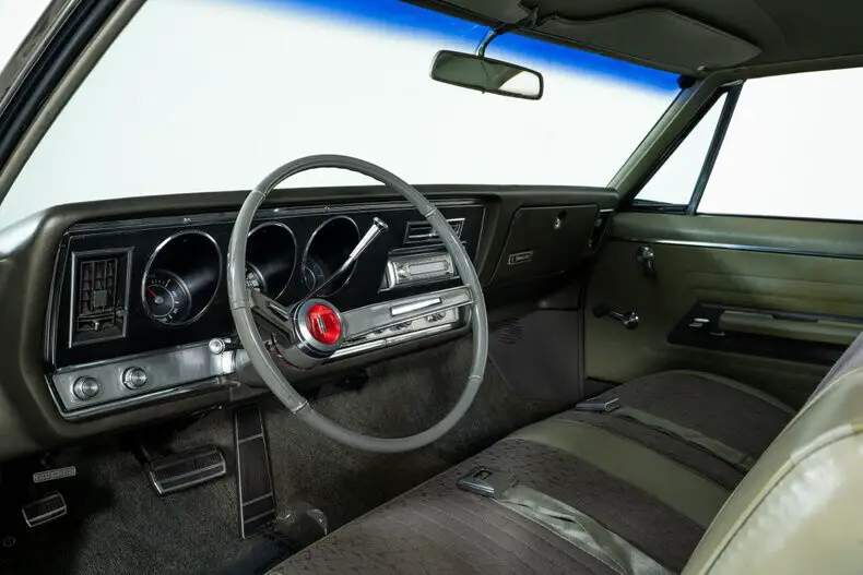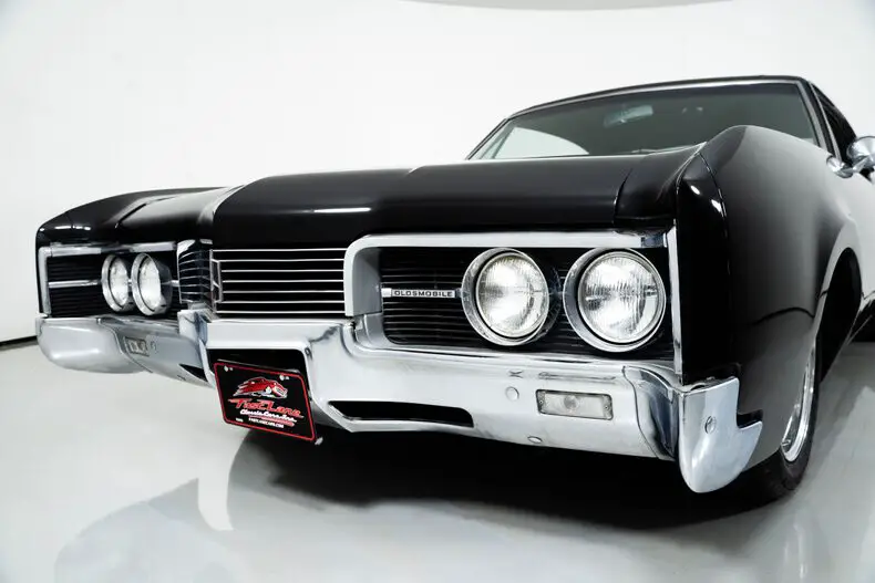 This 1967 Oldsmobile Delmont 88 for sale has a 425 Super Rocket V8 with 4-Barrel, 3–Speed Automatic TH400 Transmission, Black Exterior with Black Vinyl Roof, Vinyl/Cloth Bench Seat Interior, 3.08 Rear Gears w/ Posi-Traction, Power Brakes, Power Steering & Factory A/C! The BIG Delmont 88 Holiday Coupe,1.8 Tons of Fun !!!