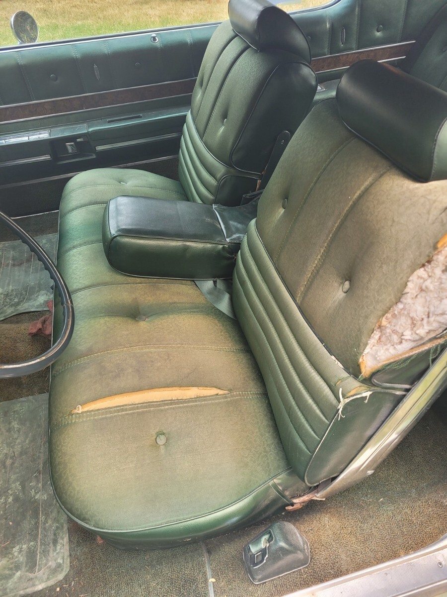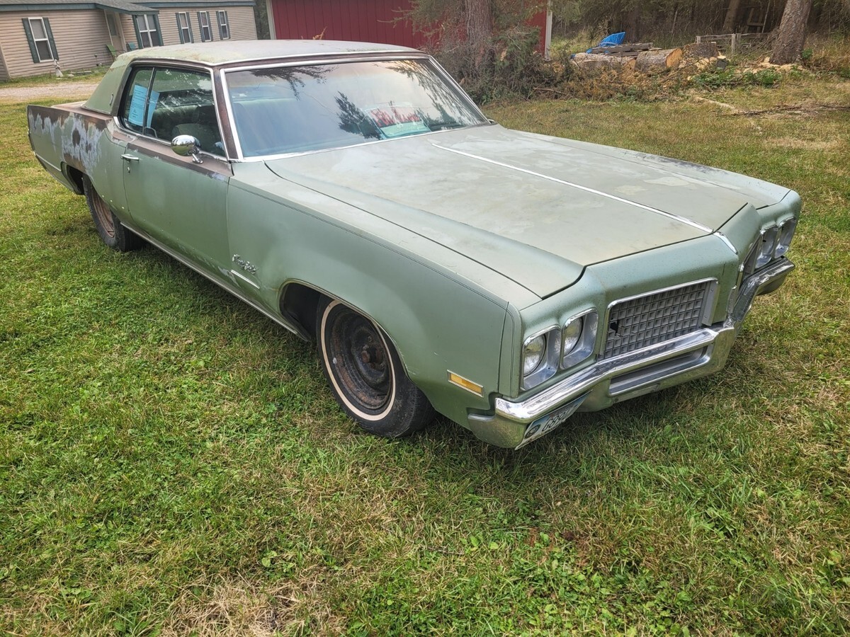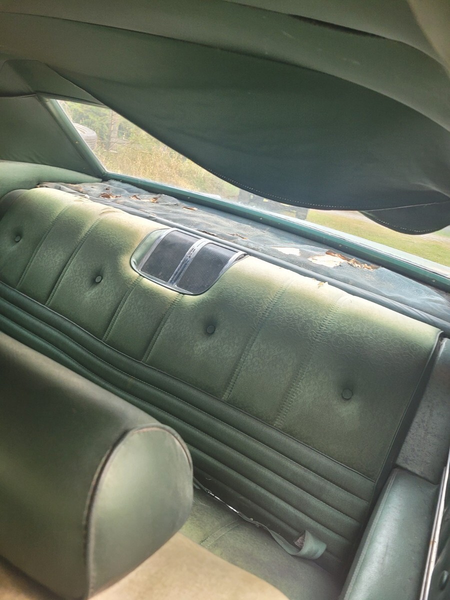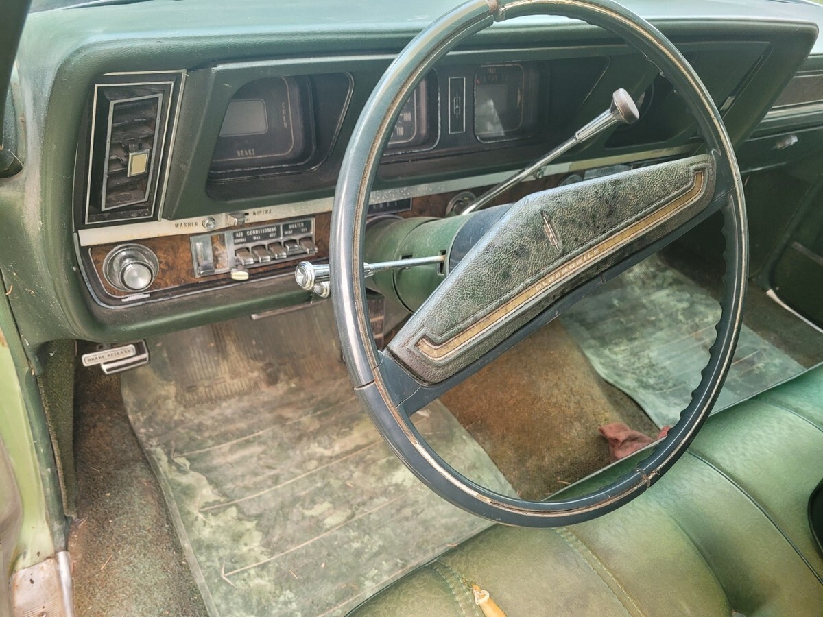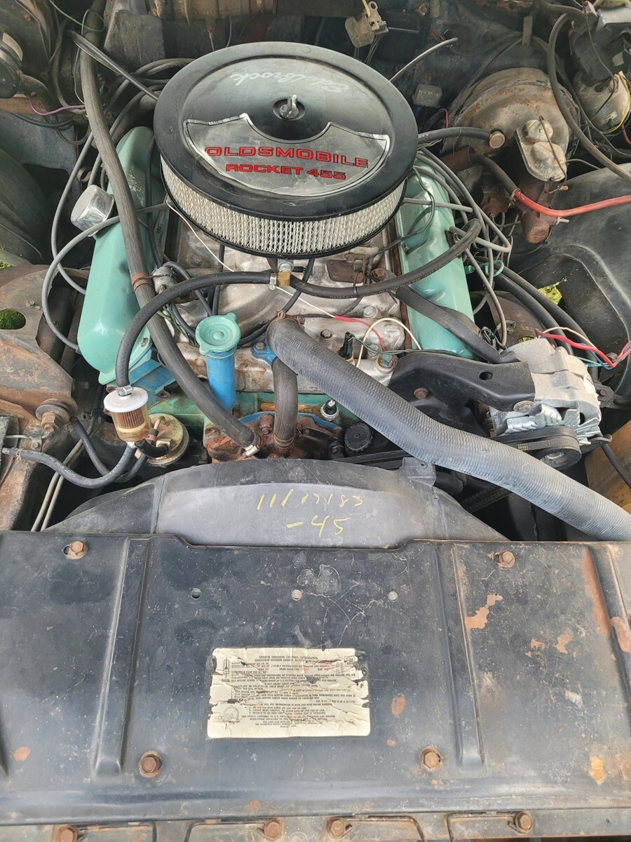 The 1970 Oldsmobile Ninety-Eight is a classic car with a green interior and exterior, featuring a coupe body type with 2 doors and 6 seats. This automatic transmission vehicle has an 8-cylinder engine with a displacement of more than 7.0 liters, specifically the 455 Rocket engine that has been recently rebuilt, balanced, and bored 30 over. It has had 2 previous owners and has a mileage of 45463 on the meter. Additionally, it comes equipped with power windows, cloth seats, power front seat, a tilt steering wheel, and power steering, making it a stylish and comfortable choice for any classic car enthusiast. Mechanically good from front to rear for its age. Mainly needs paint, upholstery, and touch-ups to be finished and resored.