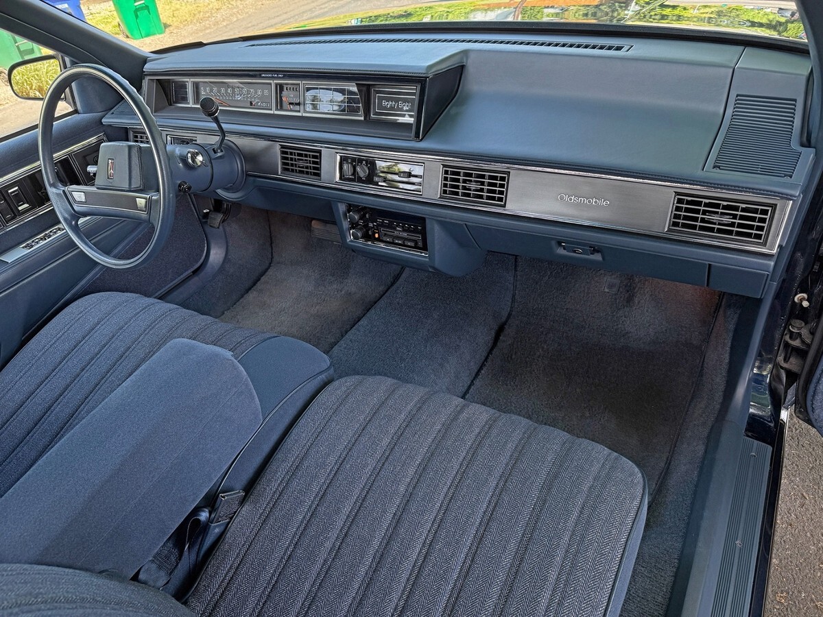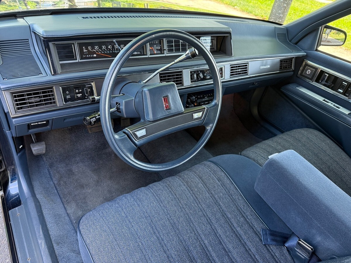 The time has come to sell my fun car. This Olds was bought new by Lois Bush of the Bush family of GM dealerships. Basically looks, drives and smells like a new car. AC blows cold, all power options work as intended. Perfect upholstery, excellent glossy paint and arrow straight body. Nice looking in dark metallic blue.Great to drive, tires have about 1800 miles on them. Good freeway car, or around-town cruiser, that's what I was using it for. Gets a surprising amount of attention from the Gen-Z crowd for some reason. Clean Carfax, clean title. I can help with shipping logistics. Email me with any questions and I'll be glad to answer them.