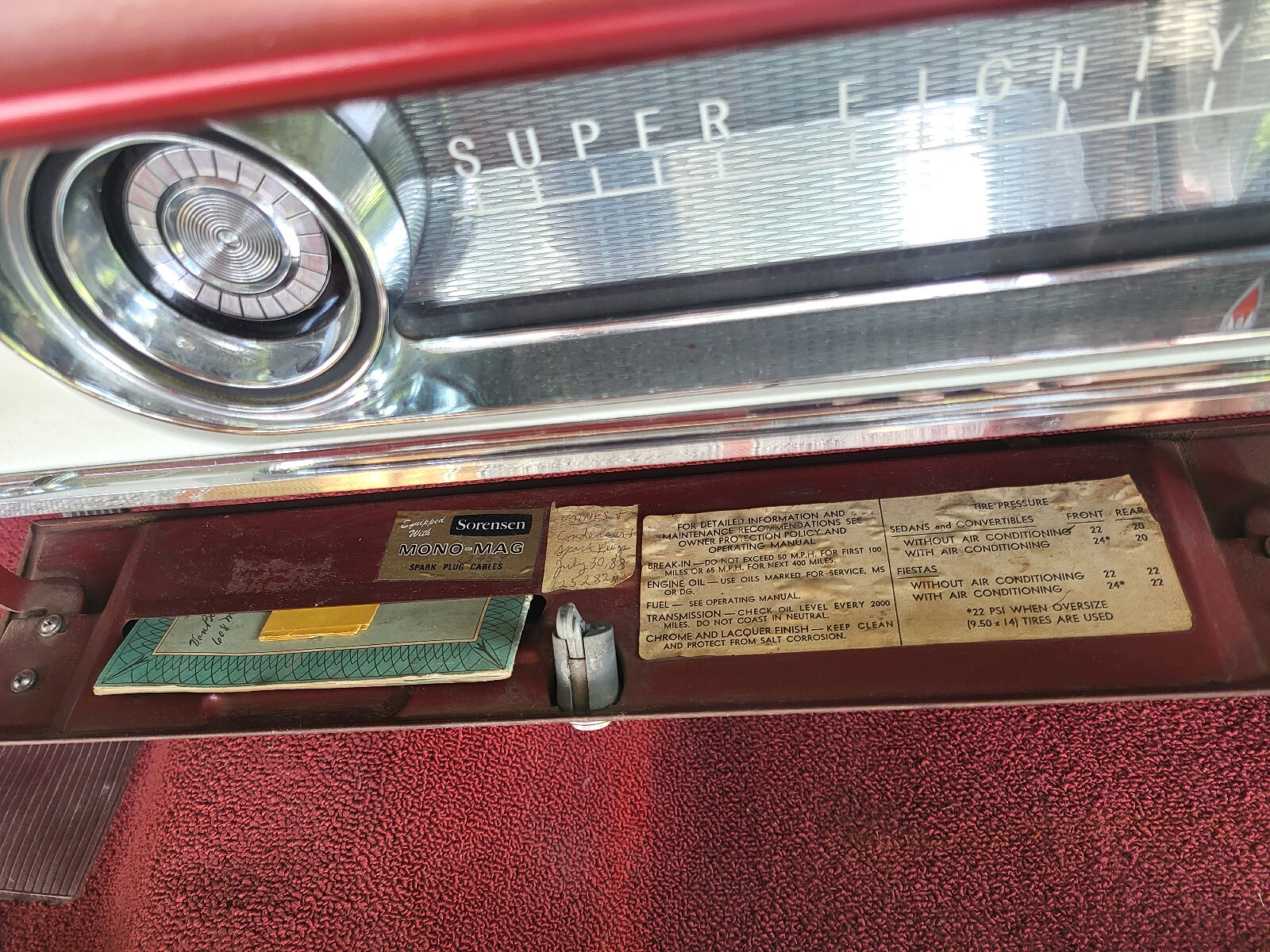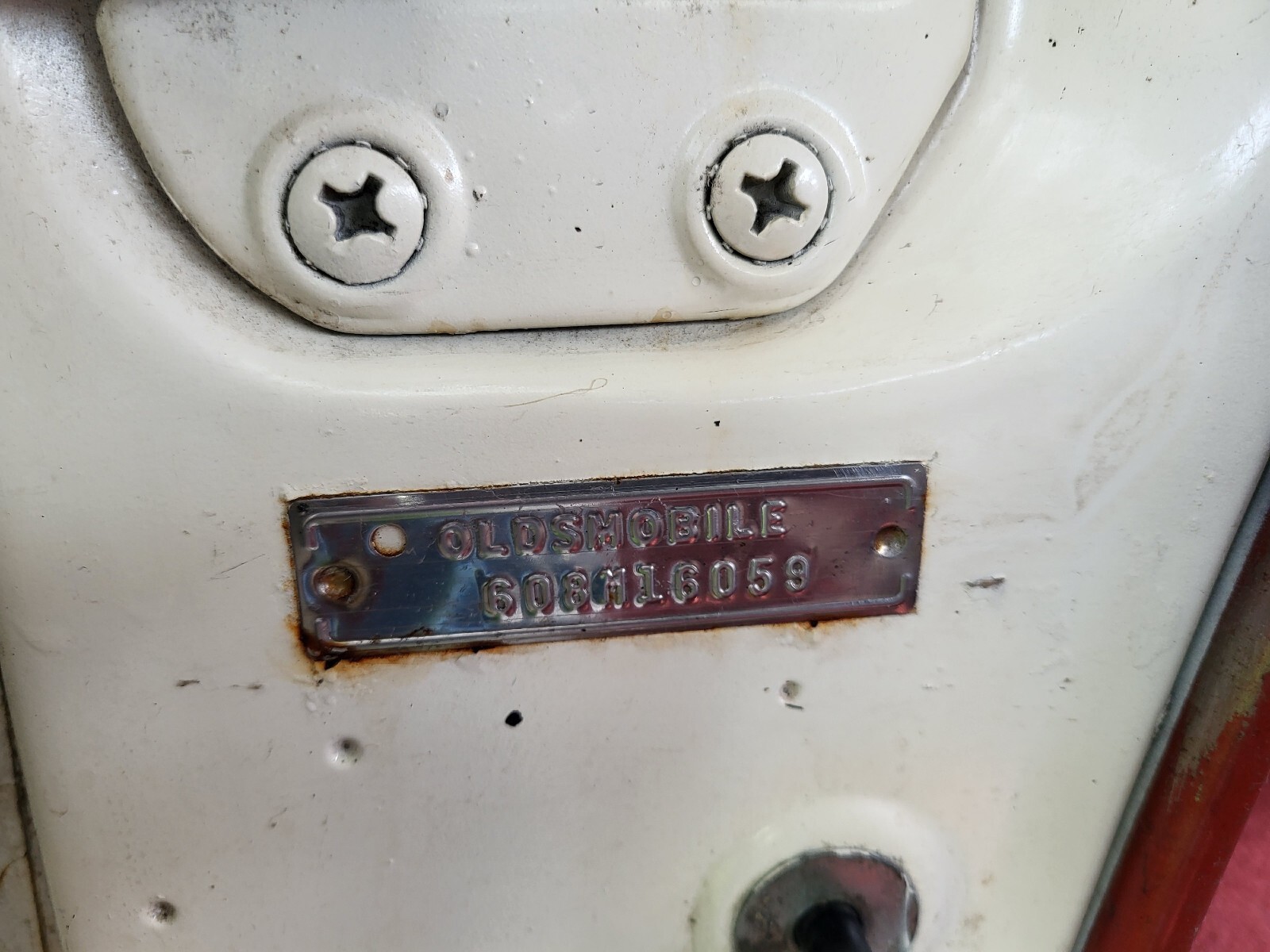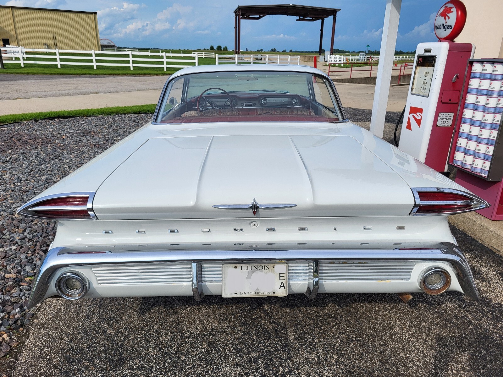 The 1960 Oldsmobile Super 88 with 394 Rocket is a classic coupe with a vibrant red interior and a clean white exterior. Restored in 2020, replaced fuel system, new paint, upholstery restored or replaced except seats, replaced brakes, new seal kit in transmission, tires have less than 5k miles on them, all new engine gaskets except heads. Very reliable running vehicle. Car is a time capsule with all original trim, first-owners pamphlet in glove box, all original trunk liner w/ spare, all original interior except new carpet, package tray and sun visors.