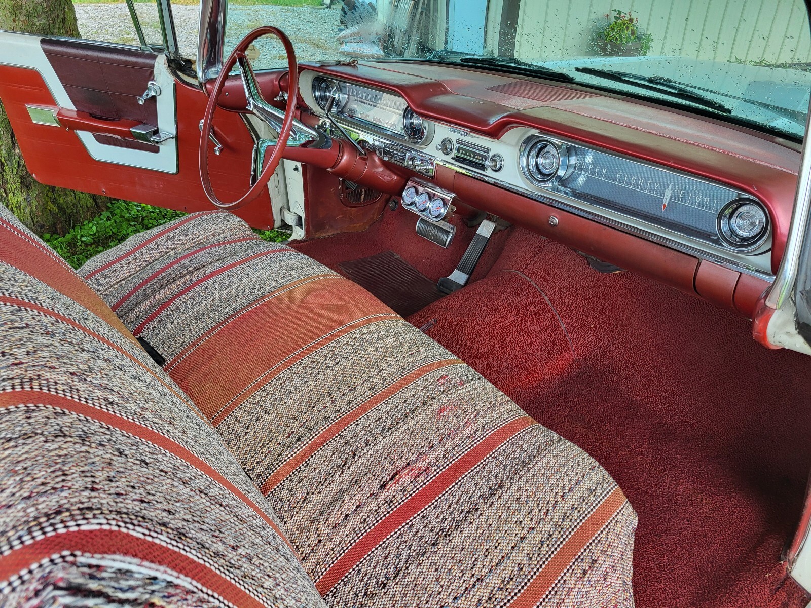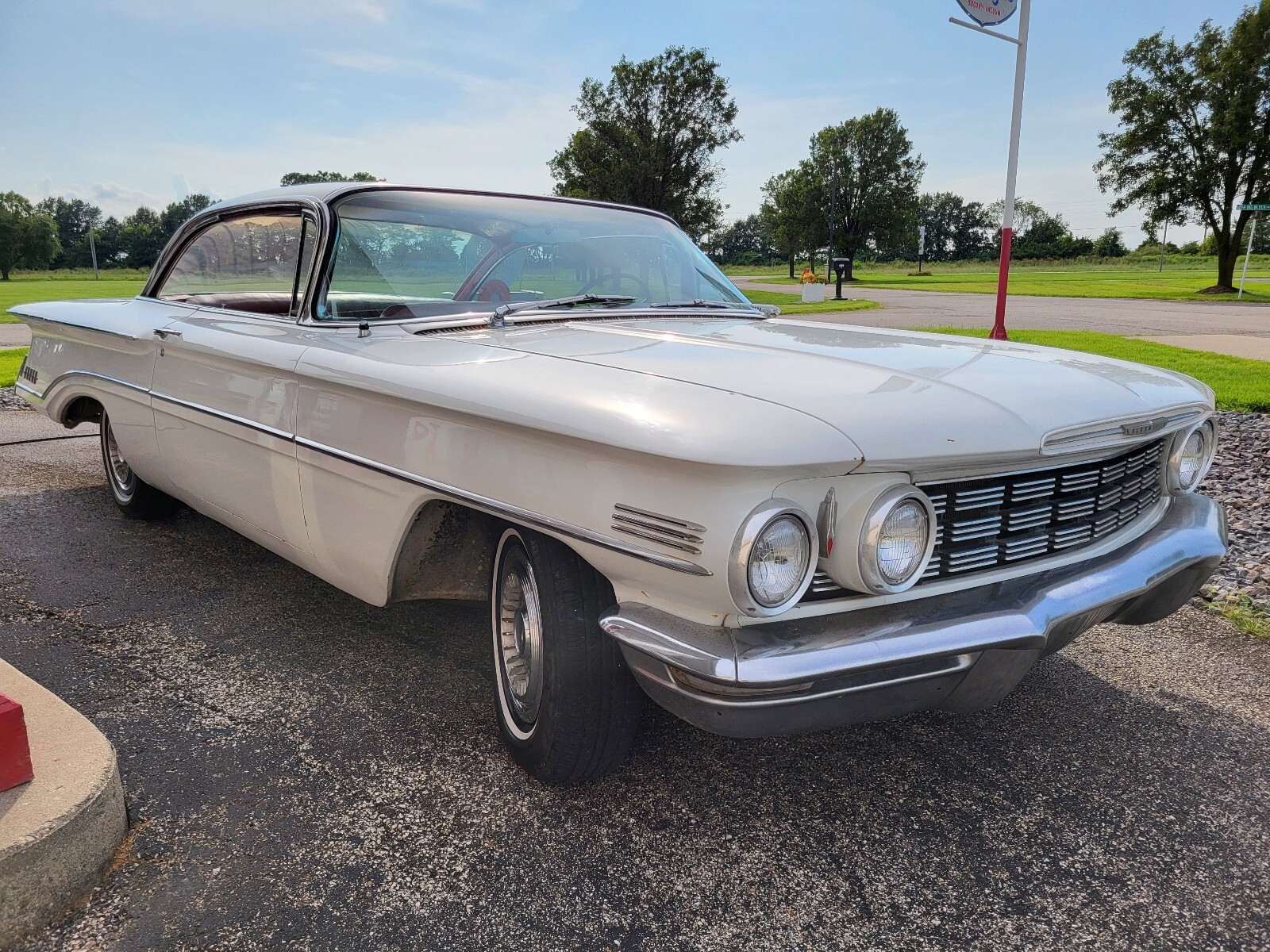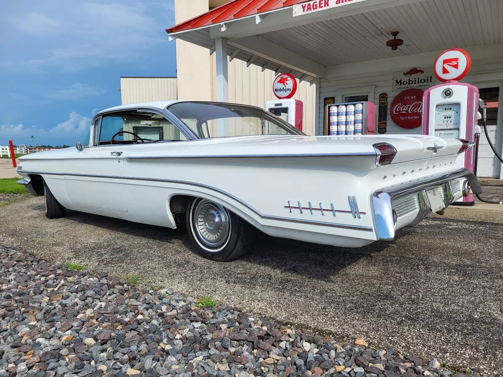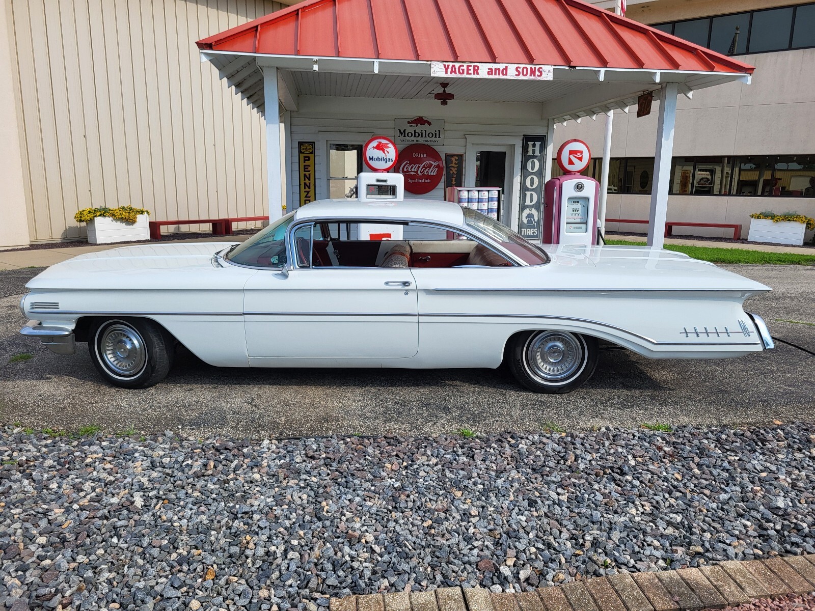 The 1960 Oldsmobile Super 88 with 394 Rocket is a classic coupe with a vibrant red interior and a clean white exterior. Restored in 2020, replaced fuel system, new paint, upholstery restored or replaced except seats, replaced brakes, new seal kit in transmission, tires have less than 5k miles on them, all new engine gaskets except heads. Very reliable running vehicle. Car is a time capsule with all original trim, first-owners pamphlet in glove box, all original trunk liner w/ spare, all original interior except new carpet, package tray and sun visors.