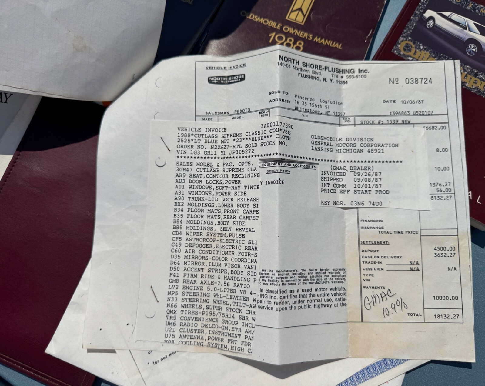 1988 Oldsmobile Cutlass Supreme ClassicV8 5.0L15k Original MilesRare Blue on Blue factory color codeClean titleNo accidentsCar drives like new.No transmission issuesNo engine issuesTires were replaced in 2024Brakes were done 2024Sunroof works excellent--No leaksOil changes & routine maintenance were always done.