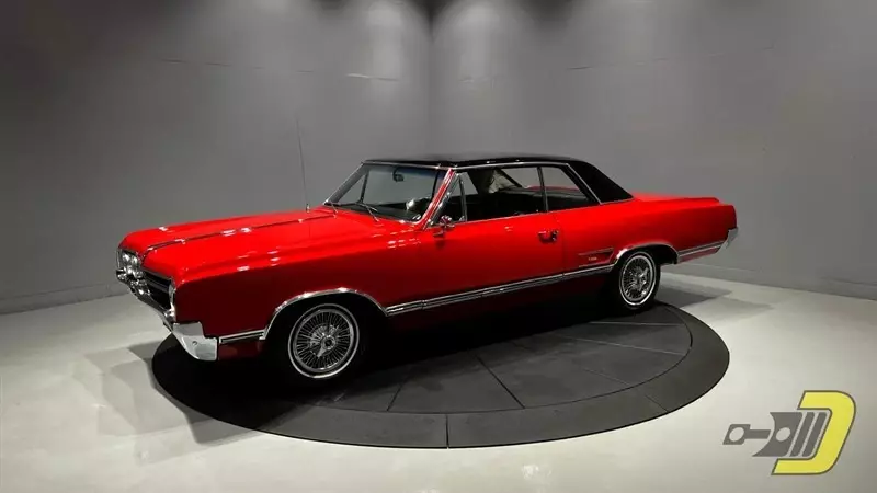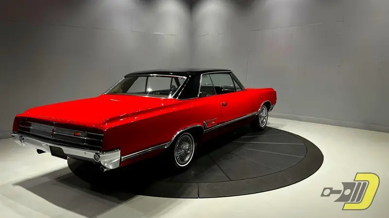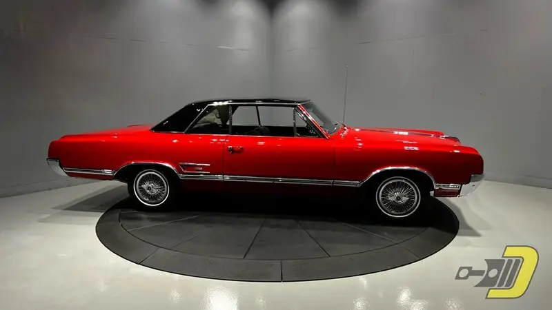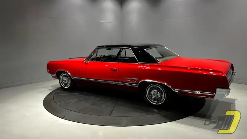 For 1965 Oldsmobile introduced the new 400 cubic inch Rocket V8. It was the only engine available in the 4-4-2 that year and offered impressive factory ratings of 345 horsepower and 440 foot-pounds of torque. The transmission is the optional 2-speed Jetaway automatic which, for the 4-4-2, was a special version designed for high-RPM shifts. This is followed by a heavy-duty driveshaft that delivers power to the Oldsmobile 10-bolt rear end. The 4-4-2 suspension featured dual sway bars measuring 0.94” in front and 0.87” at the back mounted to boxed rear control arms. Additional equipment includes power steering and power brakes that have been upgraded with front discs and a dual reservoir master cylinder.