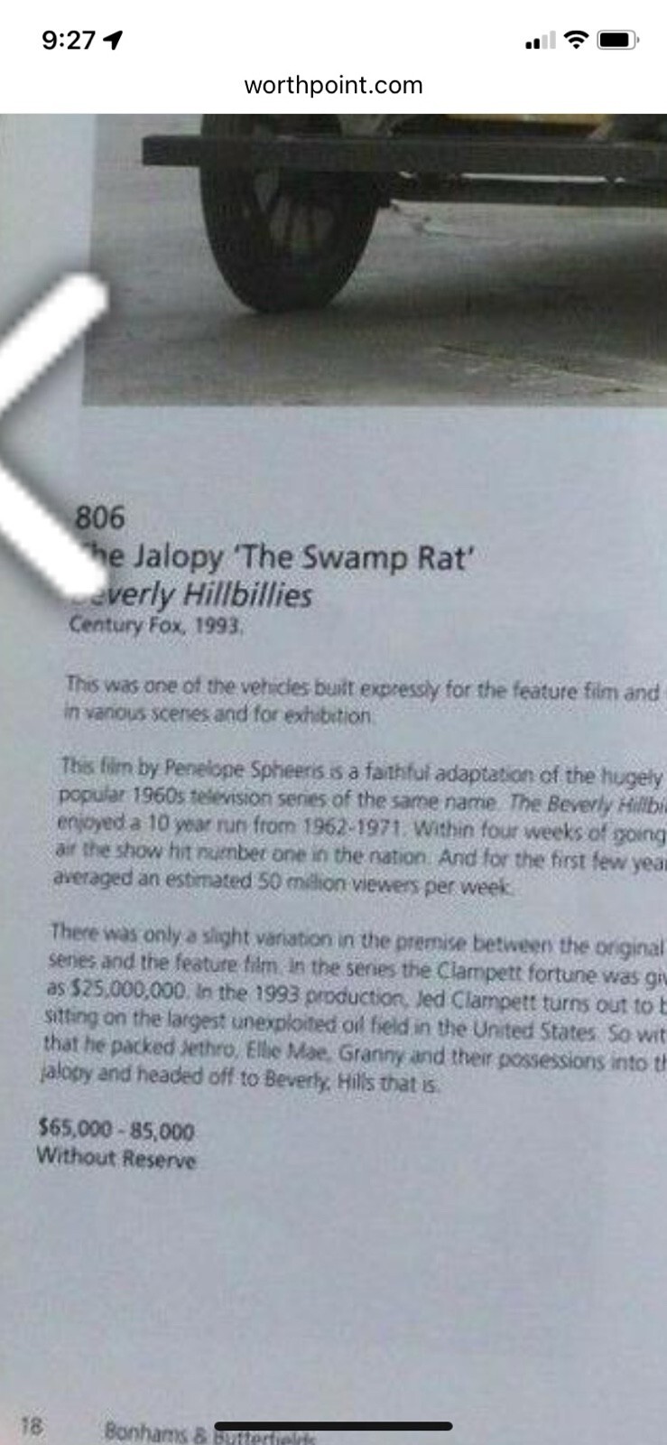 Beverly hillbillies ( swamp rat ) this is the real deal this is one of the trucks built for the 1993 movi, built by Barris kustoms see pictures attached. Was sold at the Barris movie car auction in Los Angeles 20 years ago . The truck is a non runner, see pictures for the movie truck they used to do the film . This might be the last one available, more pictures are available if interested, there is a lot of information on the vehicle out there to confirm.if you’re interested and want more photos to confirm this is the auction truck let me know. Sold on a bill of sale