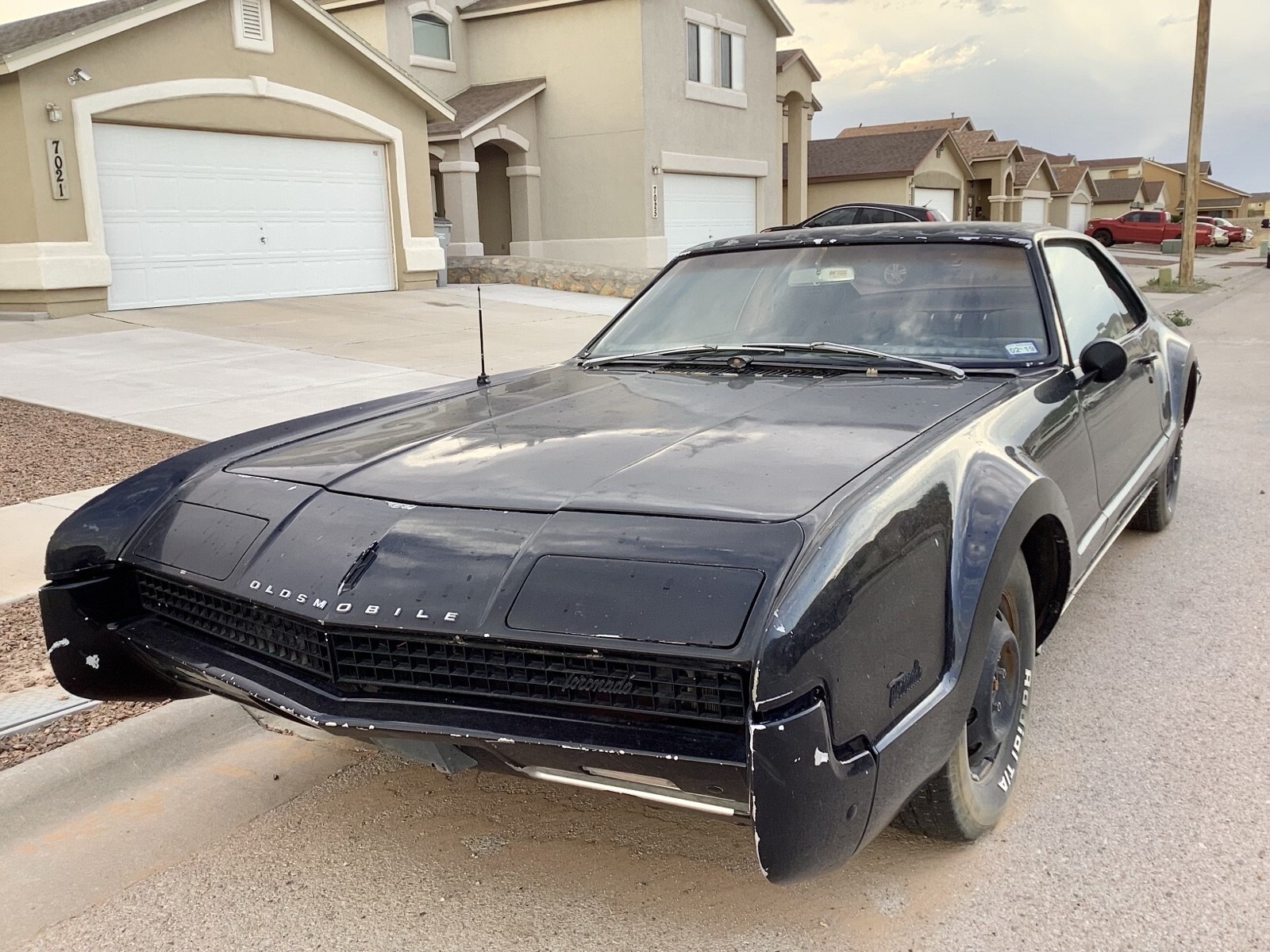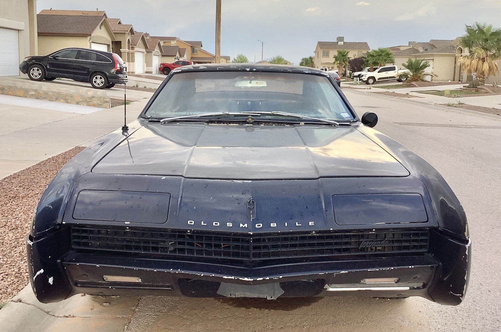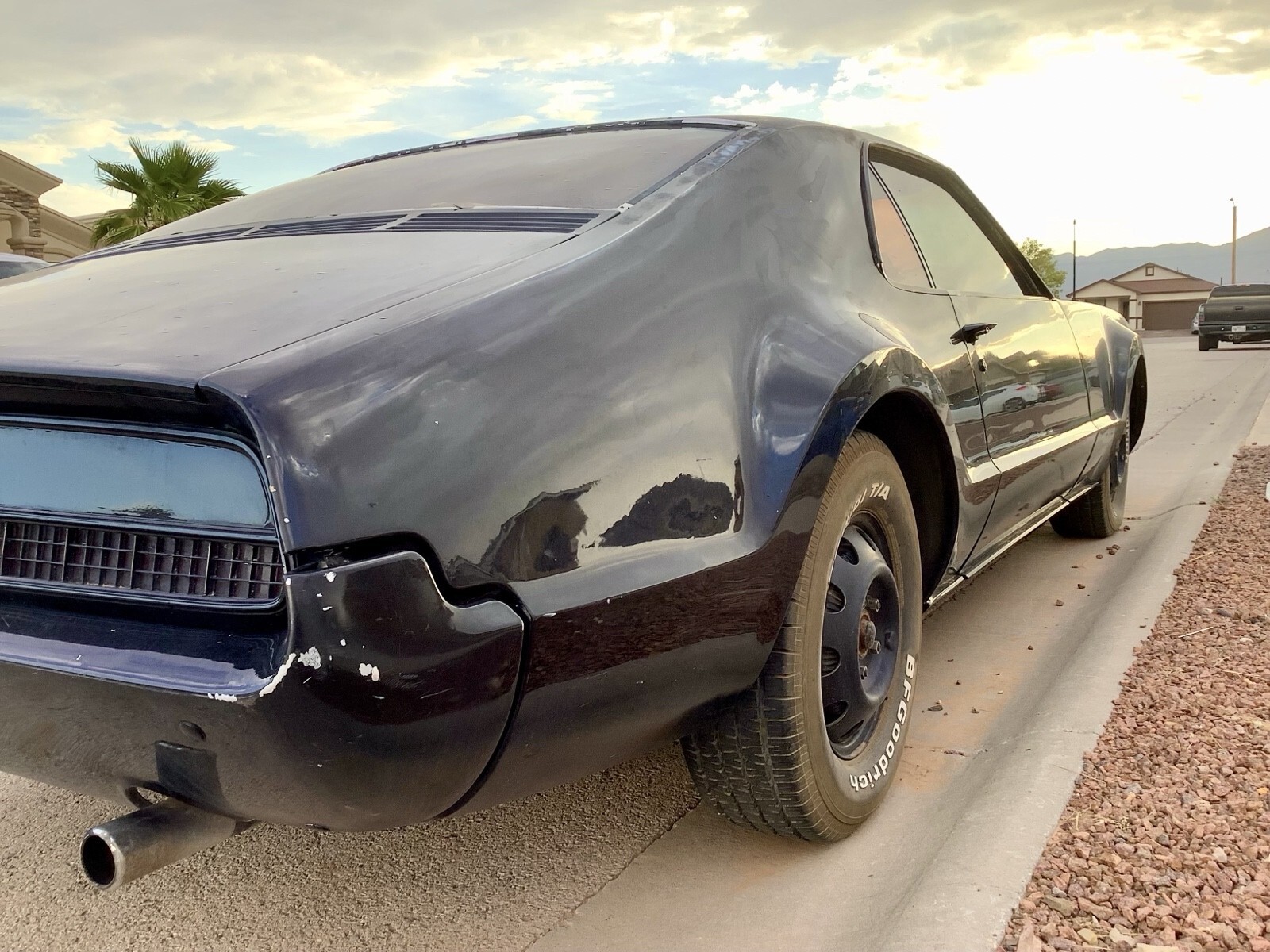 This 1967 Oldsmobile Toronado was a running project car that the owner has had for over 5 years. While it needs work and was primarily used for weekend drives, it’s a classic that now needs wok but has a clean title. This mean Toronado was destined to be a "Mad Max" style driver without the worry of perfection. It's a great platform to own a big block cruiser with the - ahead of its time and revolutionary - "Unitized Power Package" with FWD. The lines are sleek but masculine. The engine runs, the transmission shifts, and most electrical components work. This is meant for someone that enjoys a project and isn't looking for a show car. There are flaws in the body (no big dents but a a few dimples from hail and scuffed paint). Rust is unknown (never explored under the paint from prior owner), but new floor pans were welded in for the front and rear floors. Carpet will need to be replaced, and there are tears in the seats and roof liner. Ignition system works, but fuel lines and fuel tank need to be replaced. Many new parts are included such as new fuel lines and new fuel tank to name a few. Lots of parts that can be used to revive her.