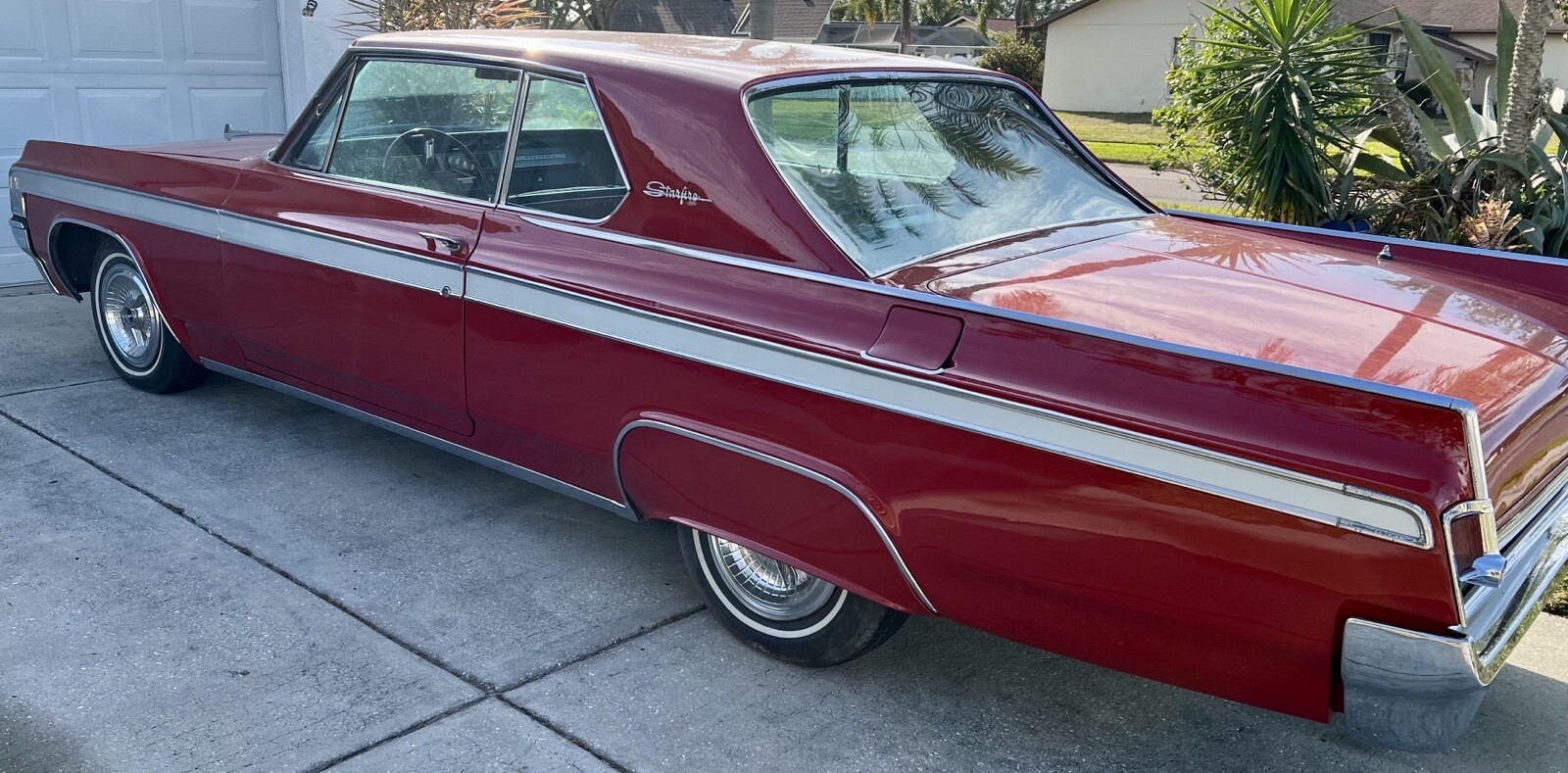 This 1963 Oldsmobile Starfire is a restored vehicle. Offered by the “Starfire Bros, saving Starfires since 1983”. It is presented in Holiday Red and was number 778 off of the line at the Fremont California plant. Clean Florida title.