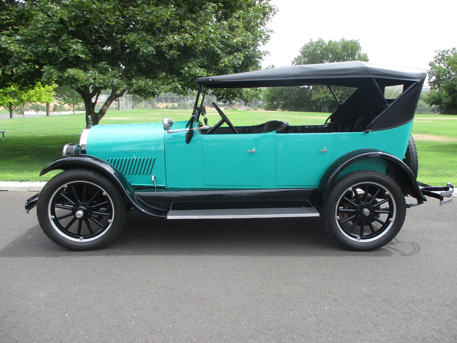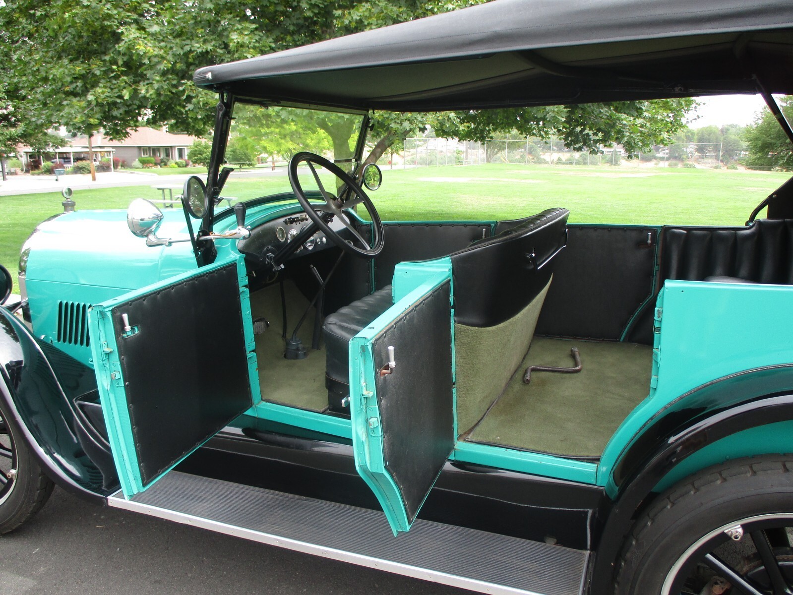 Up for sale is a 1924 Oldsmobile Sport Touring car model 30 convertible in very nice condition, originally bought on the 14th day of June 1924 in Butte Montana for the sum of $1152.00 from the Bute Motor Truck Co. Then Dr. Eral bought the car on Nov. 6th1970 from the original owners. It then took several years to finish the restoration on the little Oldsmobile. After it was restored, it hasn't been driven much mostly stored in the collection. It runs very well and drives as it should. The family doesn't know much about the restoration, but the doctor had a nice collection of good running cars. Now the family has decided to sell the Oldsmobile as they don't drive it much. Allways in dry storage and well taken care of. The body looks very nice in the exterior color of green teal with Black trim and fenders, and the body is Straight with no signs of rust ever. (It was a dry Montana Car) Paint is good quality, only showing a few very small imperfections. The bottom side of the car also looks clean and in very good condition. The interior was done in black faux leather with black dash and nice original instruments. The top is also very well done and in nice condition. The engine history is some rebuilding and recent carburetor work. (engine sounds very good) Adds are electric starter and electric fuel pump but the original hand crank dose come with the car. Also, the original sells paperwork from 1924 do come with the car and other papers also. I'm listing this beautiful little Oldsmobile for the family, and I will take all questions to them. Buyer is responsible for shipping and all shipping costs. We will help with loading on our end and in anyway we can. For your questions, please call Bill 208-750-0000.