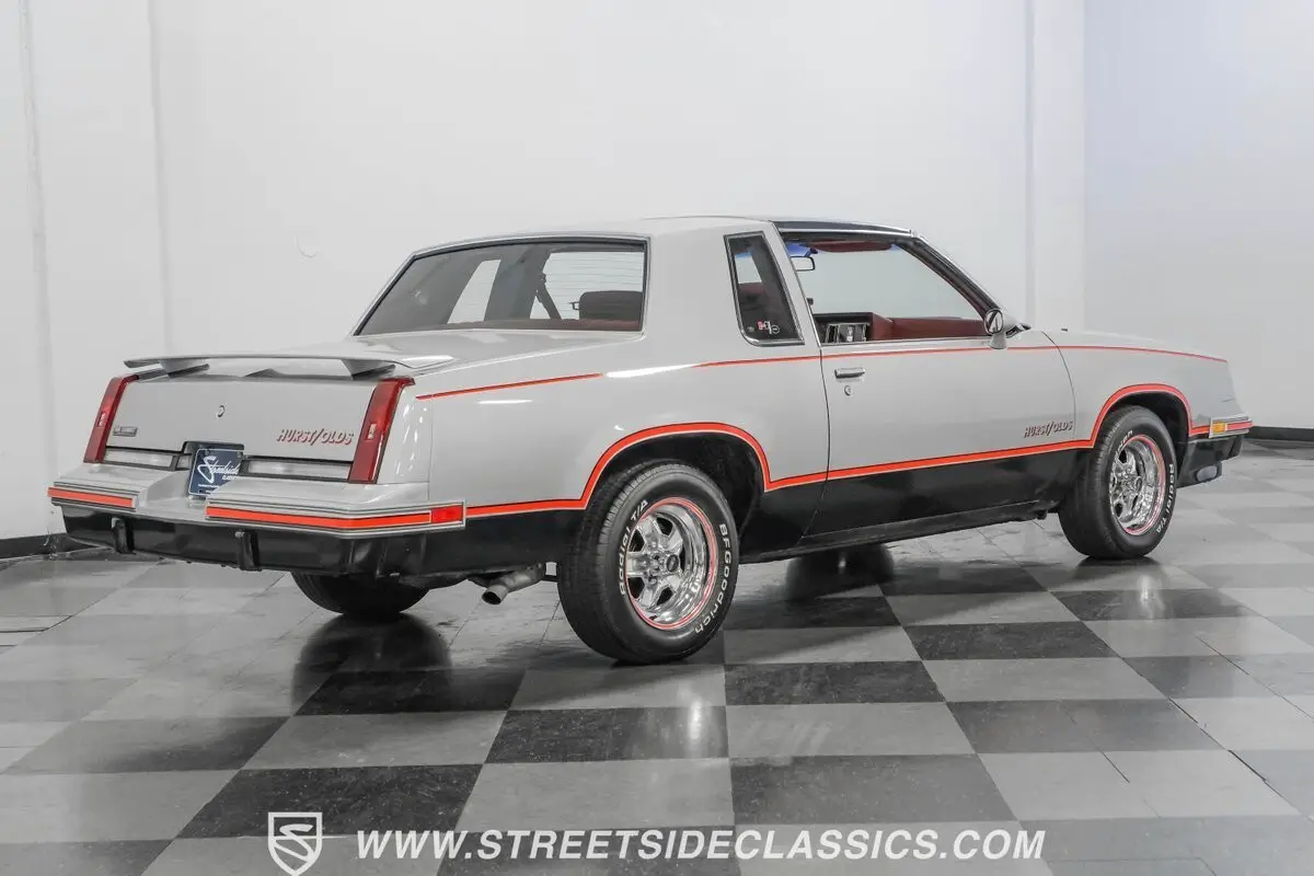Just a year before this 1984 Oldsmobile Cutlass 442 Hurst/Olds rolled out, its manufacturer had intended their commemorative edition marking the 15th anniversary of their collaboration with the aftermarket parts specialist to be a "one and done" proposition. They misjudged just how hungry the American car buying public was for a bona fide, rear wheel drive, V8 powered modern muscle car - understandable since Detroit was moving toward more conservative front wheel drive cars at the time. That original offering flew out of the showrooms, so the special edition Olds was brought back by popular demand. This fine 41,872-mile specimen is one of only 3,500 1984 Hurst/Olds cars produced, and of those, only 1,500 were ordered with T-tops. The two-toned, silver and black lower paint job, subtly scooped hood and rear spoiler combine to serve notice that this is no garden variety Cutlass. It's a sharp color scheme and, with its optional T-top roof, a pair of opera windows in back and an array of red decals, this 442 radiates plenty of mid-'80s cool - it's easy to see why these special edition muscle cars flew out of showrooms pretty quickly back in their day. This '84 still acquits itself well - it's got a nice shine, the chrome trim around both the front and rear windshields is clean and the commemorative, special edition decals still really pop. It retains a very well-kept appearance after more than 35 years of service. The Hurst/Olds graphic on the trunk lid is yet another indication that this Olds is special.