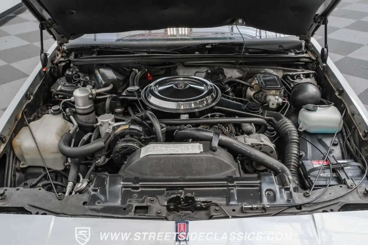 Beneath the hood, a 5.0-liter V8 sits in the well-maintained engine compartment, surrounded by clean components. Equipped with a 4-barrel carb, it starts right up and pulls with enthusiasm as it pairs with a TH200-R4 4-speed overdrive transmission that's so well-regarded, it's often used on highly modified, aftermarket drivetrains. This is also an easy and comfortable car to drive - power brakes at all four corners provide the stopping power you'll need, and the power steering is impressively responsive. This eye-catching, special edition Oldsmobile rides on a set of 15" special edition Hurst Olds wheels wrapped with BF Goodrich T/A radials that still have plenty of tread remaining. Below, the undercarriage is solid and ready for plenty more future miles.