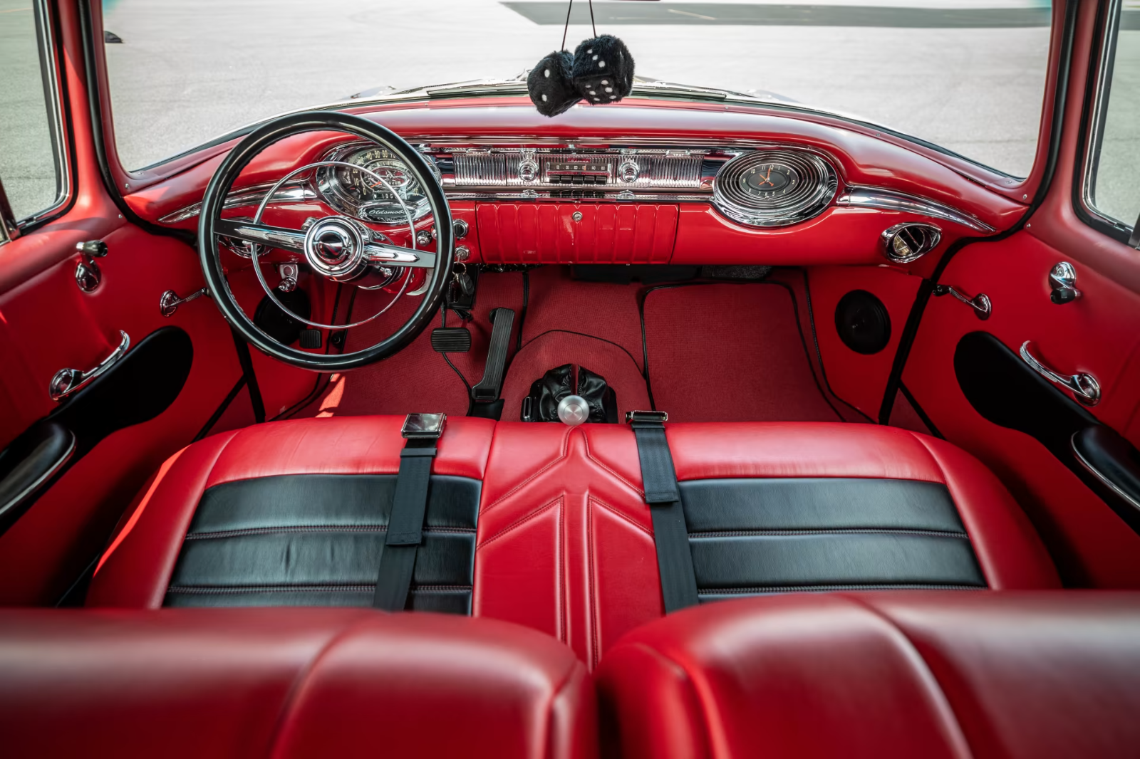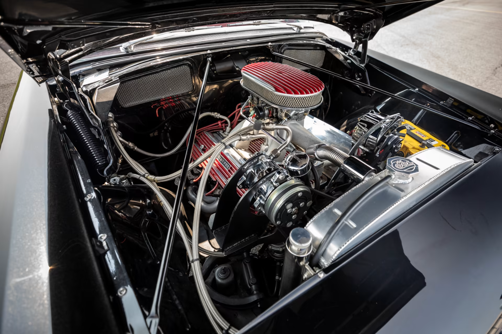 Features, Vintage Air Conditioning, Electric Power/Tilt Steering, Power Brakes/Front disks, Power Windows, Power Door Locks, Converted Gauge Cluster, steering wheel, Converted AM/FM radio, Custom Black Pearl paint, Custom Red & Black interior, Custom Trunk, Rebuilt Motor with Ross performance products, Dual exhaust/headers, New wiring harness, New gas tank, New mirrors with LED indicators, amazing chrome throughout, electric wipers, Lokar floor Shifter, Coilover Shocks, Red Line tires, Keystone Mag Wheels and more!!!