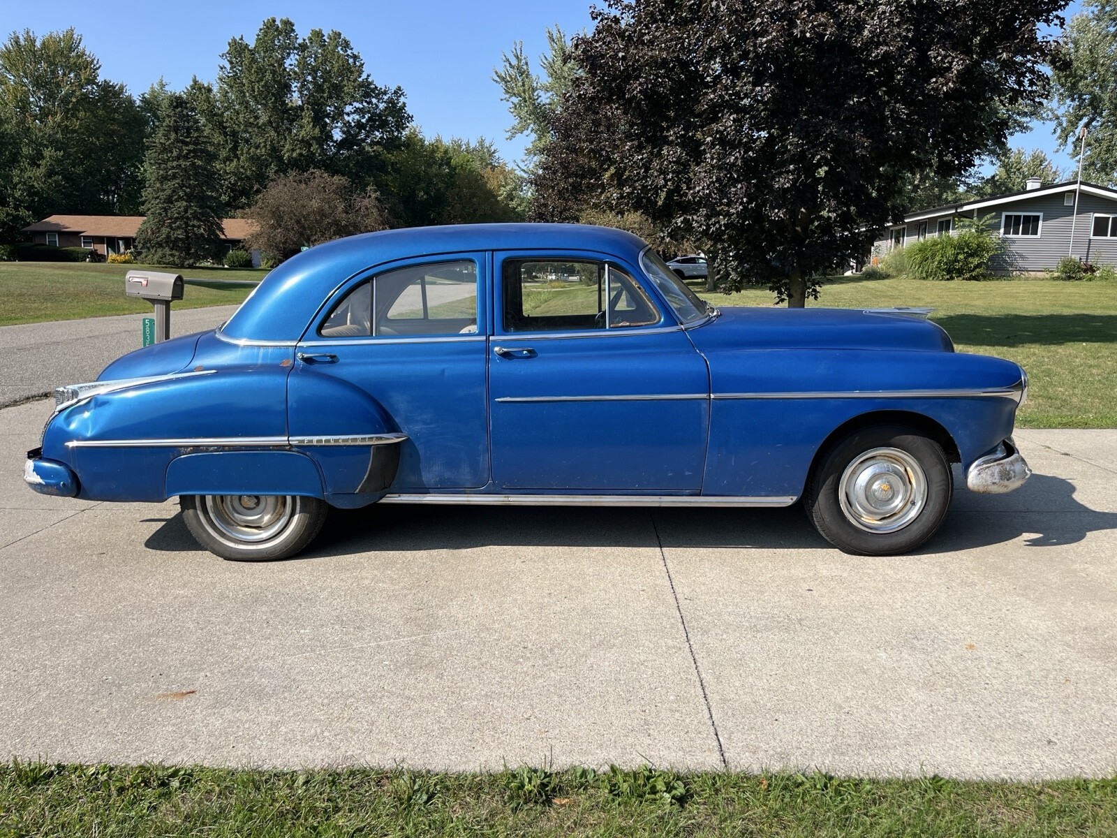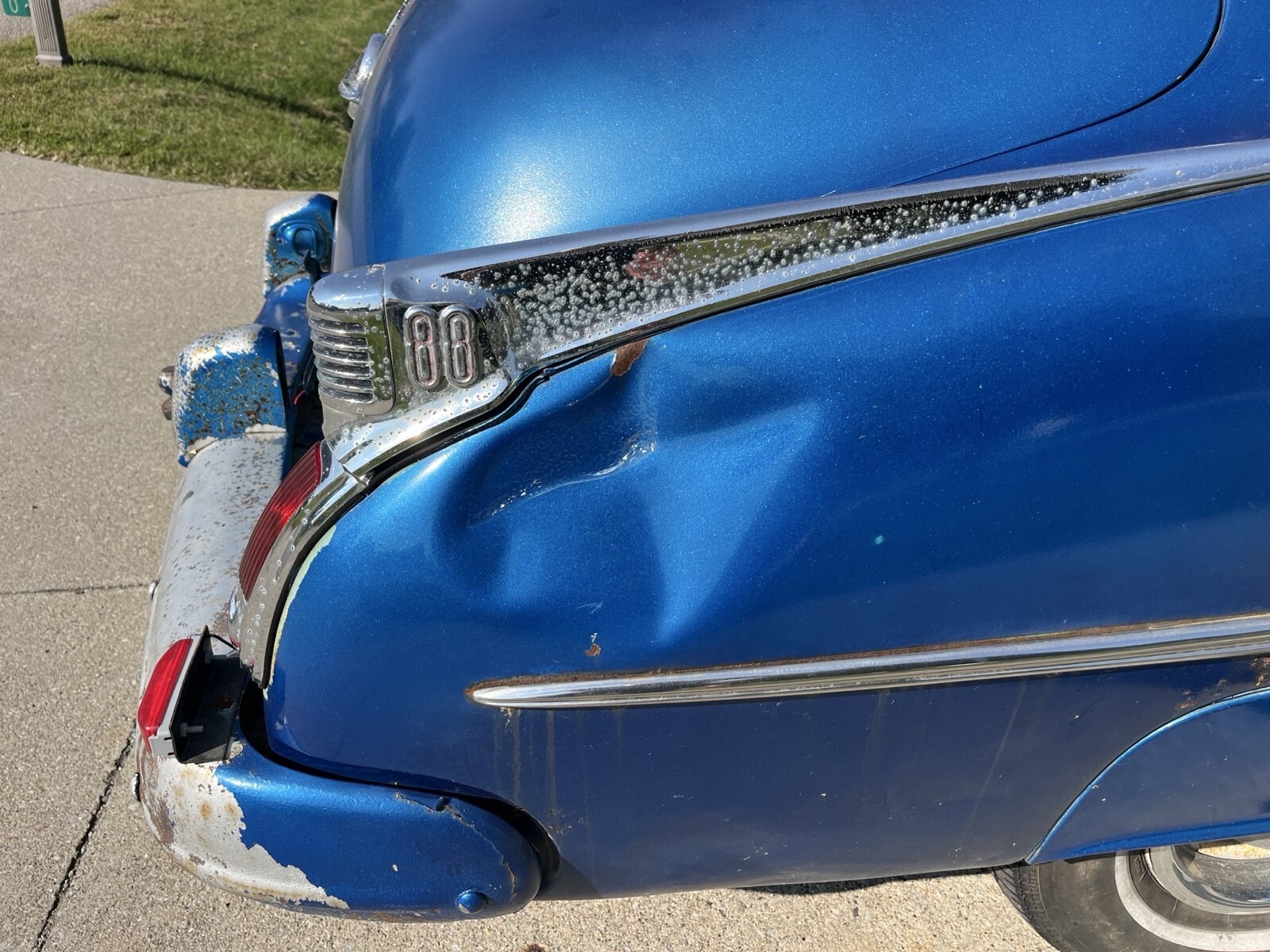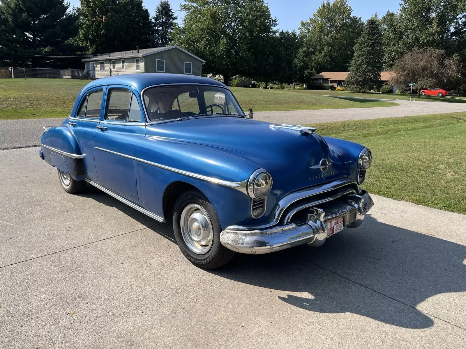 This is a 1950 Oldsmobile 88 rocket. It has the rocket 5.0 liter v8 and the futuramic automatic transmission. Car runs and drives and shifts well. 75,000 miles but the odometer does not work as it was rewired for 12v battery.