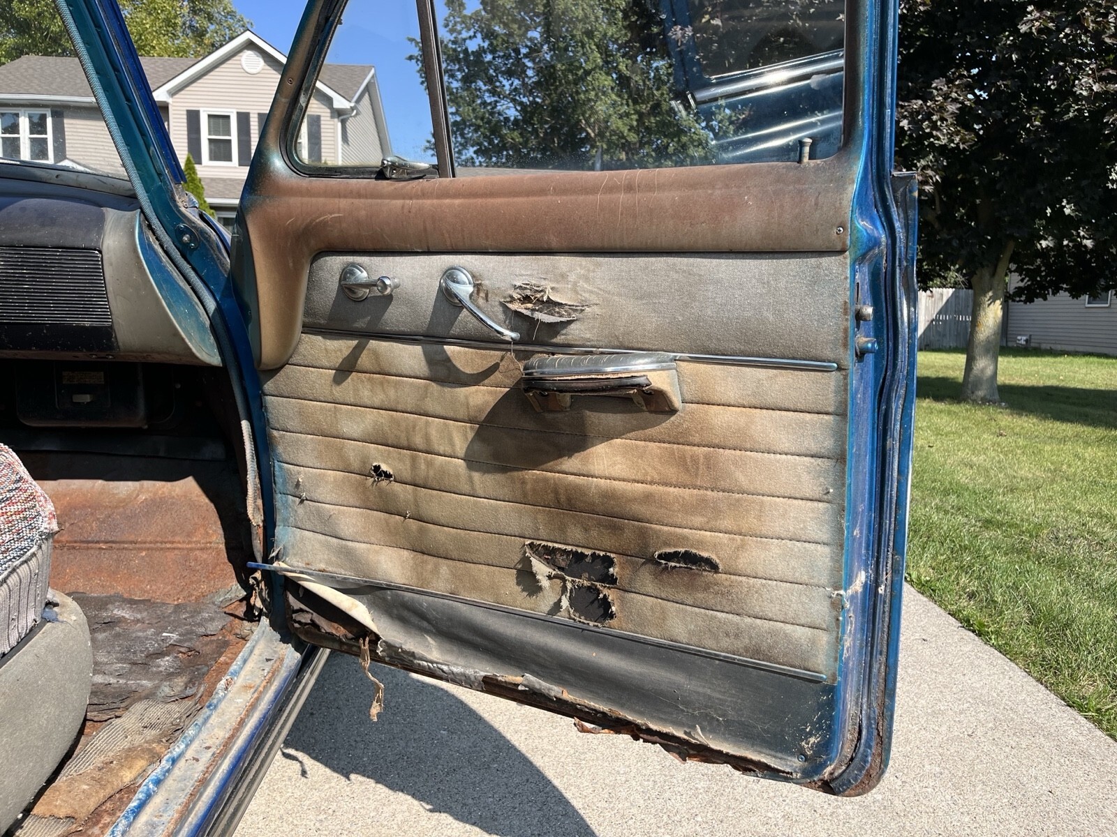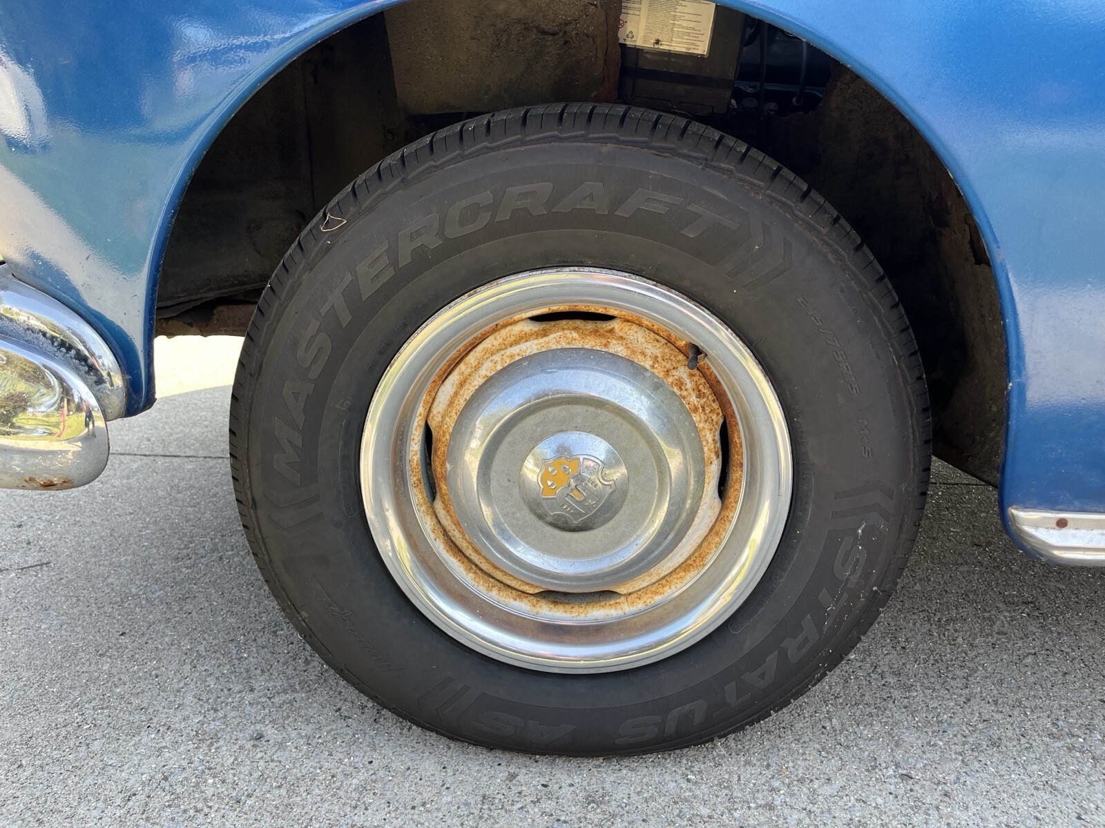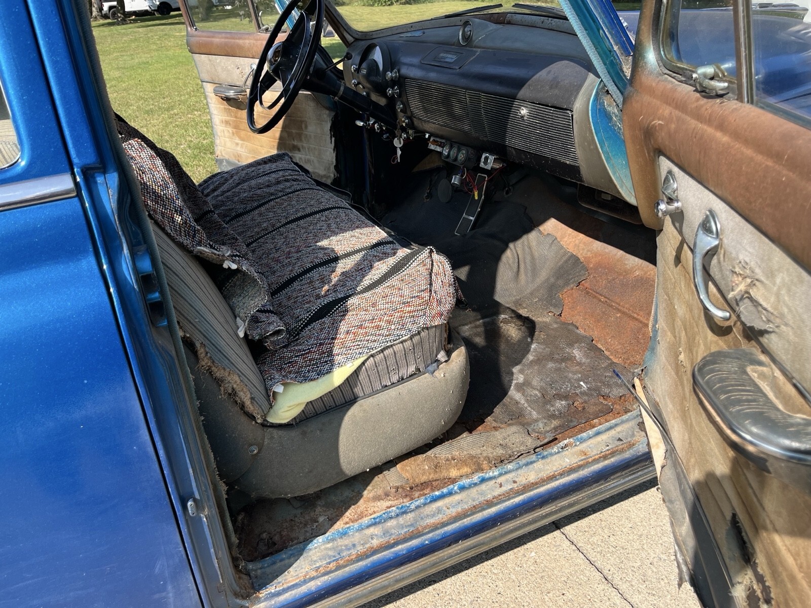 Engine and transmission in working condition. Oil leaks a little from the oil pan gasket. Oil dipstick tube needs reattached to motor. Frame in good condition. Floor has some holes(see pictures).