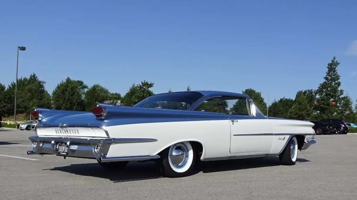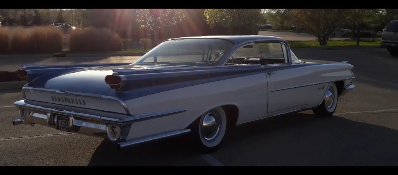 Oldervideo, on YouTube, "1959 Oldsmobile Olds Super 88 Holiday Coupe White Blue Engine Sound My Car Story with Lou CostabileLou Costabile
