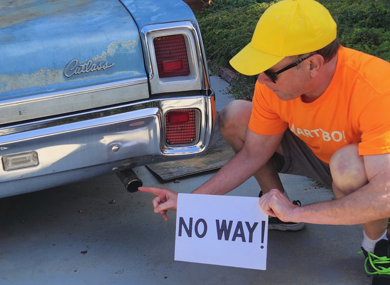 Onward! The trans is now a killer THM350 with the “right” torque converter and an aftermarket shift kit. It shifts like a champ, now. That was over $2,500 installed. The wheezy, whiny 2 speed is long gone. Good riddance! Next up, I installed Thornton Olds small block hi-po exhaust manifolds and had Gardner Exhaust in Red Hook, New York sell me 442 mufflers, 442 tail pipes, and 442 exhaust tips, along with custom made 1-of-a-kind exhaust pipes to fit the Thornton manifolds. BOO-YAH! Holy 100 horsepower gain, Batman! The manifolds were like $400, the exhaust system was over $1,200 and the installation at Midas at $165 per hour came out to over $2,600. I know, holy crap, but, you only live once.