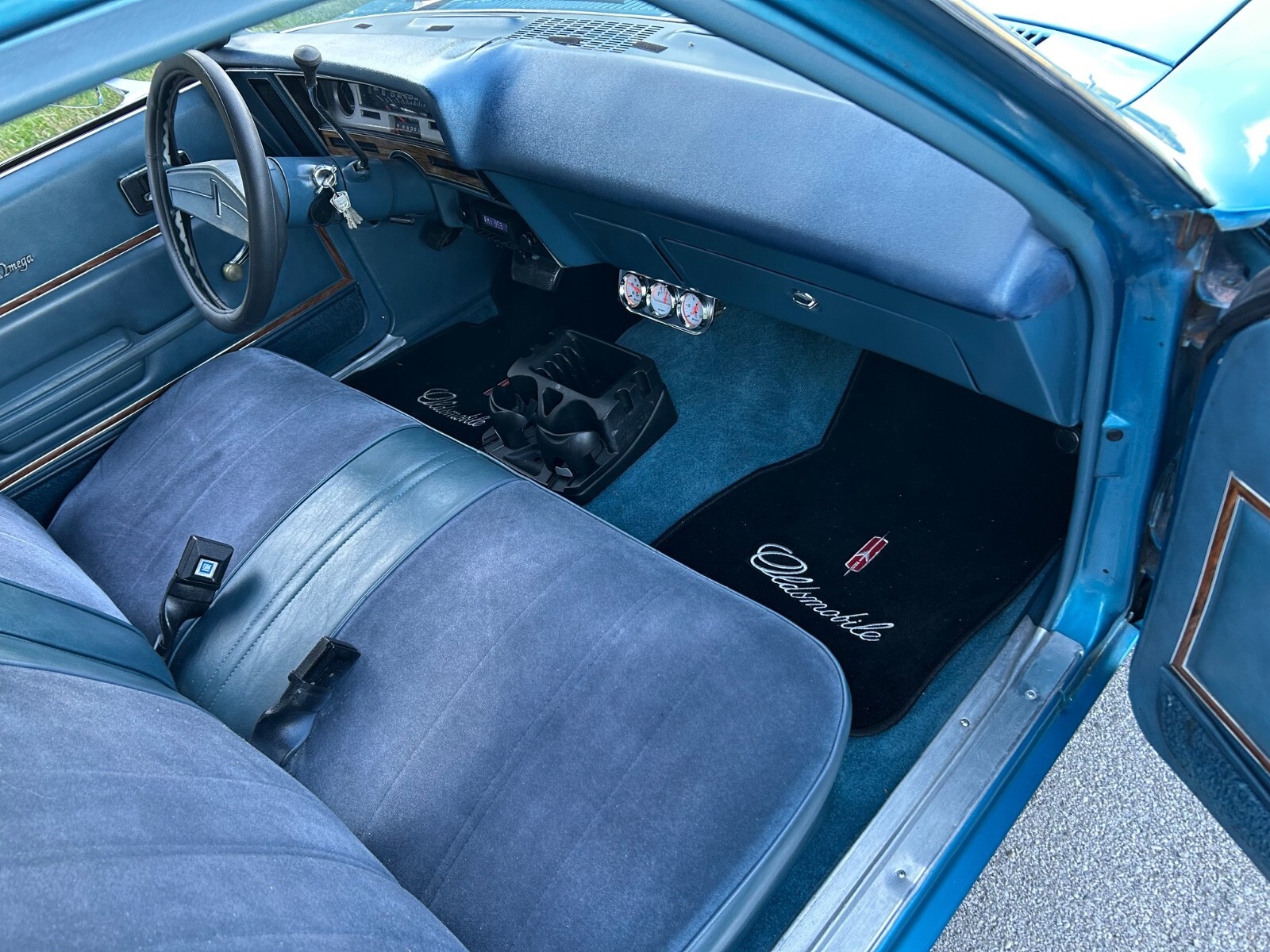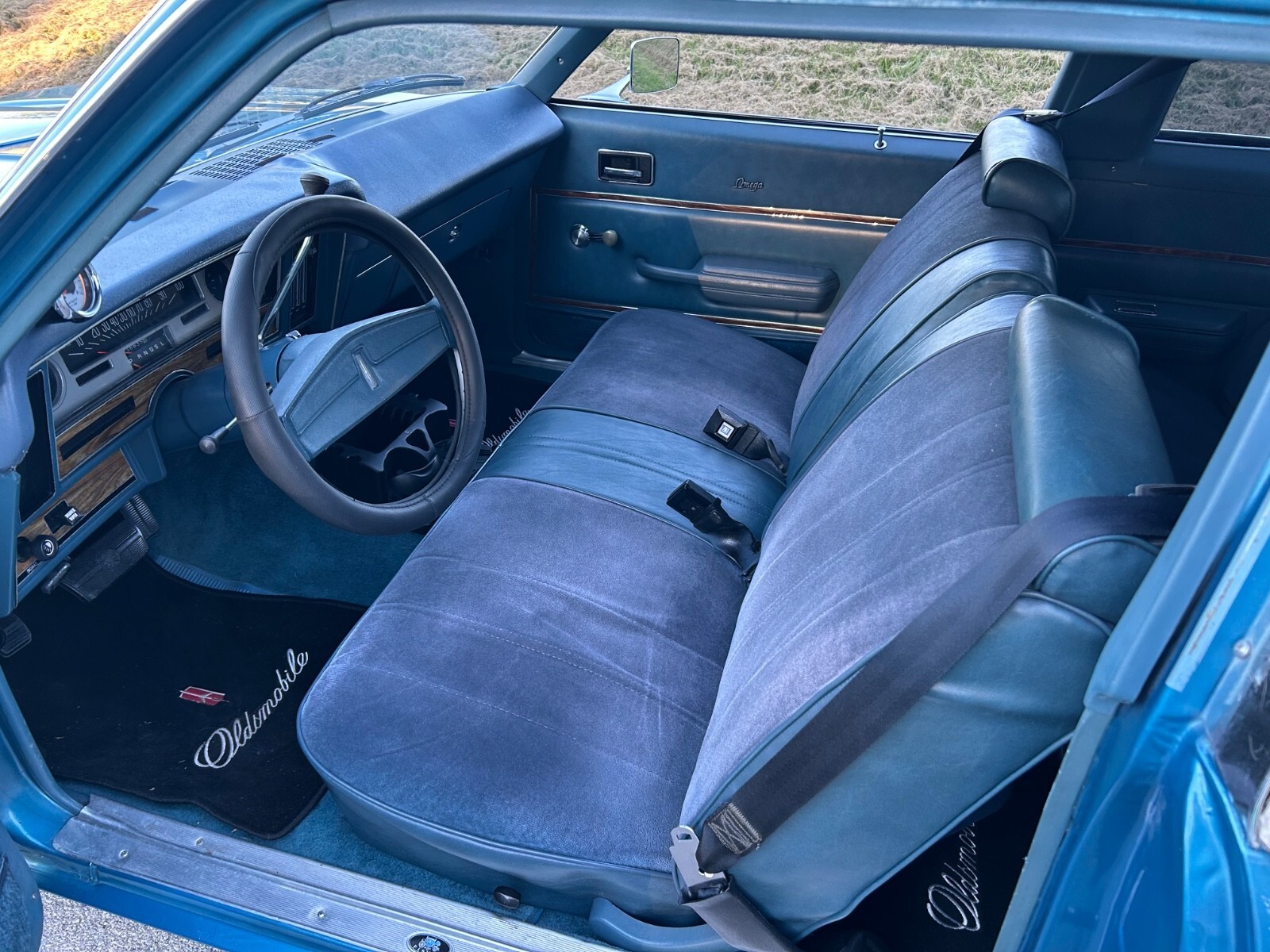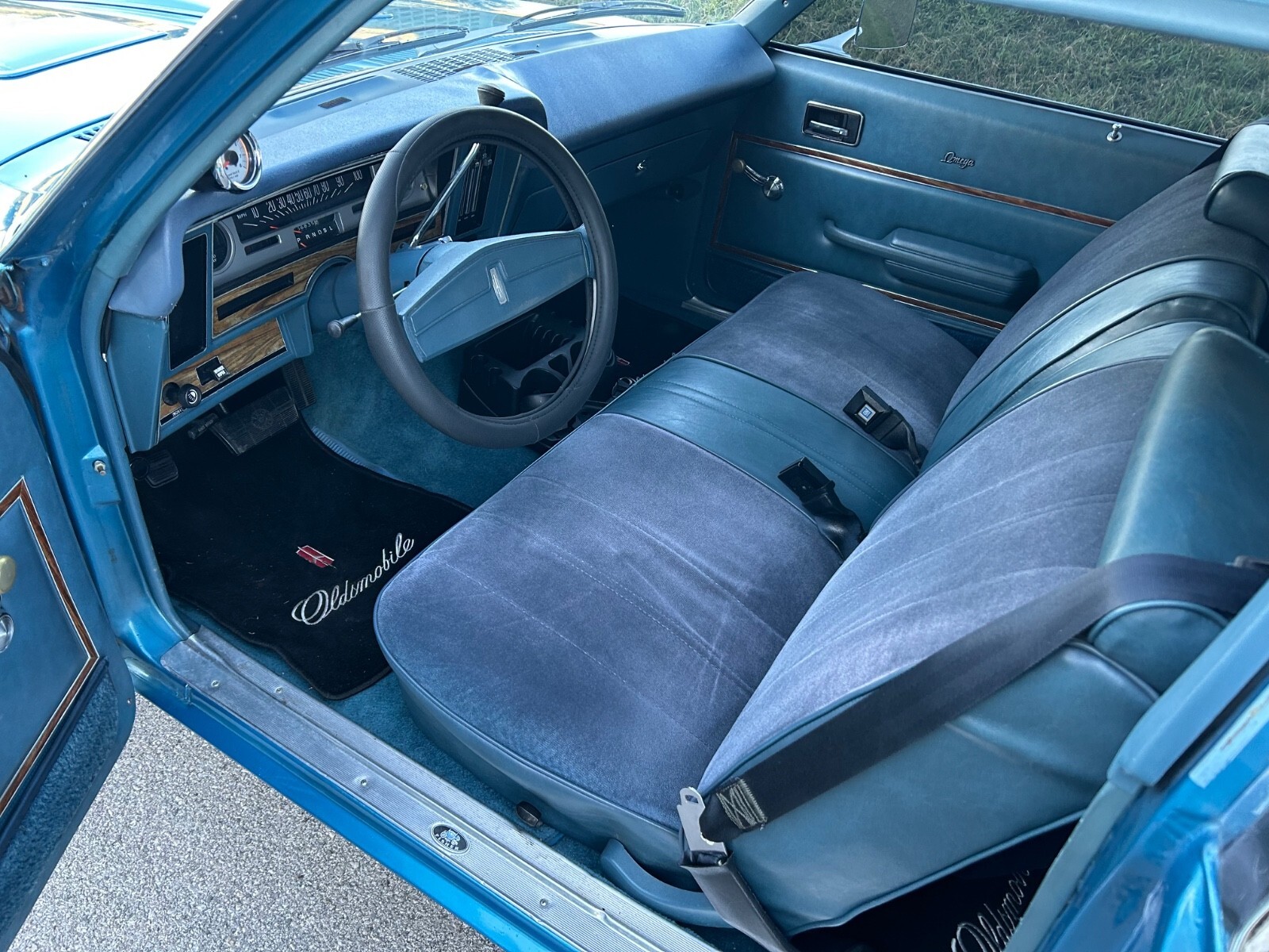 1975 OLDSMOBILE OMEGA ABSOLUTEY GORGEOUS LIKE NEW CONDITION INSIDE AND OUT YOU WILL NOT FIND A NICER ONE ANYWHERE LOOKS LIKE A NEW CAR THIS IS ONE OUTSTANDING CAR VERY METICULOUS OWNER HAD THIS CAR AND IT IS A BEAUTY ALWAYS GARAGED AND ALWAYS COVERED (CAR COVER INCLUDED) never sat outside 56,835 ACTUAL MILES 350 ENGINE THE ENGINE SOUNDS SO GOOD THIS CAR HAS A GREAT SOUND TO IT A DEEP SOUND NOT TO QUIET AND NOT TO LOUD IT REALLY SOUNDS GREAT 4 BOLT HEADERS AND DUAL EXHAUST EDELBROCK CARB EDELBROCK INTAKE LANDAU TOP THIS IS A VERY RARE CAR BEAUTIFUL COLOR COMBINATION LIGHT BLUE WITH MED BLUE CLOTH INTERIOR AND A WHITE LANDAU TOP AND MATCHING BLUE RALLEY WHEELS ABSOLUTELY BEAUTIFUL THIS CAR HAS 100 % EYE APPEAL AND I HAVE NEVER RECEIVED THE COMPLIMENTS LIKE I HAVE ON THIS CAR IT IS A REAL SHOW STOPPER THIS CAR IS LOADED WITH SO MANY EXTRAS TINTED WINDOWS WHITE LETTERED TIRES WITH SPINNER CENTER CAPS, I took pics at every angle of the car to show you just how nice this car really is (please view all pics) the body is straight as an arrow when you look down the sides it looks fantastic the paint has a super nice glossy shine outstanding appearance The interior is very nice and very clean even the carpets and headliner are in great condition all the door panels are very nice all the trim is very nice all the door jams are very nice and very smooth the engine compartment is just amazing looks outstanding it is car show ready clean as clean can be the underside is just amazing please view all pics looks amazing the landau top is in great condition and very clean all the chrome is in excellent condition the doors open and close so easily everything works properly even the horn works overall this car is one that will be very hard to replace it really is a true beauty that has been pampered the car drives like a dream IT IS A PURE PLEASURE TO DRIVE I WOULD NOT HESITATE TO DRIVE THIS CAR ANYWHERE IT IS READY TO GO . This car is available to view and inspect at anytime before purchase even bring your mechanic like all classic cars this car is sold as is no warranty I have a great buy it now price on this car and best of all it will be delivered right to your door free of charge YES ! FREE DELIVERY ! If you want enclosed transport it is additional $450.00 usually takes anywhere from 3-9 days for delivery i will keep you informed through out the whole transaction until the car is delivered in your driveway there is a $500.00 non refundable deposit at time of purchase no exceptions If you have been looking for a pure outstanding classic car HERE IT IS It will be hard to find anything else like this for the price .