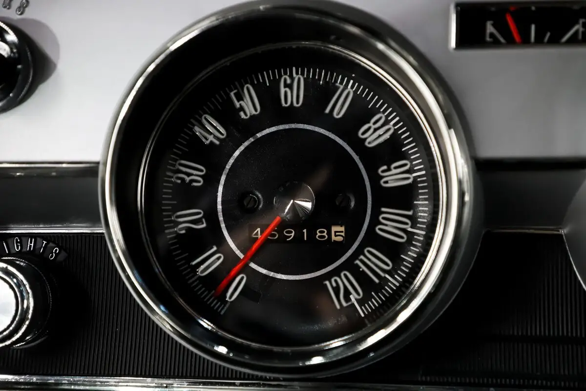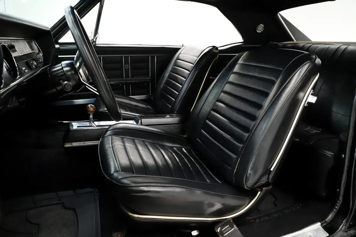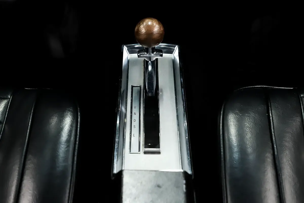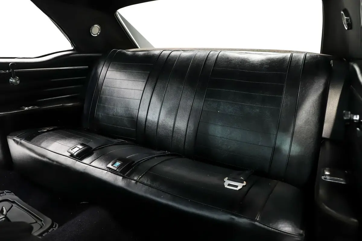 EXTERIOR: Striking combination of slick black paint with no vinyl top, red pinstripe, redline tires and the chrome SS-1 wheels! Looking down the sides of the car they're both laser straight. The body panel gaps are flush and square. No signs of any bubbling, cracking or issues. I am also noticing on how well the bumpers fit the body, where they line up against the quarter panels and fenders is about as good as they get. In back the bumper, tail panel, emblems