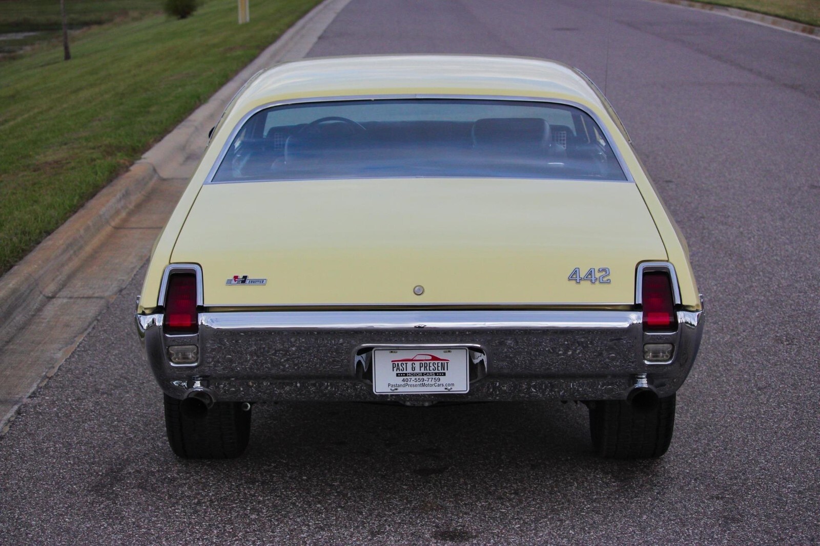 1969 Oldsmobile 442, Factory 4-Speed, Real 442, Believed to be all Matching Numbers, Fully Restored, Original Sheet Metal, Museum Display Car This 1969 Oldsmobile 442 is an authentic, real-deal 442 that delivers the full package of pedigree, performance, and presentation. Believed to retain its matching-numbers drivetrain and equipped from the factory with the desirable 4-speed manual and console, this example captures everything enthusiasts look for in a proper 442. Restored top to bottom approximately seven years ago, and driven only around 3,000 miles since, the car shows beautifully and performs exactly as a well-sorted Oldsmobile muscle car should. Even more impressive, it retains its original sheet metal, floors, and trunk pan, underscoring the high-quality foundation behind the restoration. Finished in a striking Saffron Yellow paint over black bucket seats, the car offers an unmistakable, period-correct appearance that stands out in any collection. It comes equipped with a long list of factory features: • Factory 4-Speed Manual with Floor Console • Factory Power Steering • Factory Power Disc Brakes • Tach and Gauge Package • W27 Rear End • Deluxe Seat Belts • Deluxe Steering Wheel • AM/FM Radio • Dual Exhaust with Trumpet Tips • Dual Sport Mirrors • Factory Spare and Jack This 442 also spent two years on display at the renowned Floyd Garrett Muscle Car Museum in Pigeon Forge, Tennessee—a strong indicator of its authenticity, quality, and presentation. If you’re searching for a well-restored, factory-correct 1969 Oldsmobile 442 with investment-grade attributes and exceptional curb appeal, this Saffron Yellow beauty delivers on every front. Turn-key, museum-worthy, and ready to enjoy. While we do our best to provide the highest quality muscle cars with an honest and reliable description and realize the importance of transparency when selling vehicles. That being said, we have not built, modified, changed or personally owned this vehicle. Whether this vehicle is consigned or owned by Past & Present Motor Cars we do not know the vehicles complete history since new. We want to be clear and try to answer any questions our customers might have prior to purchasing. Additionally, we not only welcome but we encourage 3rd party independent inspections. Please inquire prior to purchase to make sure the advertised vehicle has not already been sold. We list our vehicles on multiple websites and a vehicle can sell at any time. If a customer chooses to purchase sight unseen (many of our customers choose this option) the customer accepts the vehicle AS IS and WHERE IS and understands we cannot address concerns after purchase. For this reason, it's important all concerns are addressed prior to purchase. We make every effort to present accurate and reliable information, but use of this information is voluntary, and should only be deemed reliable after an independent review of its accuracy, completeness, and timeliness. It is the sole responsibility of the customer to verify the existence of options, accessories and the vehicle condition before time of sale. Financing is Available with low rates and Vehicle Shipping is available from our Showroom to your Garage. A Classic Car Warranty is Available for Purchase from a 3rd Party. Please speak to our Sales Associate or Company Representative for more information. Our team is working and available anytime by Phone or Text for your convenience at 407-559-7759. Thank you for your interest!