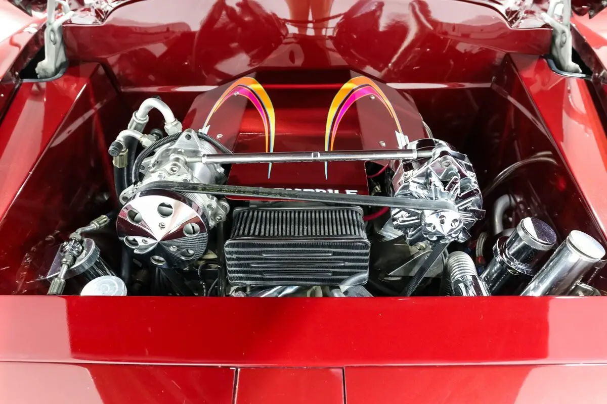 Drenched in deep maroon with custom pinstriping and a smoothed firewall, the body is sleek, shaved, and smoothed to perfection. Remote door poppers and a remote trunk release clean up the look while adding modern