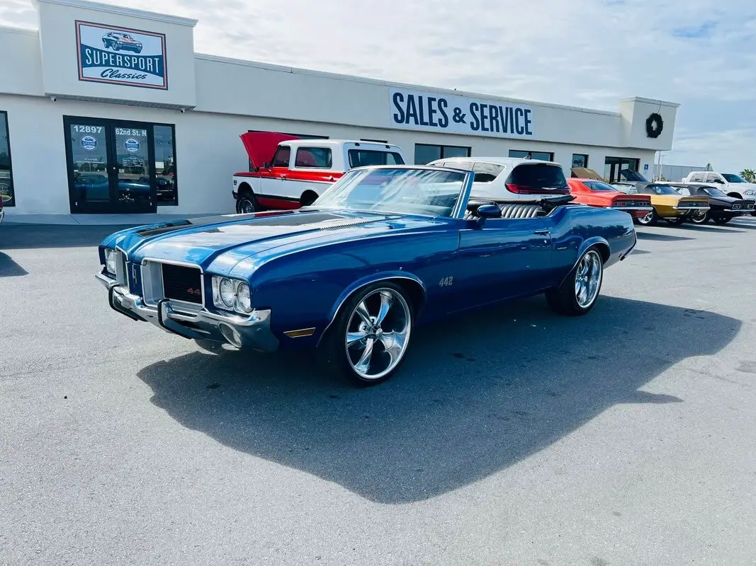 This Beautiful Convertible is the perfect Combination of Muscle Car and Classic Cruiser. It has a great sounding 350 Rocket V8 Engine and Cruises down the Road Effortlessly. This Convertible has looks to kill with the Classic Deep Blue Exterior over and all Black Interior Finished with a Black Convertible Top and Black Stripes. This Car is sure to create some great memories for its new owner!