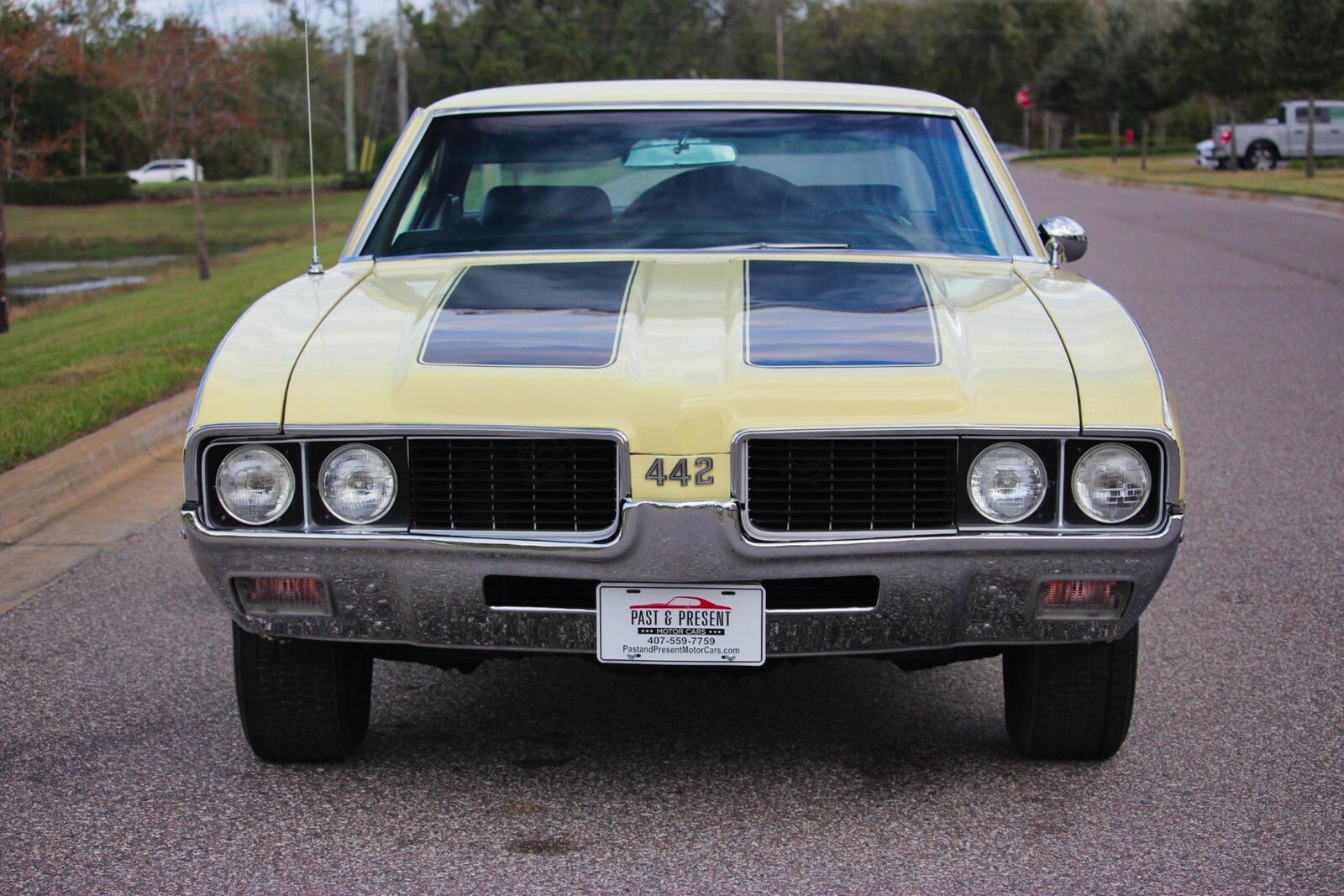 1969 Oldsmobile 442, Factory 4-Speed, Real 442, Believed to be Matching Numbers 400 V8 (350 HP), Fully Restored, Original Sheet Metal, Museum Display Car This 1969 Oldsmobile 442 is an authentic, real-deal 442 that delivers the full combination of pedigree, performance, and presentation enthusiast's demand. a believed-to-be matching numbers 400 cubic inch V8 rated at 350 horsepower and equipped from the factory with the highly desirable 4-speed manual transmission and console, this example represents Oldsmobile muscle at its peak. Restored from top to bottom approximately seven years ago and driven only about 3,000 miles since completion, the car remains exceptionally well-sorted and visually impressive. Equally important, it retains its original sheet metal, floors, and trunk pan, highlighting the solid foundation and careful approach taken during the restoration. Finished in striking Saffron Yellow over a black bucket seat interior, this 442 presents with strong visual impact while remaining period-correct throughout. The stance, detailing, and overall finish reflect a restoration done to a high standard without over-modernizing the car. 15 Oldsmobile Wheels with BF Goodrich Tires, 225-70-15 Front Tires and 275-60-15 Rear Tires. Factory and performance features include: * Factory 4-Speed Manual Transmission with Floor Console * Believed Matching Numbers 400 V8 Engine (350 Horsepower) * Factory Power Steering * Factory Power Disc Brakes * Tach and Gauge Package * W27 Rear End * Deluxe Seat Belts * Deluxe Steering Wheel * AM/FM Radio * Dual Exhaust with Trumpet Tips * Dual Sport Mirrors * Factory Spare and Jack This Oldsmobile also spent two years on display at the Floyd Garrett Muscle Car Museum in Pigeon Forge, Tennessee an endorsement of both its authenticity and overall presentation. For the buyer seeking a properly restored, factory-correct 1969 Oldsmobile 442 with strong documentation, desirable performance specifications, and investment-grade appeal, this Saffron Yellow example checks all the right boxes. Turn-key, museum-worthy, and ready to be enjoyed. While we do our best to provide the highest quality muscle cars with an honest and reliable description and realize the importance of transparency when selling vehicles. That being said, we have not built, modified, changed or personally owned this vehicle. Whether this vehicle is consigned or owned by Past & Present Motor Cars we do not know the vehicles complete history since new. We want to be clear and try to answer any questions our customers might have prior to purchasing. Additionally, we not only welcome but we encourage 3rd party independent inspections. Please inquire prior to purchase to make sure the advertised vehicle has not already been sold. We list our vehicles on multiple websites and a vehicle can sell at any time. If a customer chooses to purchase sight unseen (many of our customers choose this option) the customer accepts the vehicle AS IS and WHERE IS and understands we cannot address concerns after purchase. For this reason, it's important all concerns are addressed prior to purchase. We make every effort to present accurate and reliable information, but use of this information is voluntary, and should only be deemed reliable after an independent review of its accuracy, completeness, and timeliness. It is the sole responsibility of the customer to verify the existence of options, accessories and the vehicle condition before time of sale. Financing is Available with low rates and Vehicle Shipping is available from our Showroom to your Garage. A Classic Car Warranty is Available for Purchase from a 3rd Party. Please speak to our Sales Associate or Company Representative for more information. Our team is working and available anytime by Phone or Text for your convenience at 407-559-7759. Thank you for your interest!