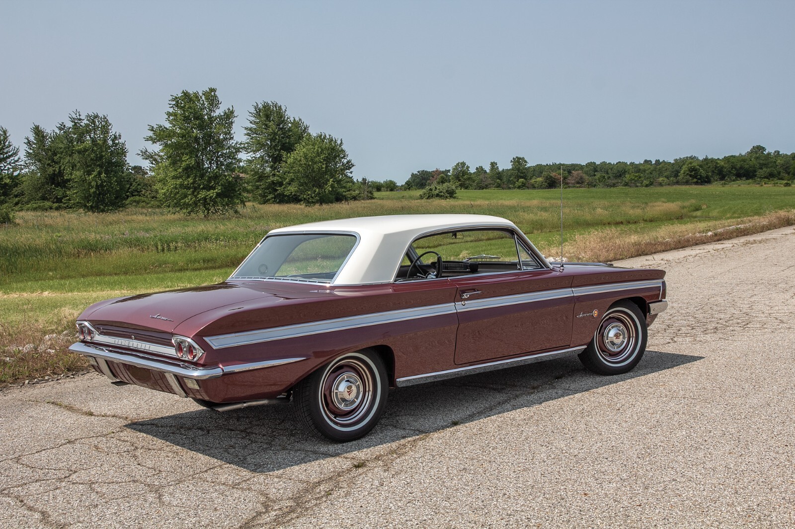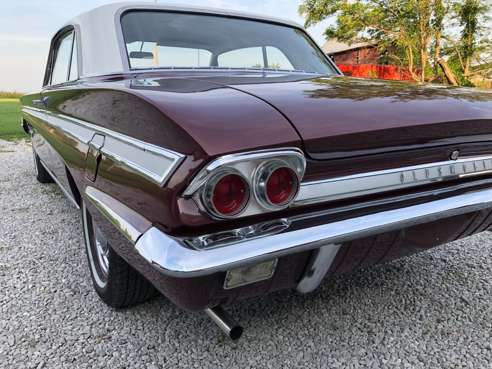 1962 Oldsmobile Jetfire.The Jetfire is the worlds first turbocharged production car.This is a factory installed 4 speed original car with 46,000 miles. This is a factory 4 speed car and there were only 203 4 speed cars made in 1962. Out of those 203 there are only 3 of the 4 speed cars known to exist today. Maybe more will surface in the future. The Jetfire was a 10.25 compression engine with 6.5 lbs of boost. Under full boost that calculated to nearly 15:1 compression. To keep things safe with pump gas Oldsmobile used a water methanol injection system, called Turbo Rocket Fluid, to prevent detonation under boost. This is a fully working system restored to original specifications. This car also has the really rare 15 inch wheel option with trim rings.