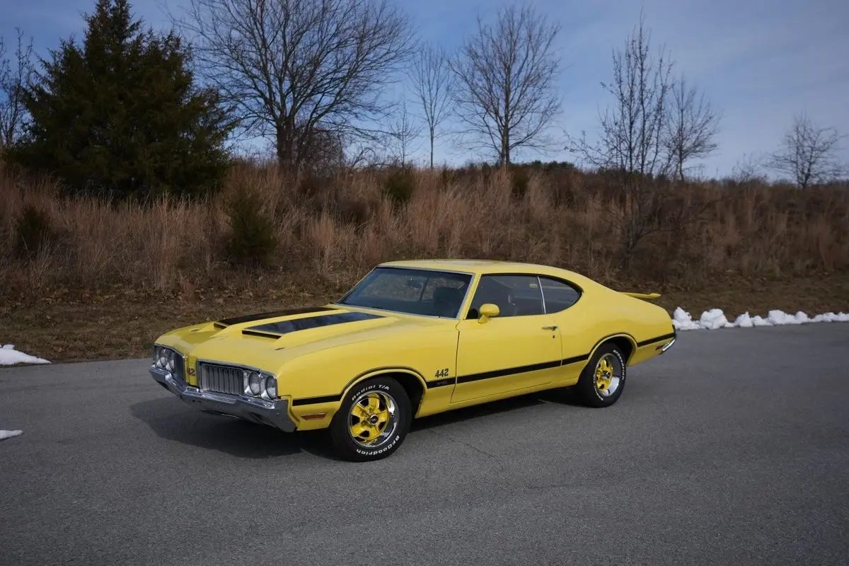 Route 61 Classics proudly presents this 1970 Oldsmobile Holiday Coupe - a bold, driver-focused muscle-era classic that delivers authentic Olds character and 4-speed excitement. Finished in a high-impact yellow with matching yellow-coded wheels, spoiler, and air-induction hood, it has the 442-inspired presence collectors love without pretending to be numbers-matching.