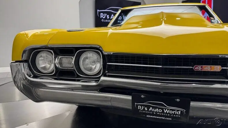 1967 Oldsmobile 442 for Sale.True 338 Code 442.One owner car until 2018.455 V8 engine stroked to 468 Cu InEdelbrock aluminum heads and intakeQuick Fuel 4-barrel carburetorMSD HEI electronic ignitionCeramic coated headersFlowmaster dual exhaust with X-PipeBeCool aluminum radiator with dual electric fansMarch Serpentine PulleysAutogear Muncie 4-Speed manual transmission with blowproof bellhousingSPC adjustable upper control armsHeidts lower control armsHotchkis front and rear sway barsAGR quick ratio steering boxCurrie 9 rear end with lockerWilwood front disc brakes with Hydroboost,15" Cragar SS Wheels with spinnersMickey Thompson radial tiresRefinished in Corvette Millennium YellowHalogen headlightsTinted glassColor keyed sport mirrorsCowl hood with pinsBlack Corbeau bucket seat interiorRear seat deleteRoll barCenter consoleCold air conditioningAutometer GaugesTilt steering columnJVC AM/FM/CD radio