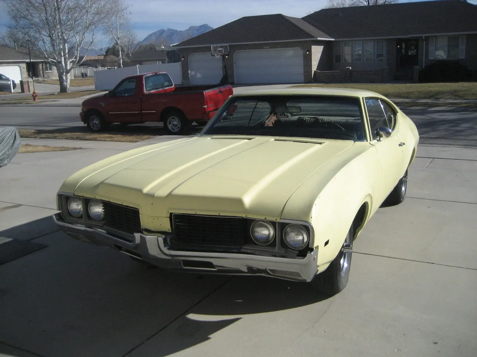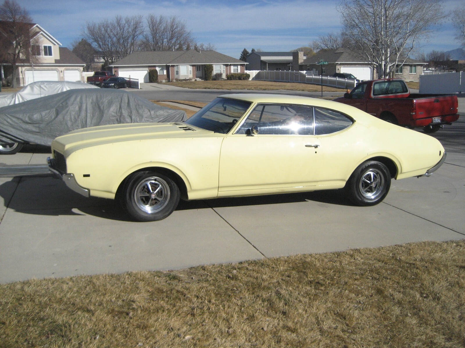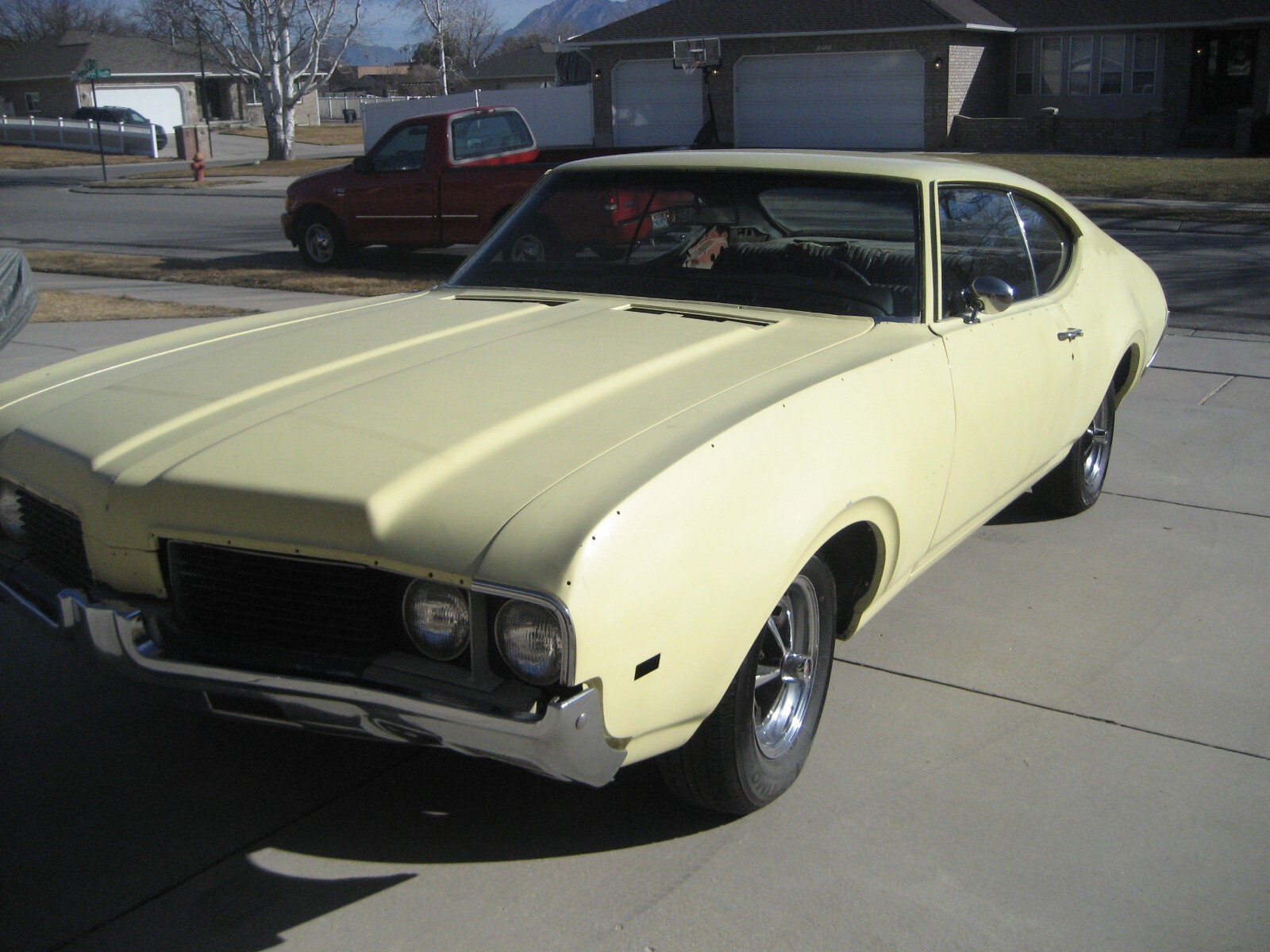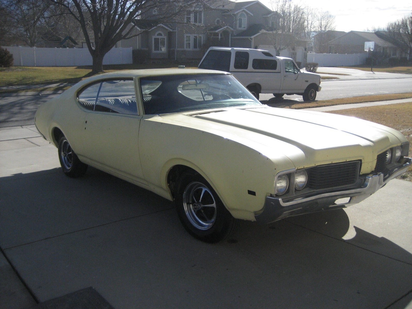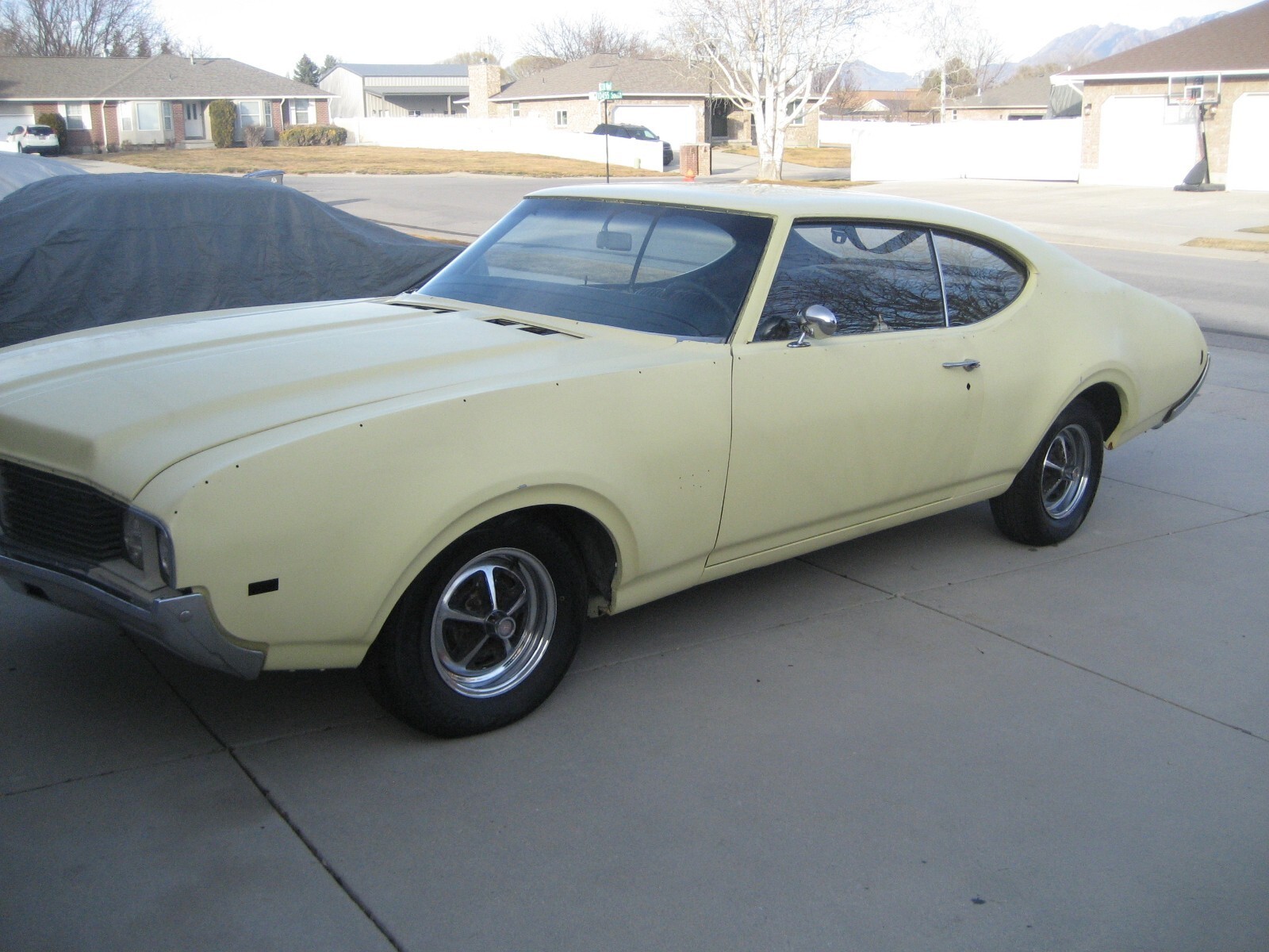 1969 Oldsmobile 442 2 Dr. Ht. 400 CI Auto believed all #s matching. Origionaly Yellow w/ Black vinyl top and bench seat interior. Recent Garage find. Was purchased new at Ken Garff Oldsmobile in SLC, UT in July of 1969. With original owner until 3 years ago. Had trim removed and repainted the original color in about 1985 and never reassembled. Have changed motor oil & filter, added fresh gas & battery. Brakes & trans only need fluids topped off and are working. Runs and drive but needs more work to be road worthy. Have inventoried all trim and only seems to be missing front side marker lights & A/C condenser. Floor pans all solid. Needs Seat covers & headliner. Door panels & carpets are good original. Showing less than 92,000 miles. Good Utah Title. No reserve. I will gladly answer any questions. More pictures available upon request. Thanks for looking..