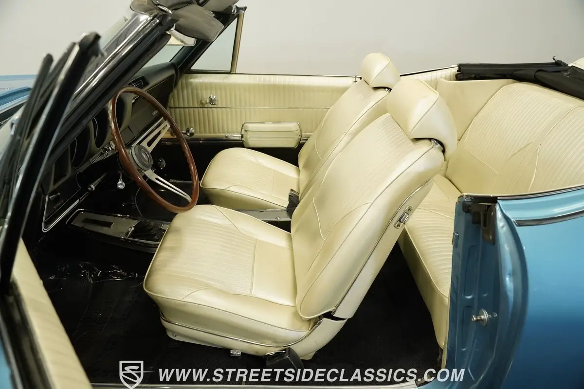 Under the hood, we find a numbers-matching L78 400 cubic-inch overhead valve V-8 engine. Topped with a single four-barrel carburetor mounted on the stock intake manifold, this big V8 was rated at 350 horsepower and 440 pound-feet of torque when it rolled off the assembly line. Stock-style exhaust manifolds give way to a set of FlowMaster mufflers, giving this old-school muscle car a growl commensurate with its power. Power is routed through a numbers-matching Muncie M20 four-speed automatic transmission, before heading out to the 12-bolt rear, which transfers those ponies to the pavement via a set of polished 14-inch wheels shod in trick Firestone redline tires.