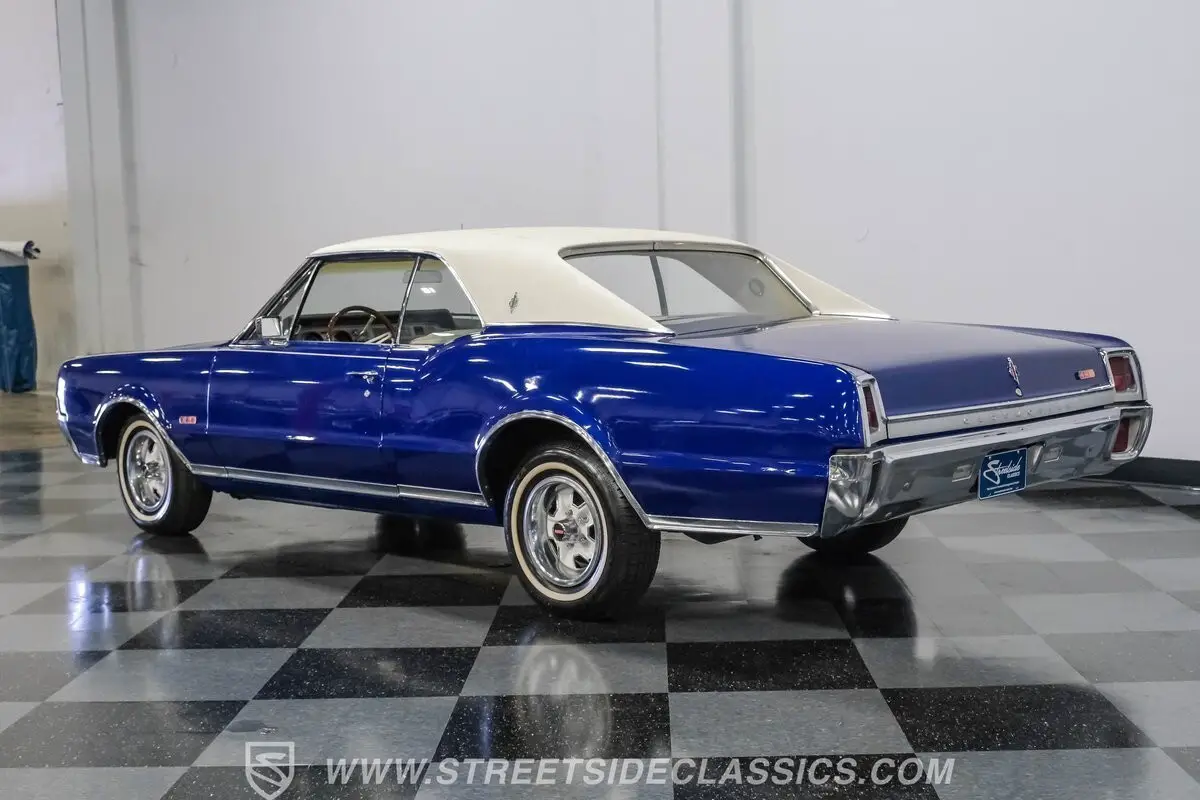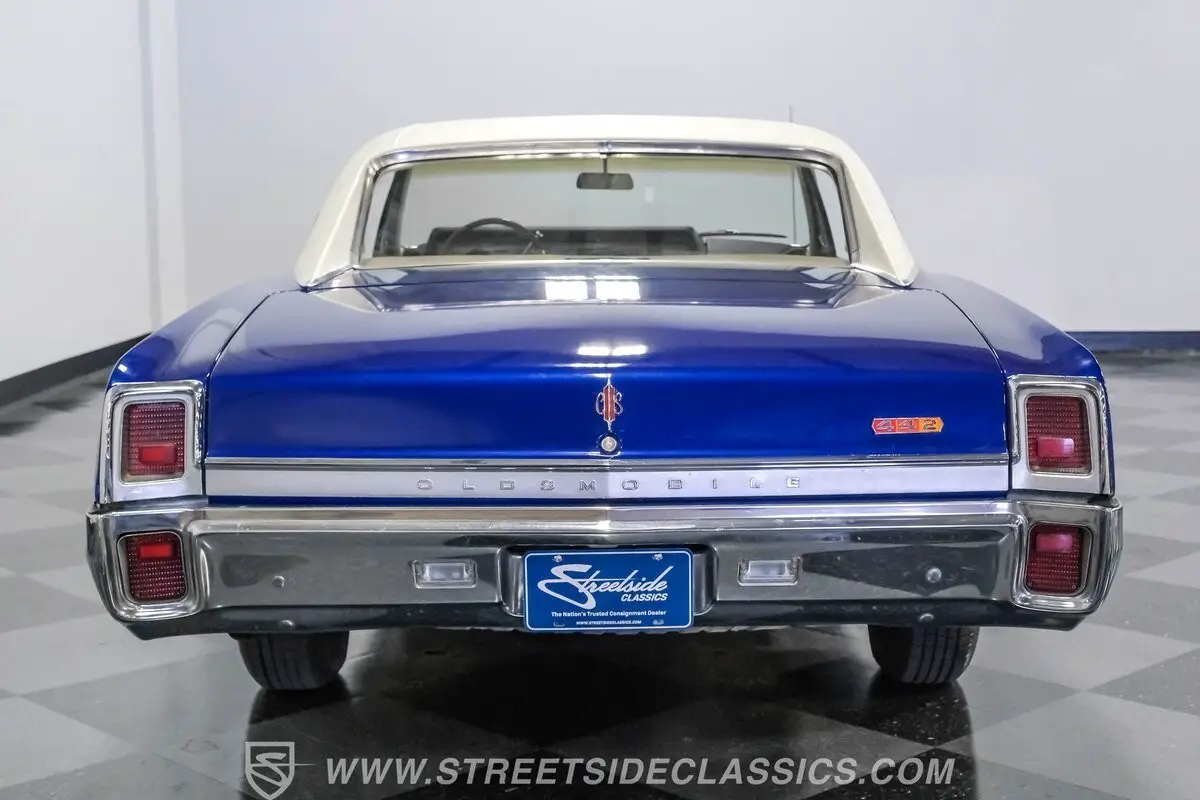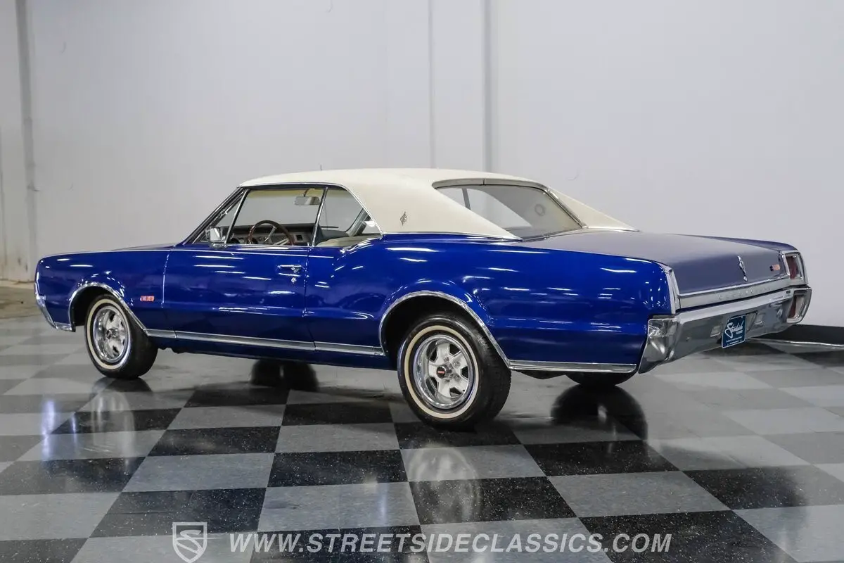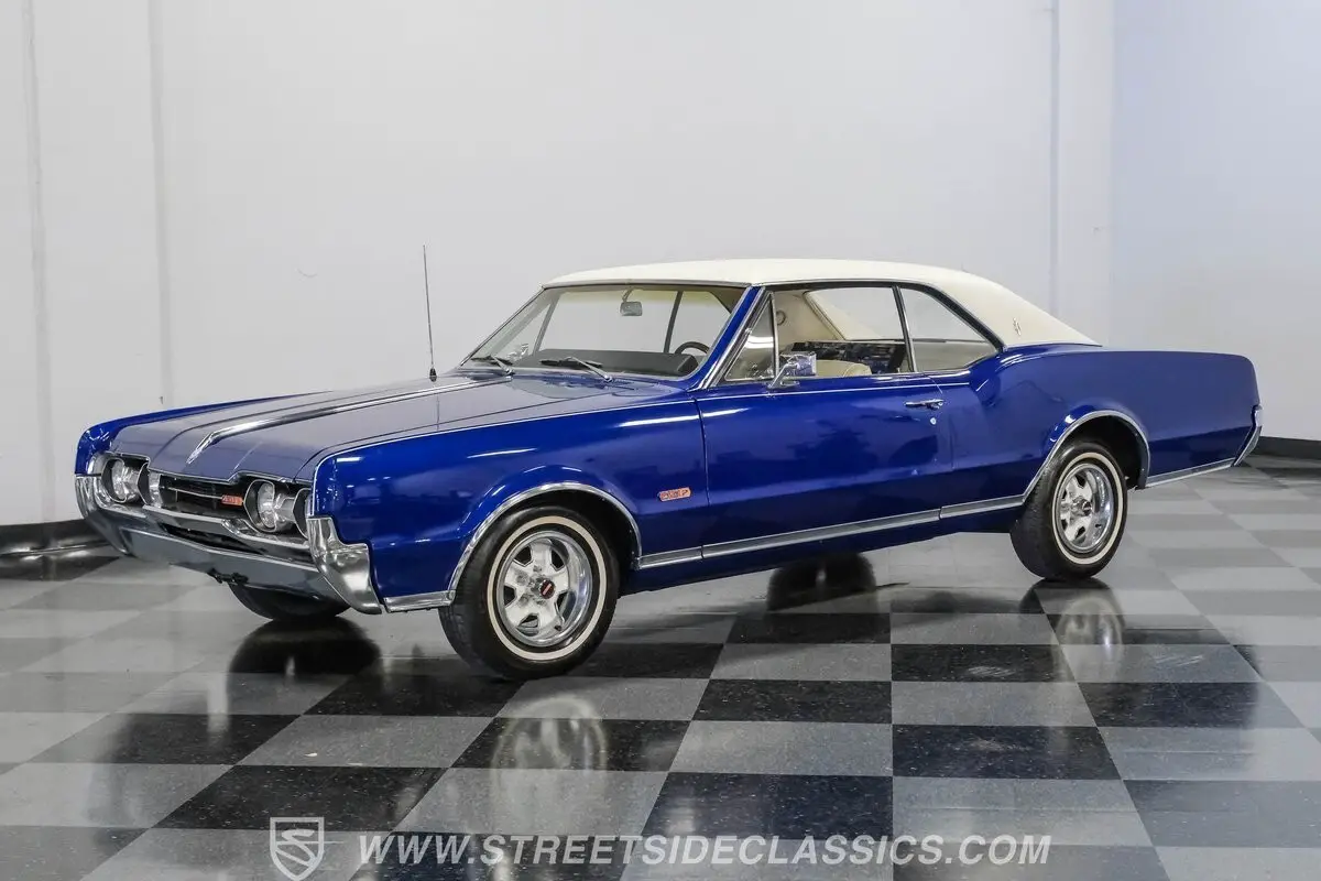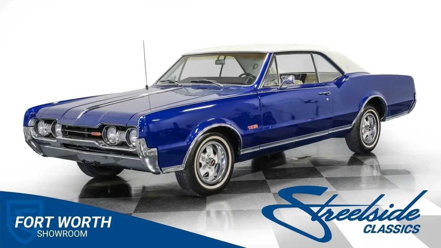 Step back in time and experience the thrill of American muscle with this stunning 1967 Oldsmobile Cutlass 442 Tribute. This car is more than just a vehicle; it's a rolling piece of history that captures the spirit of an era when power and style ruled the roads. With its iconic blue paint and white vinyl roof, this Olds proudly showcases the legendary 442 badging, making it a true standout. Don't miss your chance to own a slice of muscle car heritage.