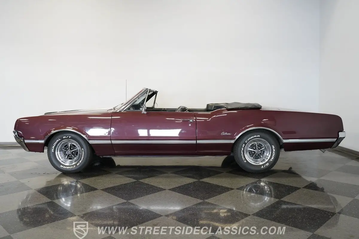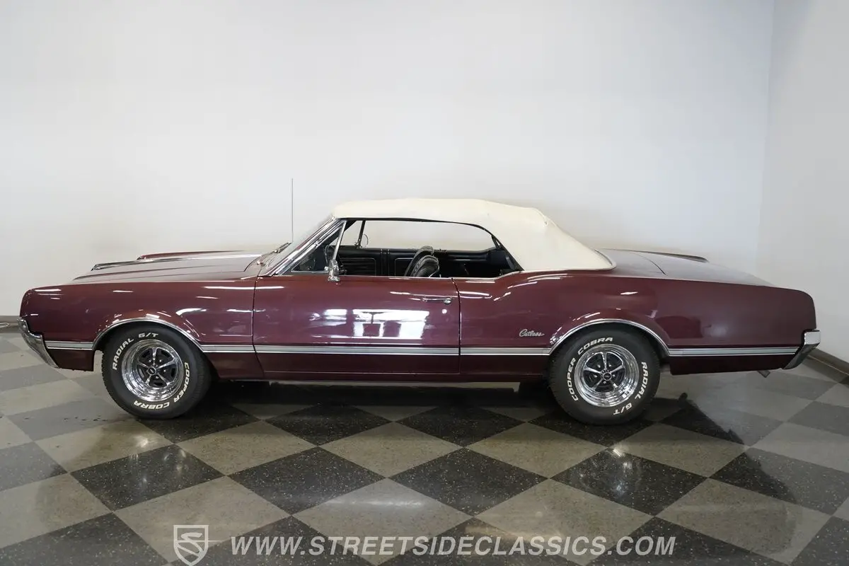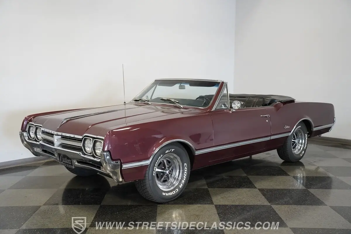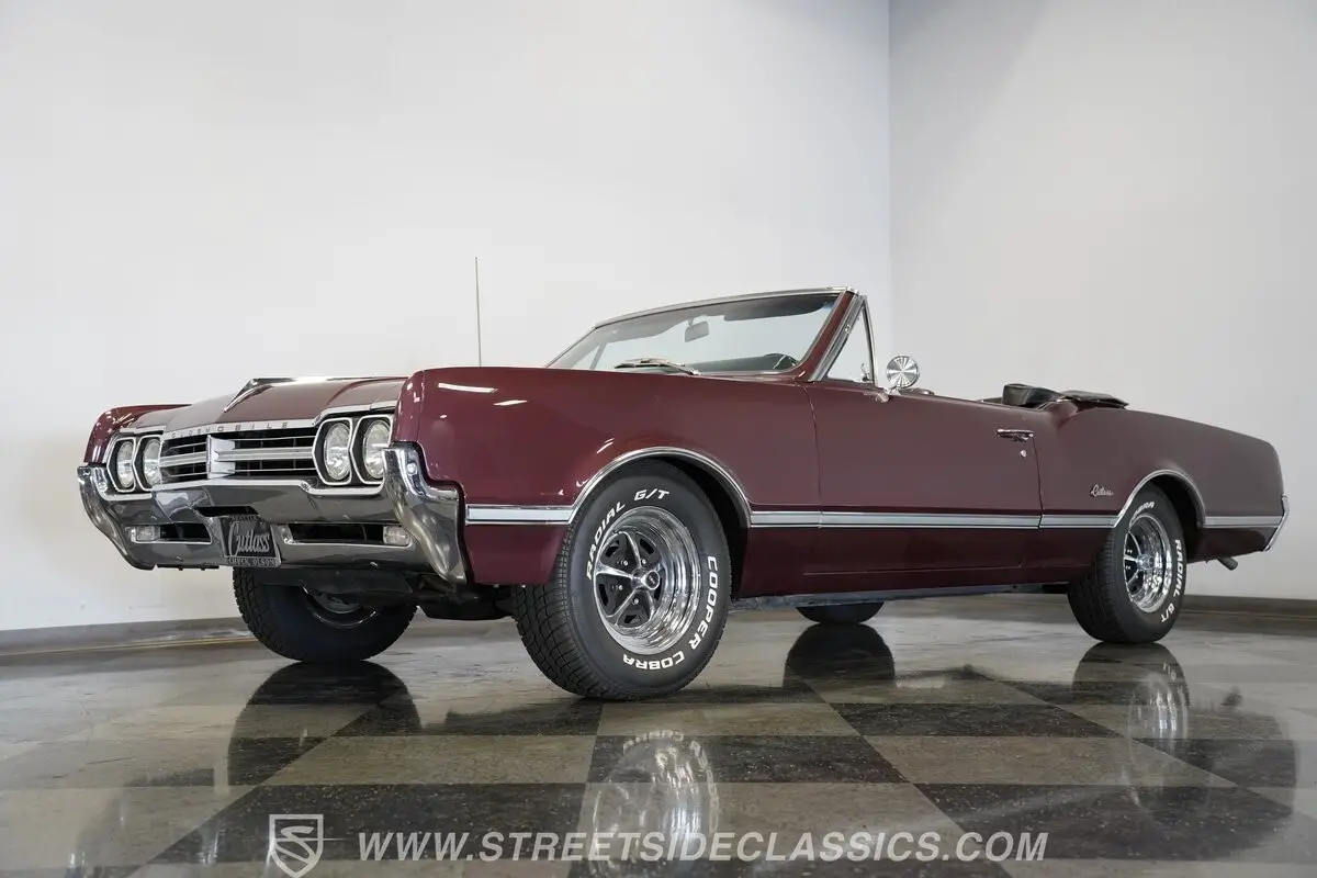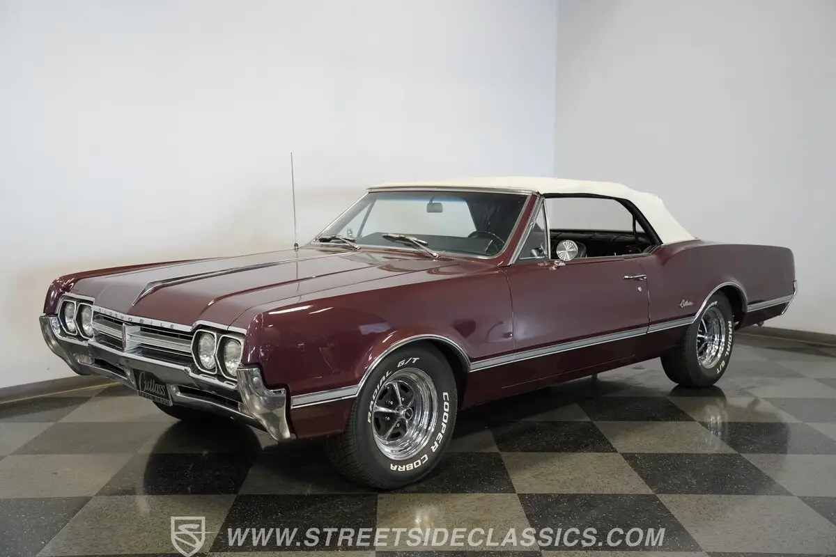 Now, here's one fine mid-'60s cruiser! Effortlessly cool and sporting generous proportions that will beckon future passengers to join you on your future outings, this 1966 Oldsmobile Cutlass Convertible was refreshed in its original Burgundy Mist color a while back and still retains a level of factory-correctness throughout that's truly hard to come by. The paint itself is in good shape, sporting a deep shine, and is draped over nicely aligned body panels that remain in outstanding condition, showing no worrisome dings or dents to detract from this classic's curb appeal. Just look at how straight and even the chrome trim is as it runs the entire body length of the sides.