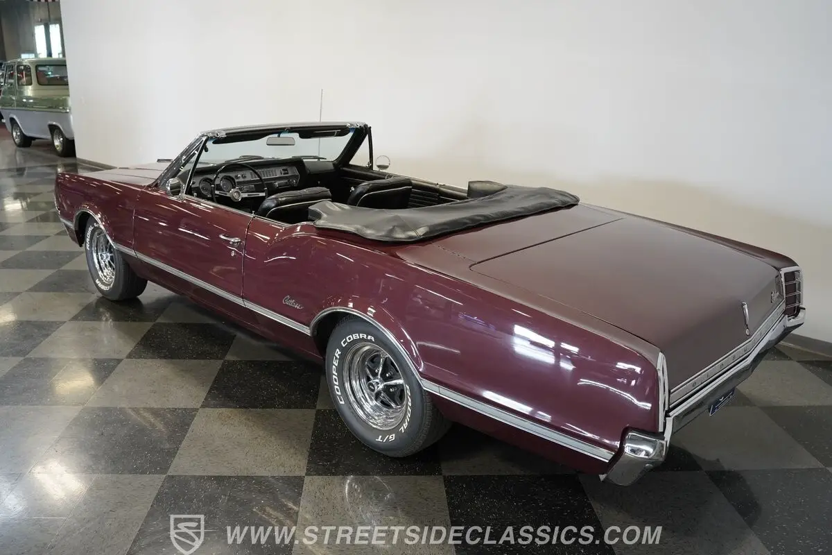 An outstanding specimen of a long-coveted mid-'60s model, this 1966 Oldsmobile Cutlass Convertible cruises on a set of 15" chrome five-spoke wheels with black centers, wrapped with Cooper Cobra Radial GT tires that still show plenty of tread. It would be a great fit for the enthusiast who is searching for an exhilarating open-air driving experience behind the wheel of a smooth-running classic. Call today!