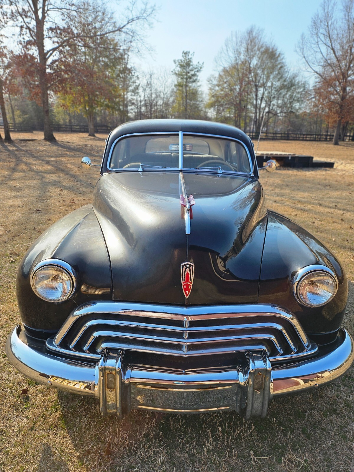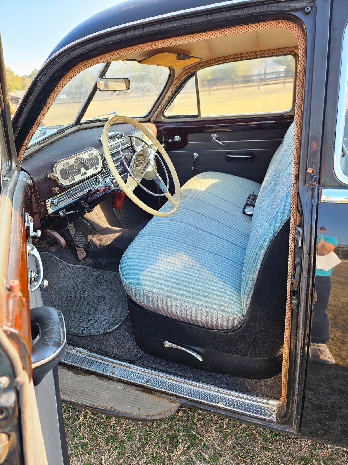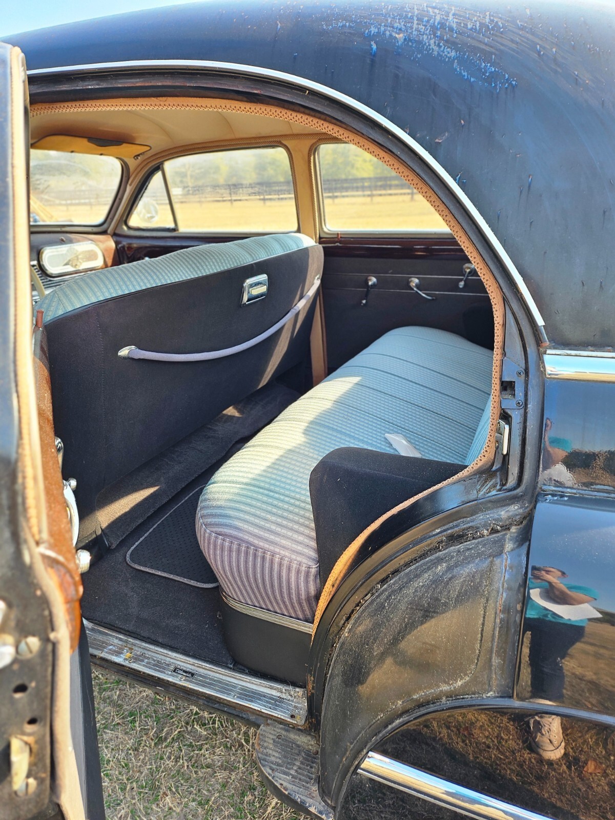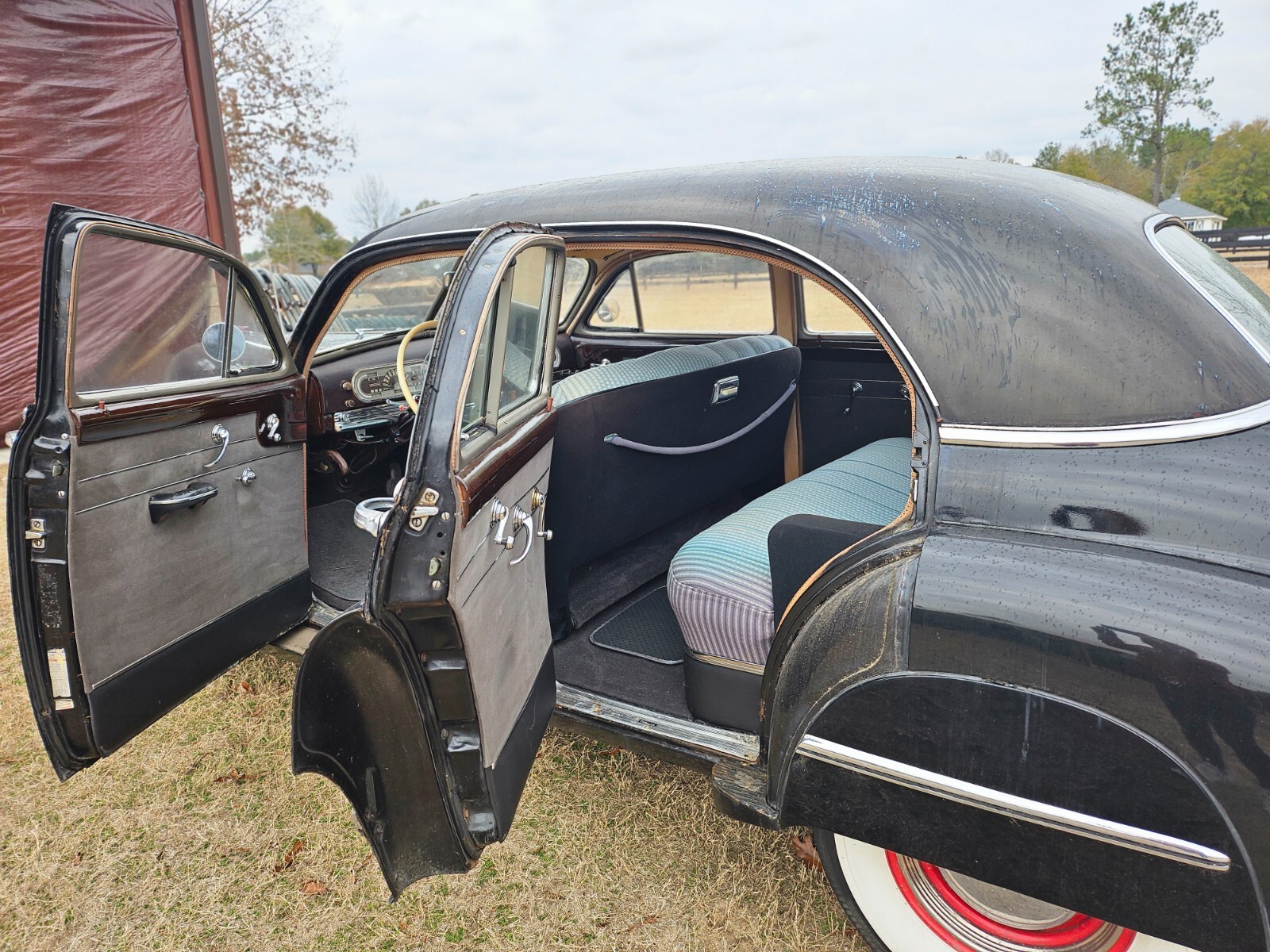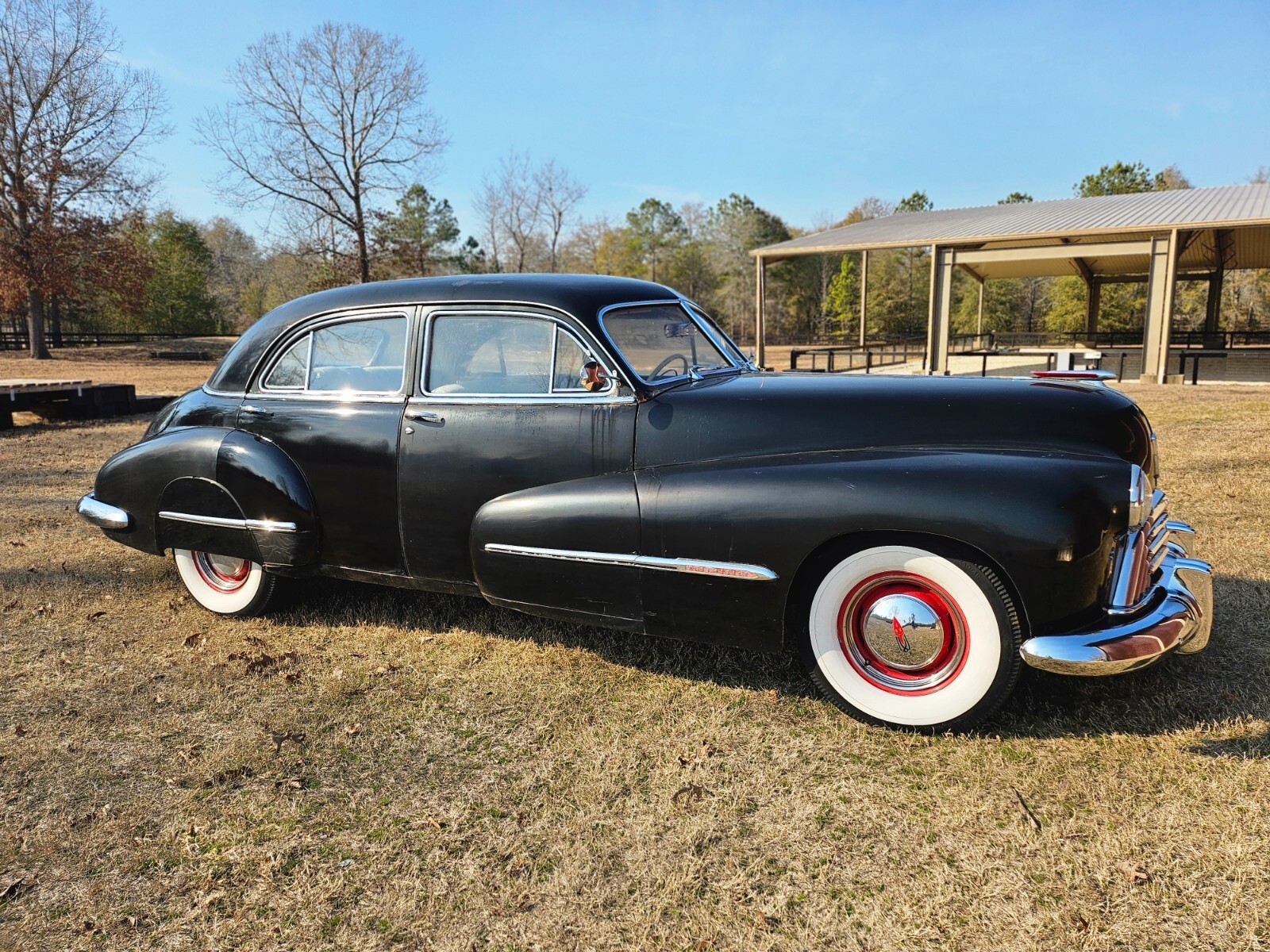 Turn back the clock to the golden era with this 4-Door 1947 Oldsmobile 98. This "survivor" has 96,475 original miles, a original black finish and classic whitewall tires with a red steel wheel and a chrome hubcap (spare found in the trunk). This car defines post-war elegance and serves as a true "bomb" style cruiser boasting the iconic pontoon-style fenders and massive chrome grille that made Oldsmobile a leader in style and luxury immediately following WWII. Interior features a blue two-tone cloth with a distinctive striped pattern on seats. Equipped with "Hydra-Matic Drive" automatic transmission and 257 cubic-inch inline 8 cylinder engine. This car starts, runs, and drives smoothly. Needs only a few minor cosmetic updates such as a fresh coat of paint. Whether you are looking to turn heads, for a weekend cruiser, a parade car, or a high-end street rod, don’t miss the chance to own a piece of General Motors history.