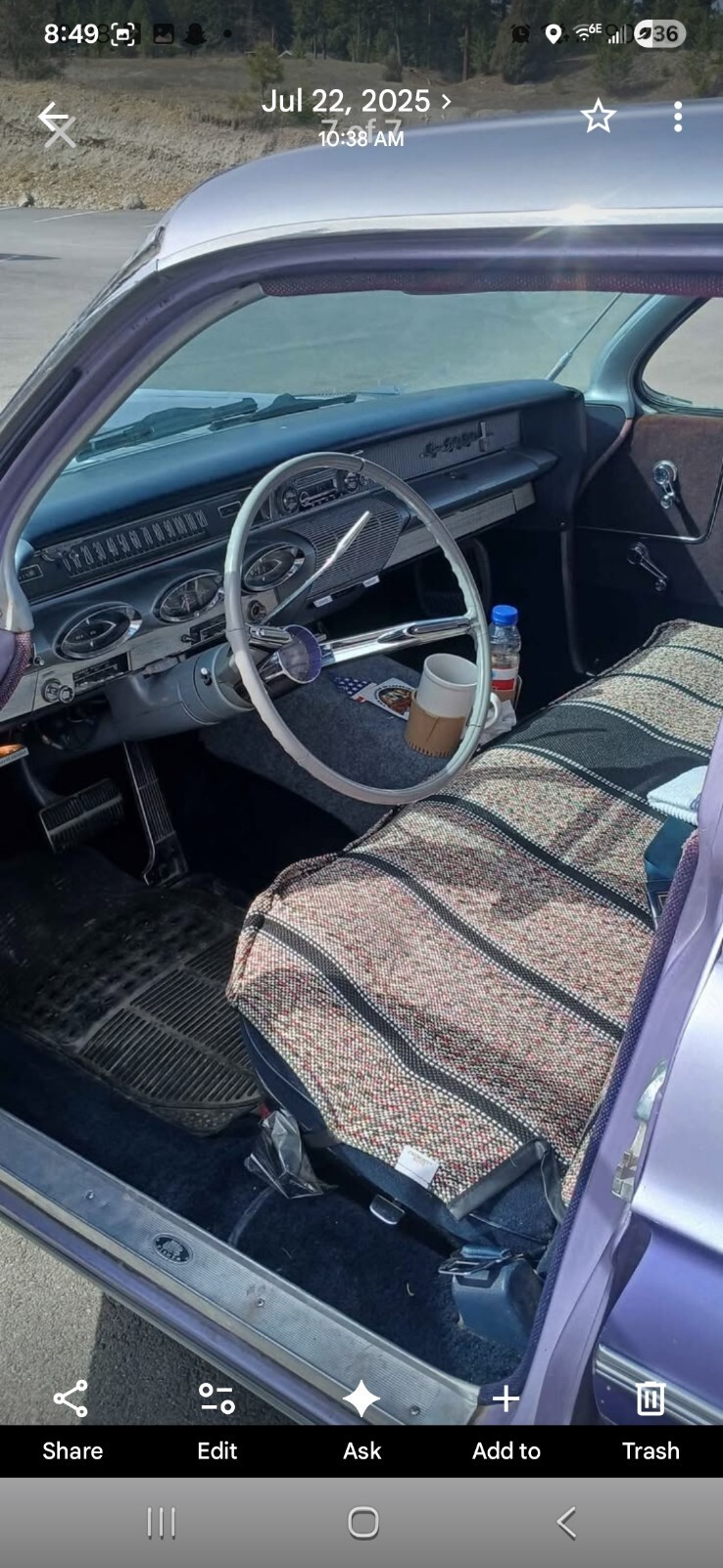 That's an old restoration from the eighties. Interior is really good. Seats show some sun wear. Carpet is very good. Door seals seem pretty good, but not perfect. Clear coat is peeling. Overall pretty solid car for the age.