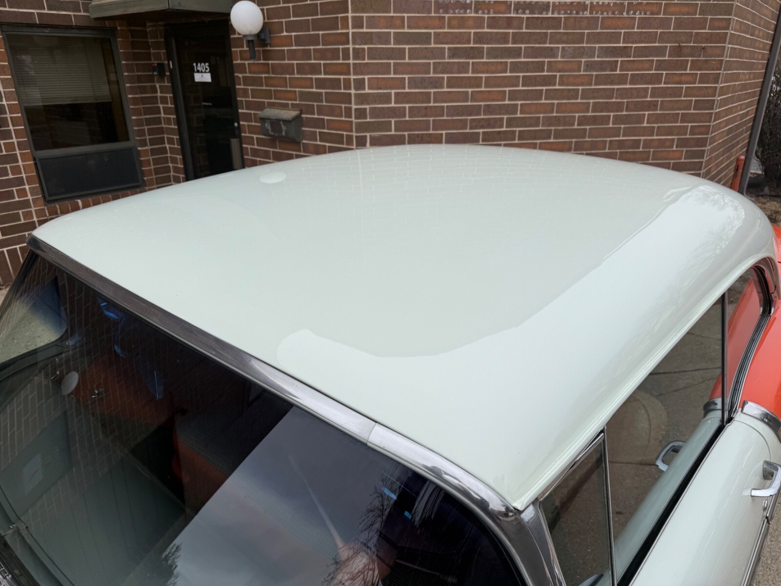 Finished In Coral & Gray InteriorAll 4 Door Panels Redone & Are In Great Shape All AroundFront & Rear Seats Redone - Great Shape & Nice Finish W/ The Houndstooth InsertsHeadliner Looks AmazingNice Clean Gray Carpet - Not RippedThe Dash, Gauges, Steering Wheel, Etc Are All Original 1955 & Well Preserved