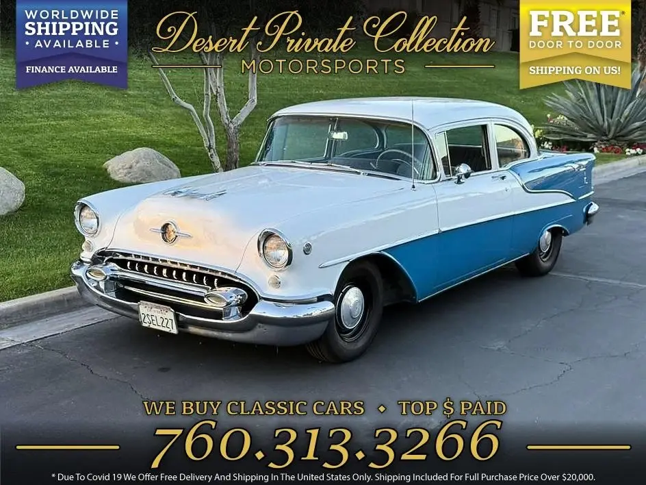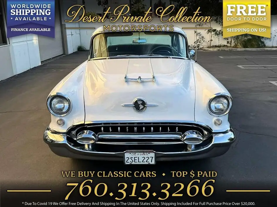 Oldsmobile Super 88 Coupe with original 91600 miles| Rebuilt Rocket- 455ci Motor with C-Heads Edelbrock 455 Intake| Edelbrock 1411 Carburetor 750cfm with electric choke| Chrome Valve Covers| Electric fuel pump| Rebuilt TH40O Automatic-Transmission. 2500 miles on the rebuilt drivetrain Dual Exhaust System with Headers. Upgraded suspension and new tires Wipers| Lights and Gauges working good. Speedometer is not connected. Aftermarket Tape- Radio in the glovebox with CD- Changer in the trunk. All sheet metal is original and the body was never involved in a collision. The Paint is in good shape as well doors| frame| floors and trunk are rust-free. Interior was completely redone and with a lot of parts being re-chromed. Front and rear Bumpers re- chromed. All glass windows roll down and up easy and all window glass is in great shape. Rust-free California car with nice history| paperwork/records from 1955 and up. Runs and drives excellent Clean California Title... Read the full description on our Website at: www.desertprivatecollection.com