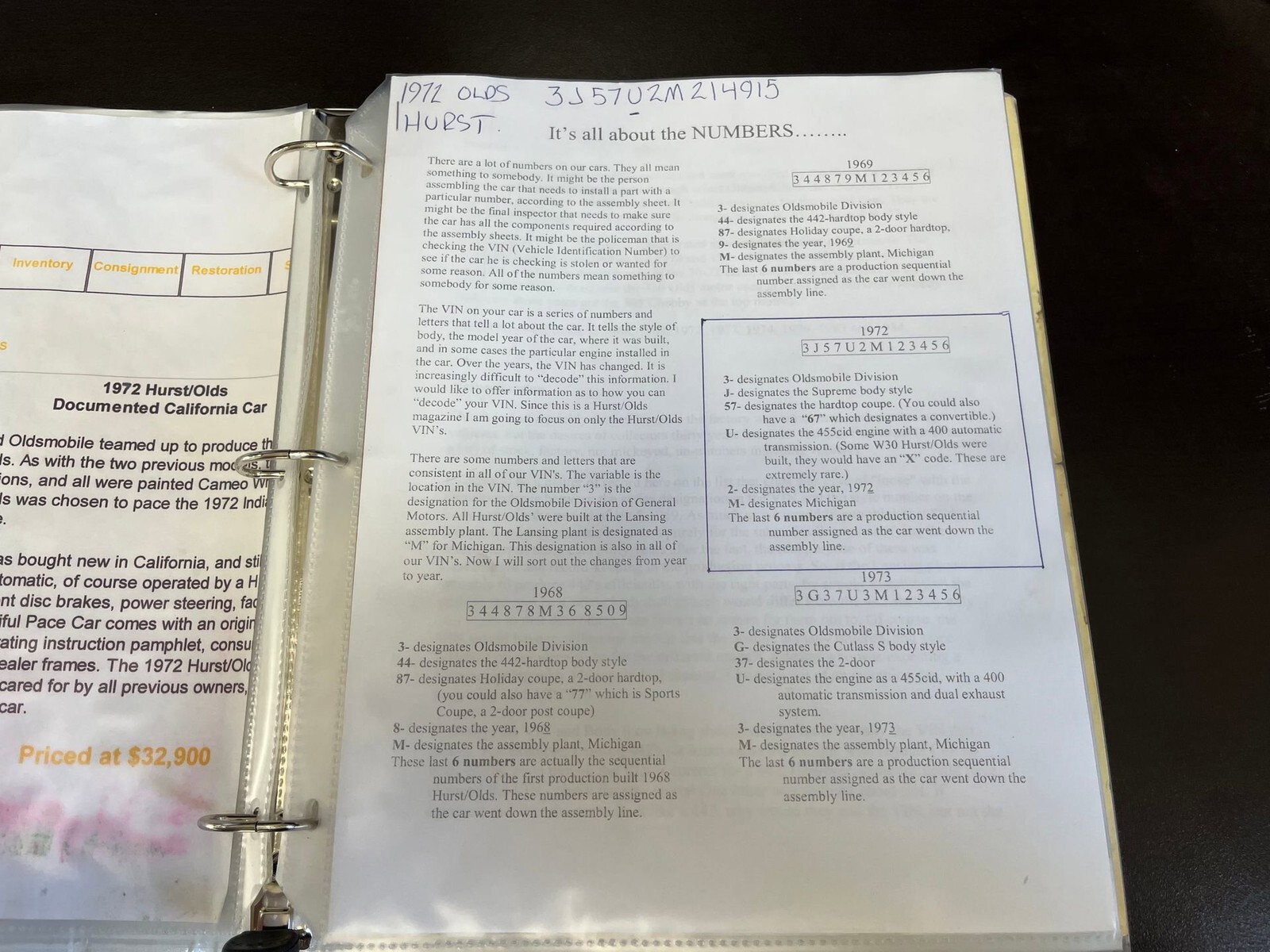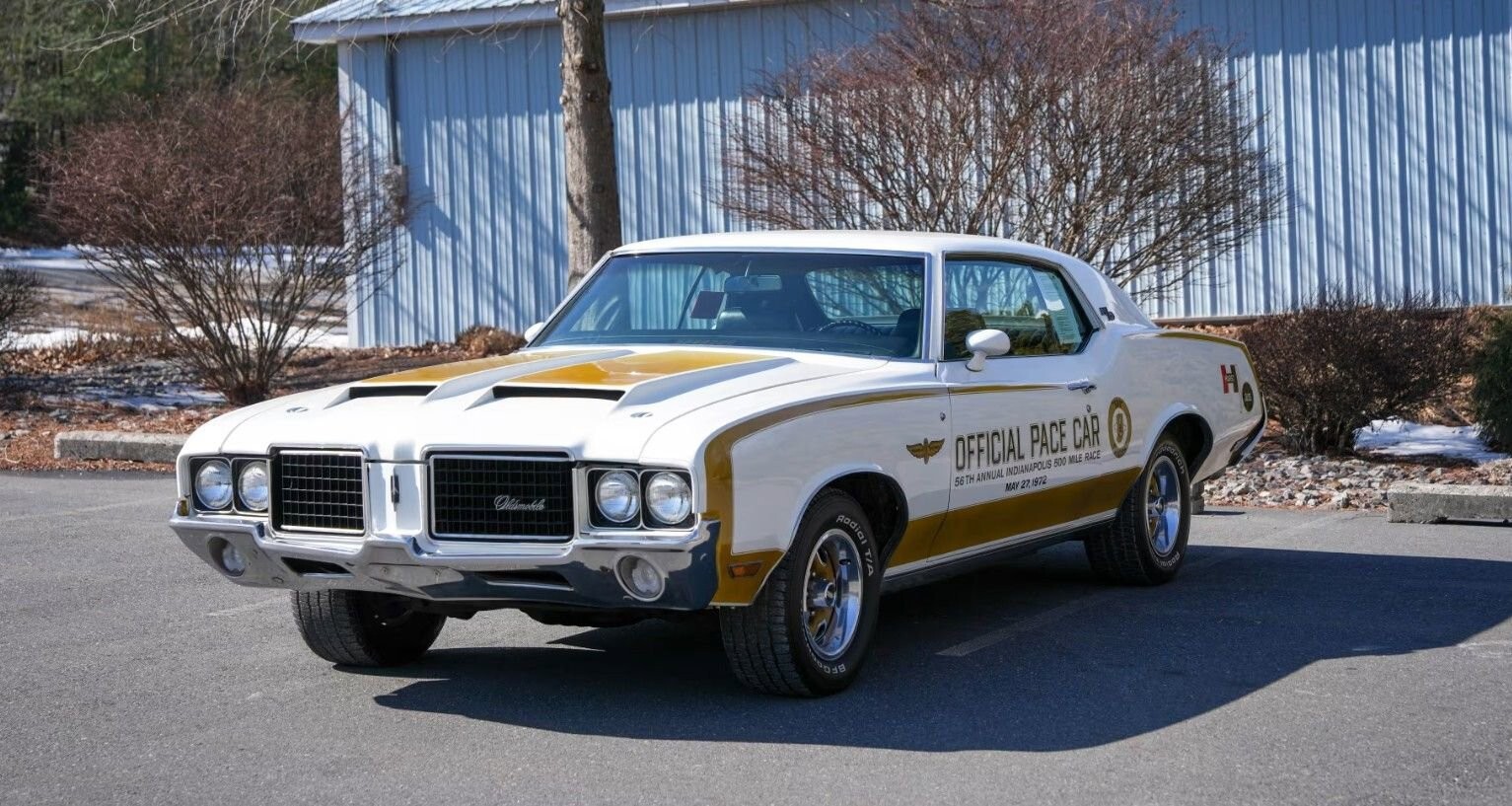 Earth Motorcars is excited to offer this amazing: 1972 Oldsmobile Hurst/Olds Pace Car Edition Restored.RARE W45 Pace Car Edition1 of 629 built in 1972 and 1 of 279 hardtops without a sunroofMatching numbers drivetrainNumbers Match Rocket 455CI V8 "F-Block" Engine (Cast #396021F #32M214915 VIN Stamp)Correct 7042251 Rochester Quadrajet carburetorNumbers Match TH400 Automatic TransmissionCameo White exterior with fade out Gold reflective stripingCorrect Indianapolis 500 decalsAir ConditioningPower SteeringPower BrakesFunctional Ram Air fiberglass hood with dual air intakes and hold down pins14 inch Super Stock III wheelsOriginal build sheetOwner's